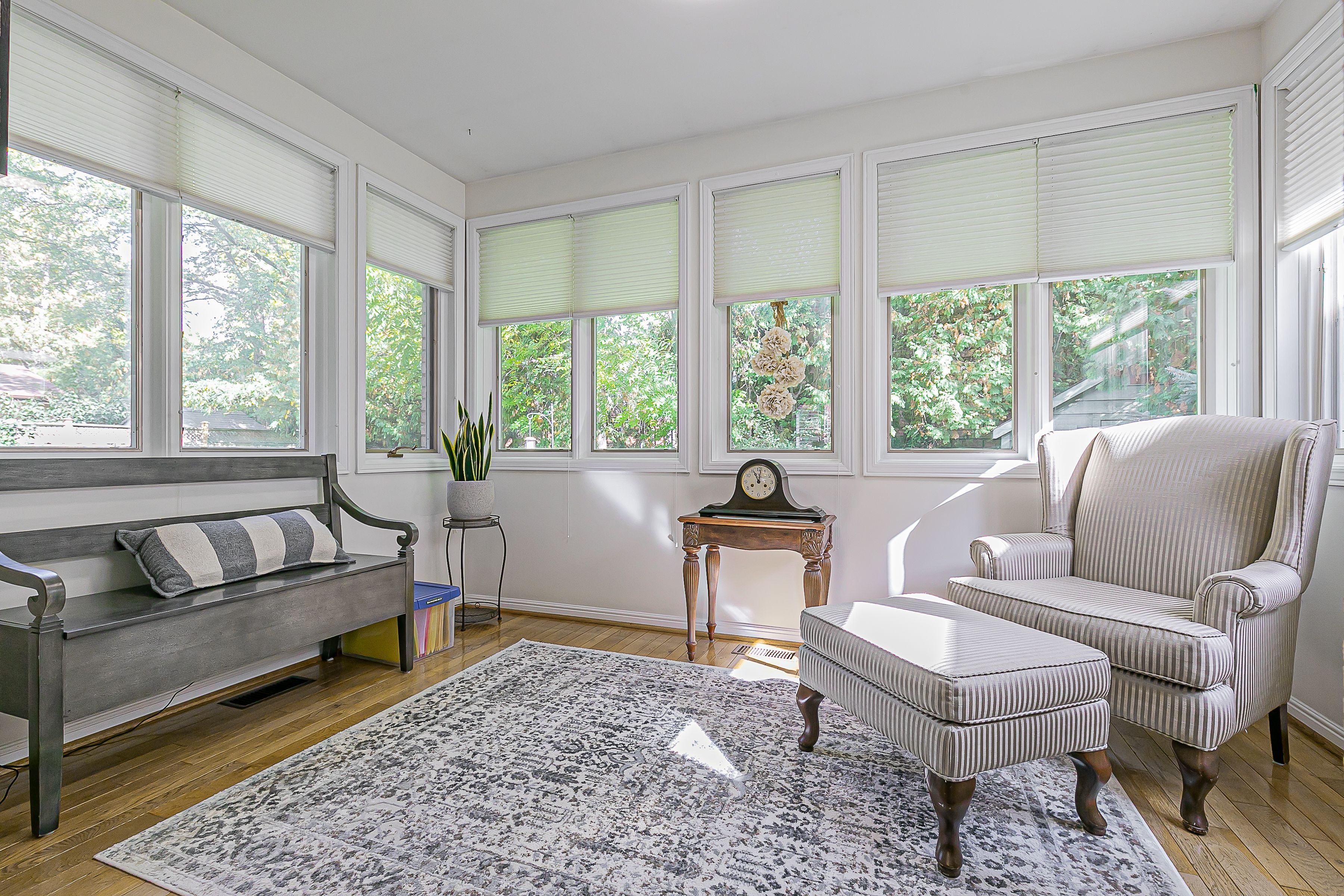 Immaculate 4+1 bedroom executive home nestled on one of markham village's most prestigious and private cul-de-sacs. This beautifully maintained residence offers an open-concept layout with a convenient side entrance to a mudroom/laundry area, ideal for busy family living. Expansive living and dining rooms showcase gleaming hardwood floors, perfect for entertaining. The upgraded gourmet kitchen features a centre island, wall-to-wall pantries, coffee station, and custom granite countertops, and opens seamlessly to the inviting family room with gas fireplace, pot lights, and custom built-ins. Spacious, sun-filled bedrooms offer california shutters and newly laid berber carpeting. Luxuriously appointed bathrooms include double vanity sinks for added comfort. The bright, fully finished basement boasts an additional bedroom, recreation room, and abundant storage. Enjoy morning coffee in the sun-soaked sunroom off the dining area. The private backyard oasis is surrounded by mature trees and lush gardens, complete with a garden shed and large interlocking patio-perfect for outdoor entertaining. A rare blend of luxury, privacy, and family-friendly living.