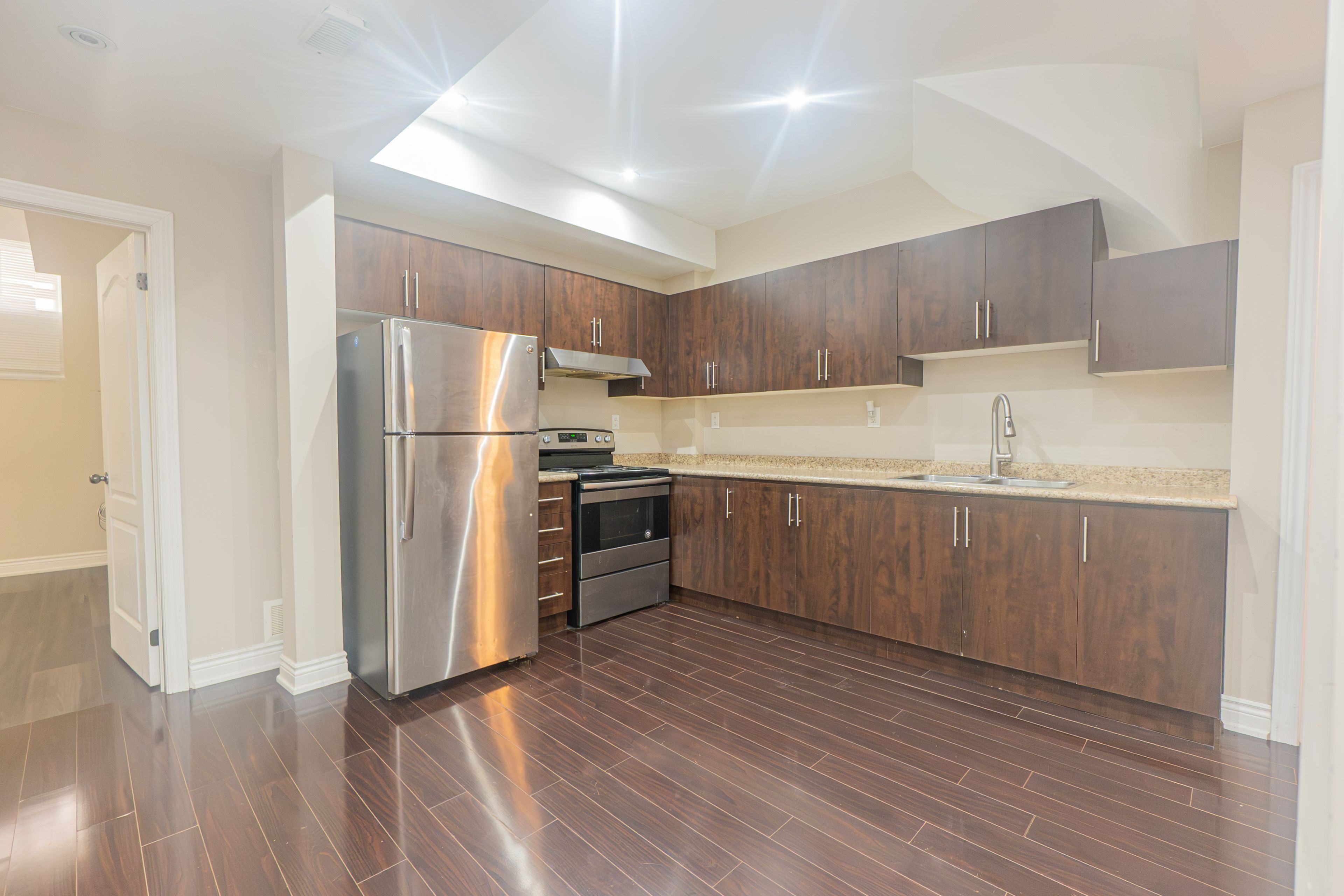 Beautiful and well-maintained 3-bedroom basement apartment with a separate private entrance in the highly sought-after credit valley community of brampton. This spacious unit features an open-concept living and dining area with hardwood flooring and pot lights, as well as a modern kitchen with stainless steel appliances and granite countertops. Enjoy the convenience of in-suite laundry, central air conditioning, and ample storage space. All bedrooms are generously sized with closets and large windows for natural light. Located in a quiet, family-friendly neighborhood close to schools, parks, shopping, transit, and major routes. Tenant to pay 30% utilities.