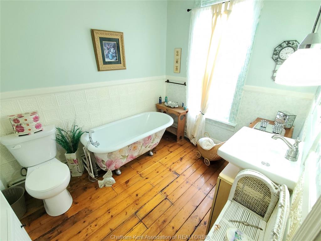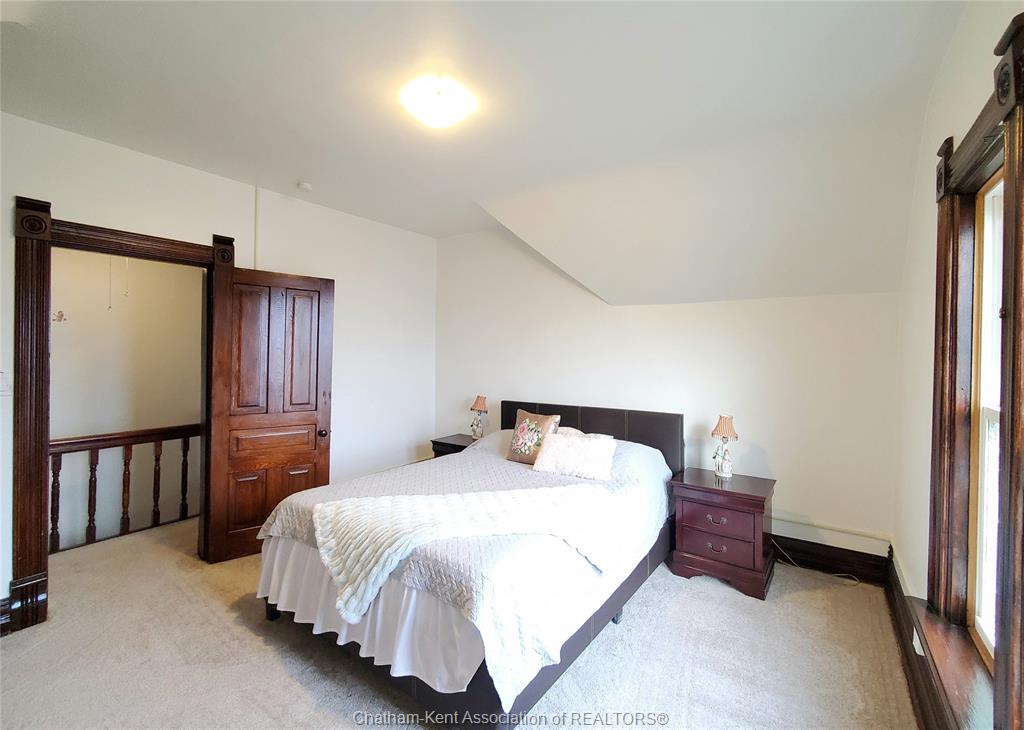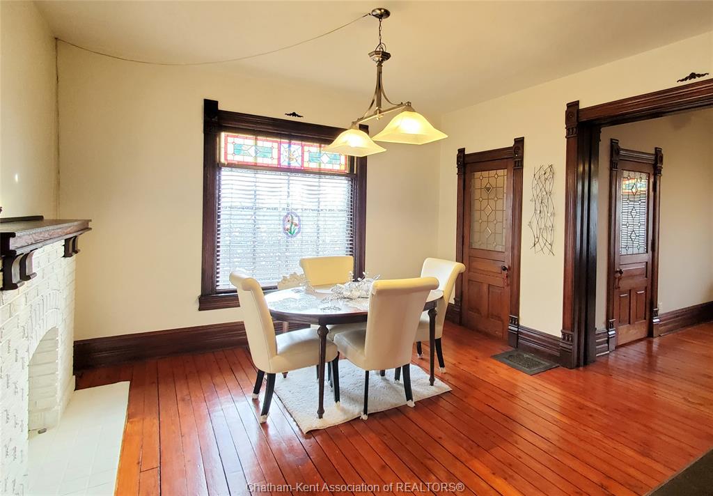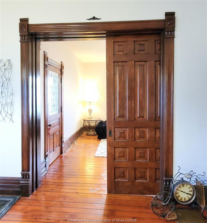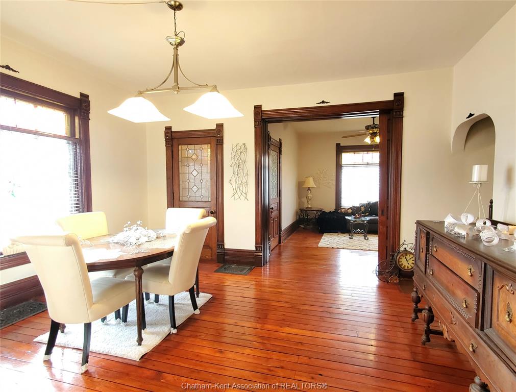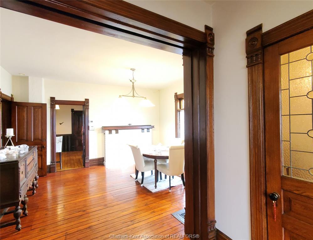 Welcome to this beautifully maintained four-bedroom victorian-style home, ideally situated in chatham’s historic theatre district. Rich in character and thoughtfully updated, this residence offers a rare blend of timeless craftsmanship, modern reliability, and income-generating potential. The main floor features a gracious living room, and a formal dining room—perfect for entertaining or comfortable everyday living. The functional kitchen has an adjoining dining nook, while stunning stained-glass windows and meticulously restored ornamental trim highlight the home’s historic elegance and enduring quality. Enjoy the convenience of the main floor laundry and full 4 piece bath. Upstairs, four generous-sized bedrooms are complemented by a charming three-piece bathroom featuring a cast-iron soaker tub that exudes character, warmth, and dignity. Significant upgrades include a 200-amp electrical service with fully updated wiring throughout, providing peace of mind while preserving the integrity of the home. The property has been lovingly maintained and is in excellent condition. With its prime location, flexible layout, and strong architectural appeal, this home lends itself exceptionally well to use as an airbnb or short-term rental. In addition, the property offers excellent potential for the construction of an accessory dwelling unit (adu), creating opportunities for multi-generational living or additional rental income. A truly special offering where historic charm, modern convenience, and future potential converge. Don't delay, book your showing today!