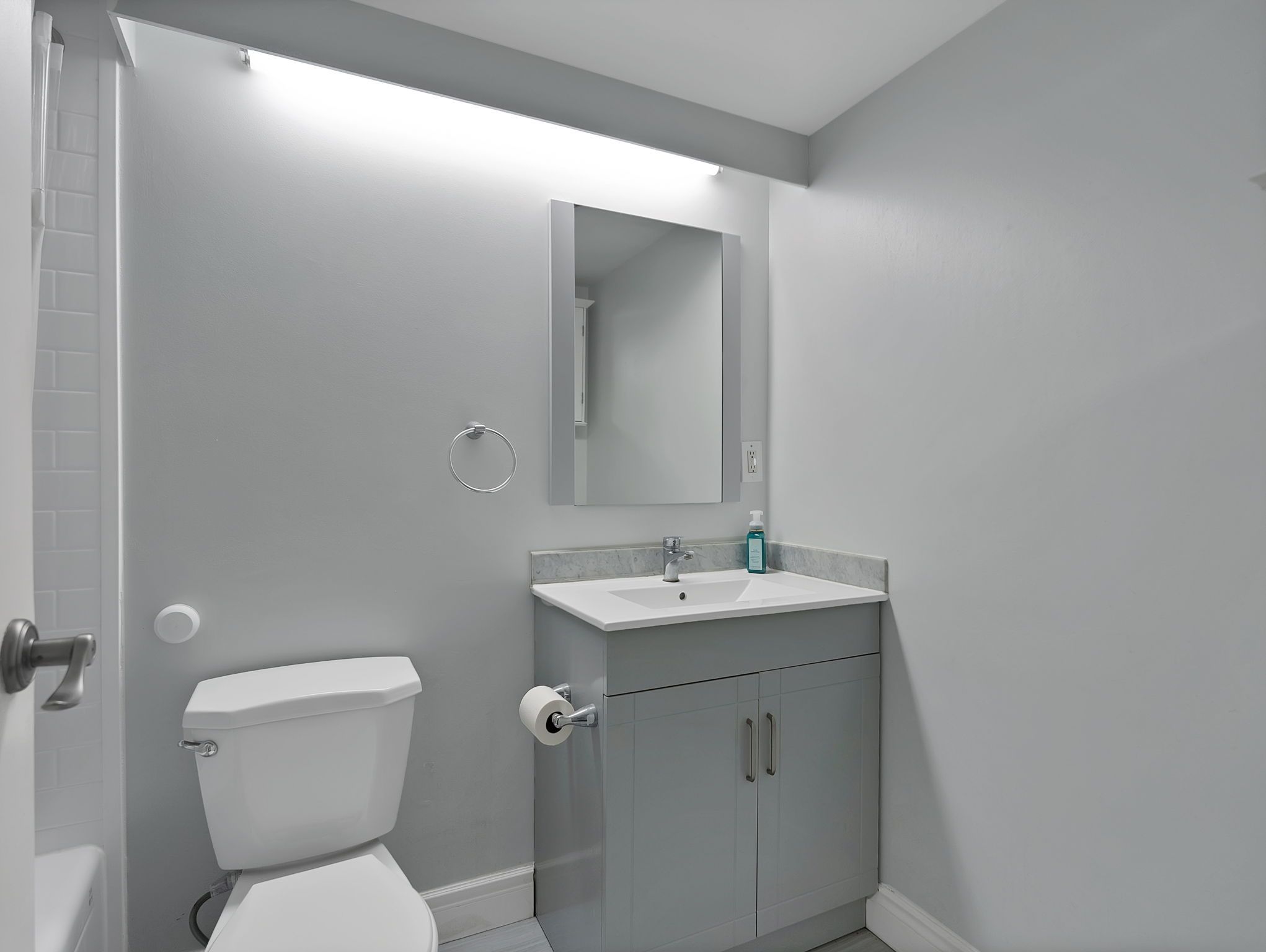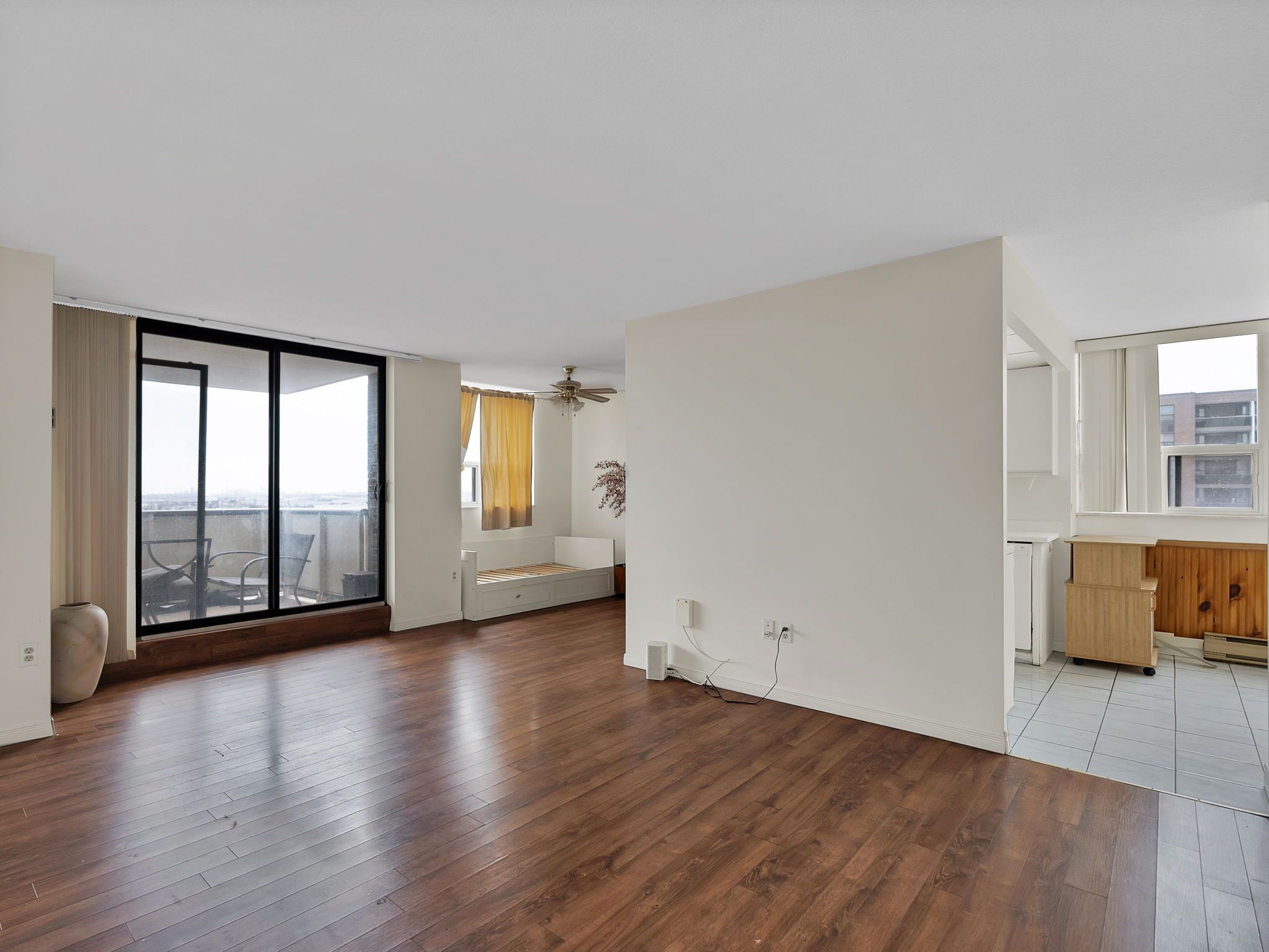 • Spacious design with 9-ft ceilings and sleek laminate flooring.
