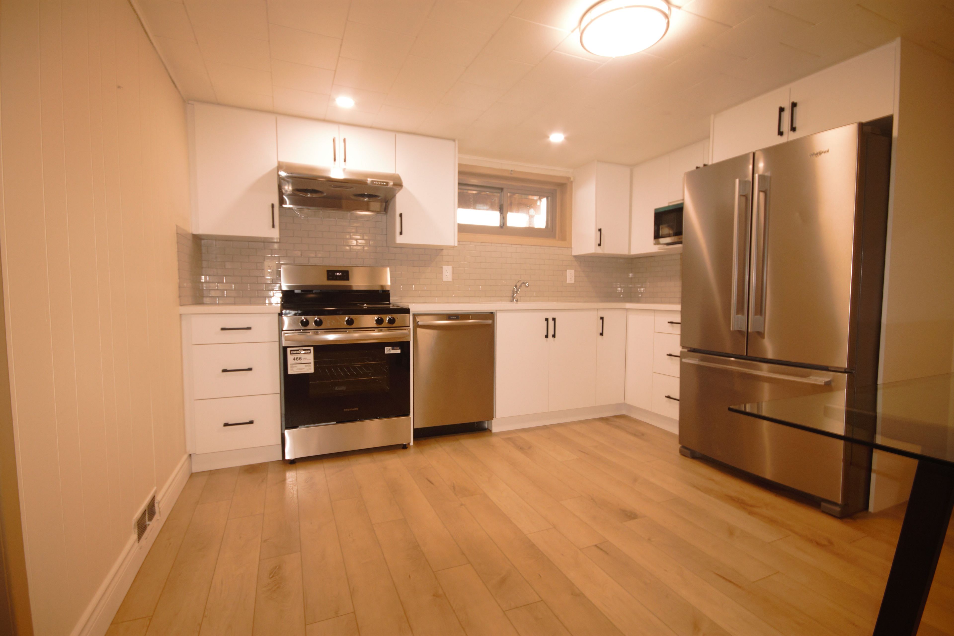*very specious bright 2 br in family neighbourhood, harwood flooring throughout, large windows, high and dry, separate entrance, new kitchen with quarts counter, range fan, partially furnished (can be empty), own washer and dryer, close to shopping ,hwys, centennial park and all other recreational facilities. 2 tendom parking tenant pays %40 of utilities, not ideal for large families with children.