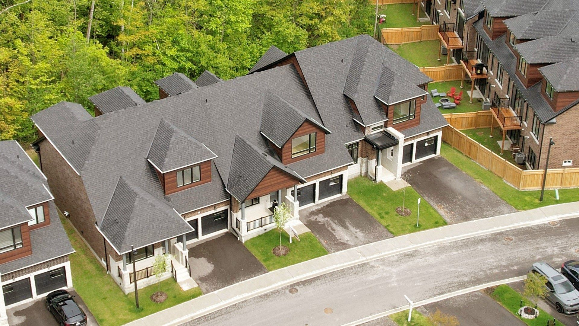 Final builder inventory blow out sale!!! Price now includes all builder adjustments, lot premium and hst exemption. Only 3 builder inventory units on premium lots offering the top level 4 upgrade packages remain. This 35' x 103' premium lot is home to the popular "stonehaven" bungaloft model offering 2158 sq ft of stylish living space not including the professionally finished basement. This block of townhouses is truly the crown jewel within the development with all 3 units backing directly onto the protected forest and is a locational oasis which should not be passed up on. The unmatched upgrades include 10' smooth ceilings on main floor and 9' on upper level. The bright mostly finished basement also features a 9' ceiling, large above grade windows and plenty of pot lights. Beautiful light oak 7" wide plank engineered hardwood covers both the main and upper level. The dramatic great room with soaring 20' two storey ceiling and windows is open to the second floor. The sleek "magazine quality" designer kitchen is showcased with premium upgraded appliances, water fall island, custom electrical and plumbing fixtures, quartz counters and a full slab backsplash. Premium light fixtures, plumbing fixtures and level 4 quartz counters flow throughout the unit. The main floor primary suite with walk-in closet and upgraded ultra-lux bathroom features all the finishes and quality any choosey buyer would expect. A den is located off the front foyer and serves perfectly for home office needs. The upper floor is home to 2 generous size bedrooms and a 5-pc bathroom with twin sink vanities. You'll never tier of the incredible view from the hallway overlooking the main floor and "green" rear yard backdrop. The basement level features a large recreational room with laminate floor, above grade window and pot lights, optional muti purpose room with large above grade window, cold room, 3-pc bath and 2 spacious storage rooms.