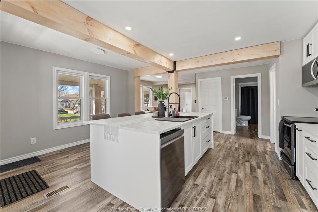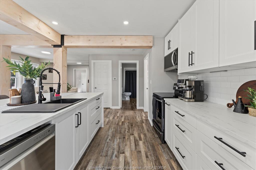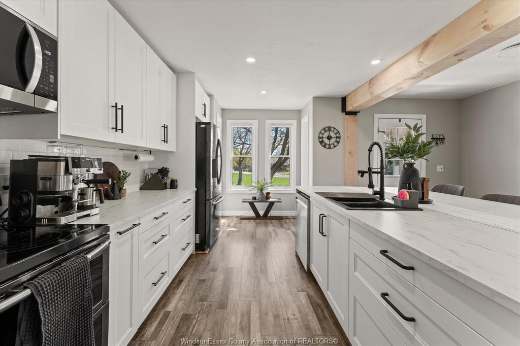 • Stylish, newly renovated kitchen with a spacious island for cooking.