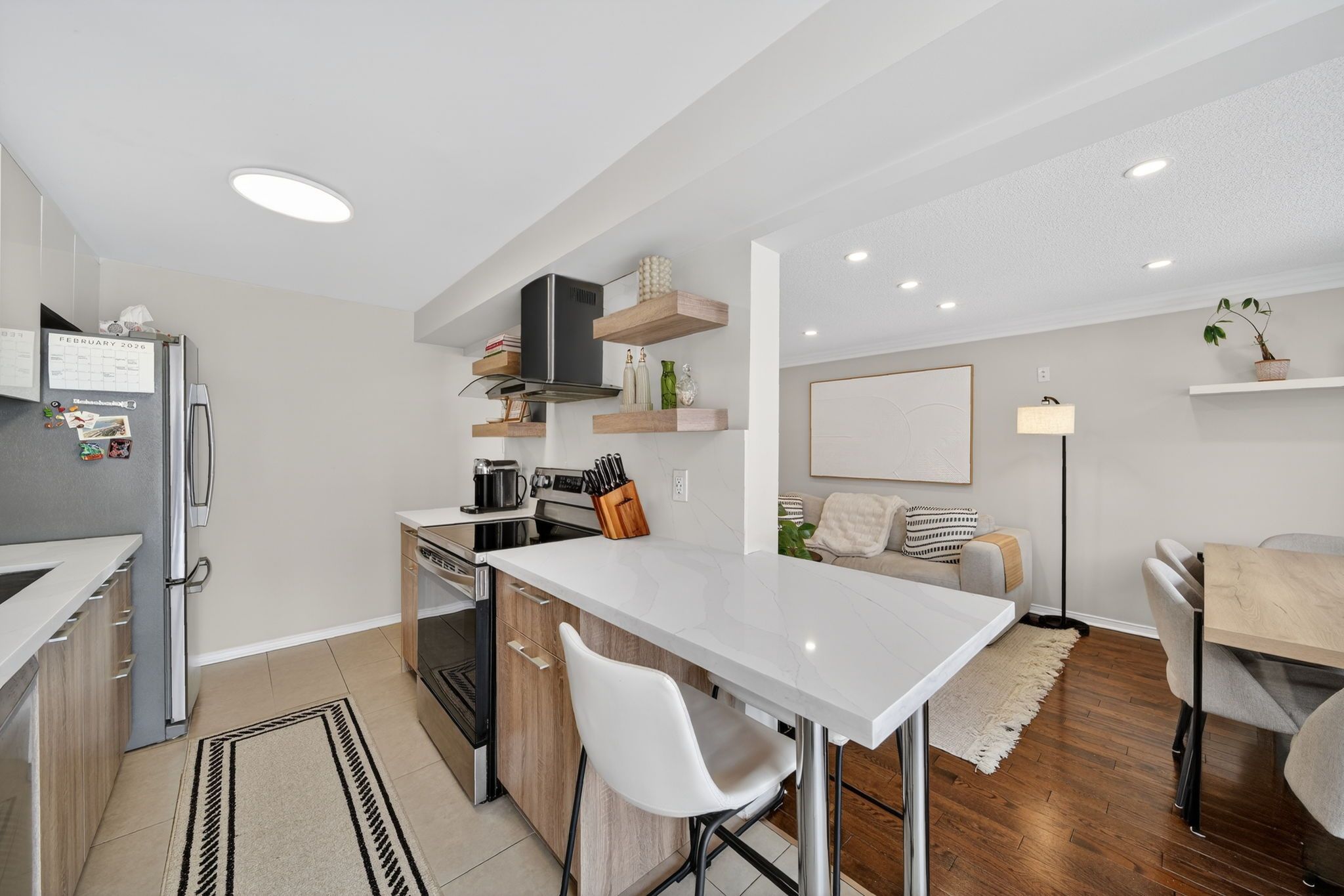 • Renovated kitchen with stainless-steel appliances and stylish cabinetry.