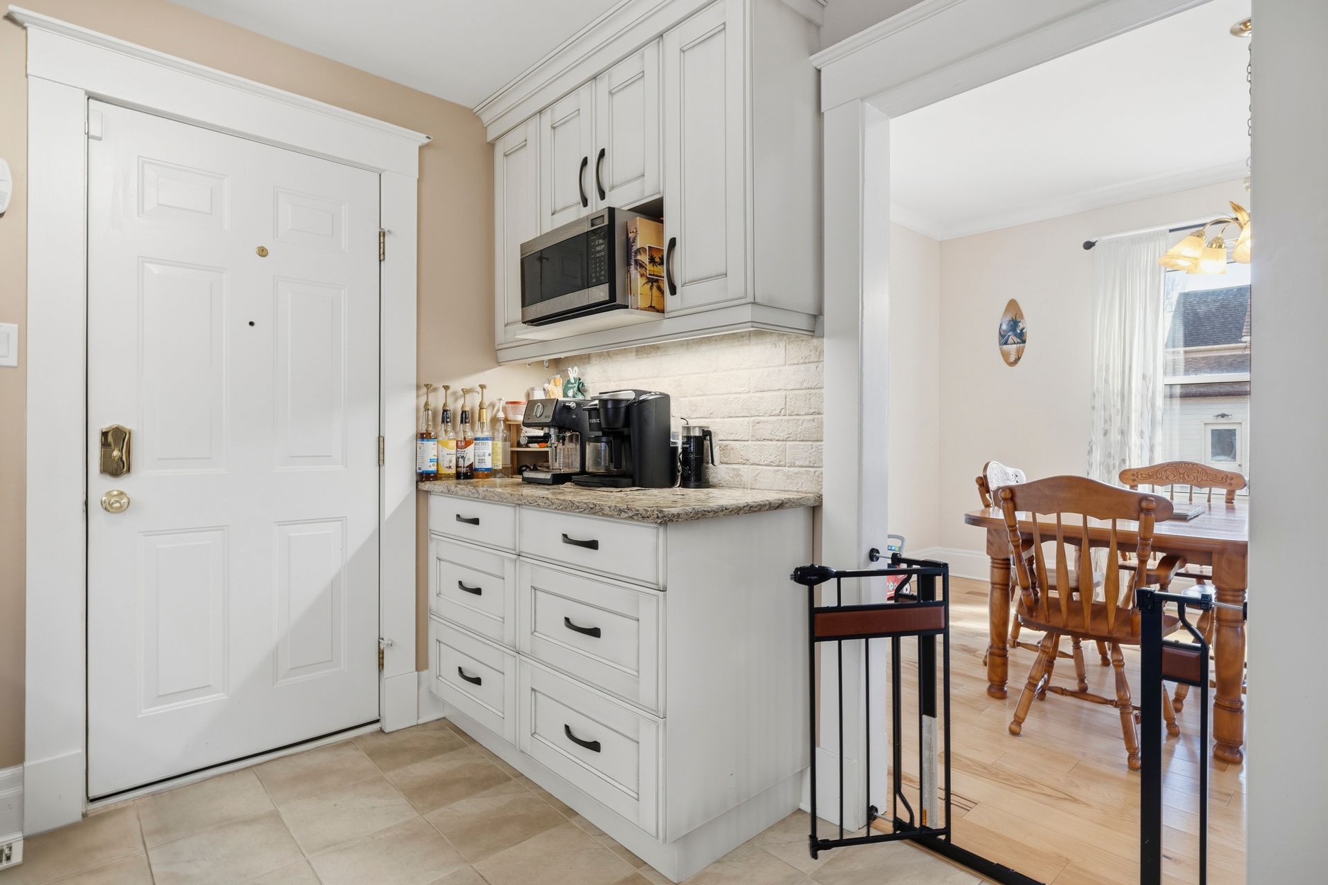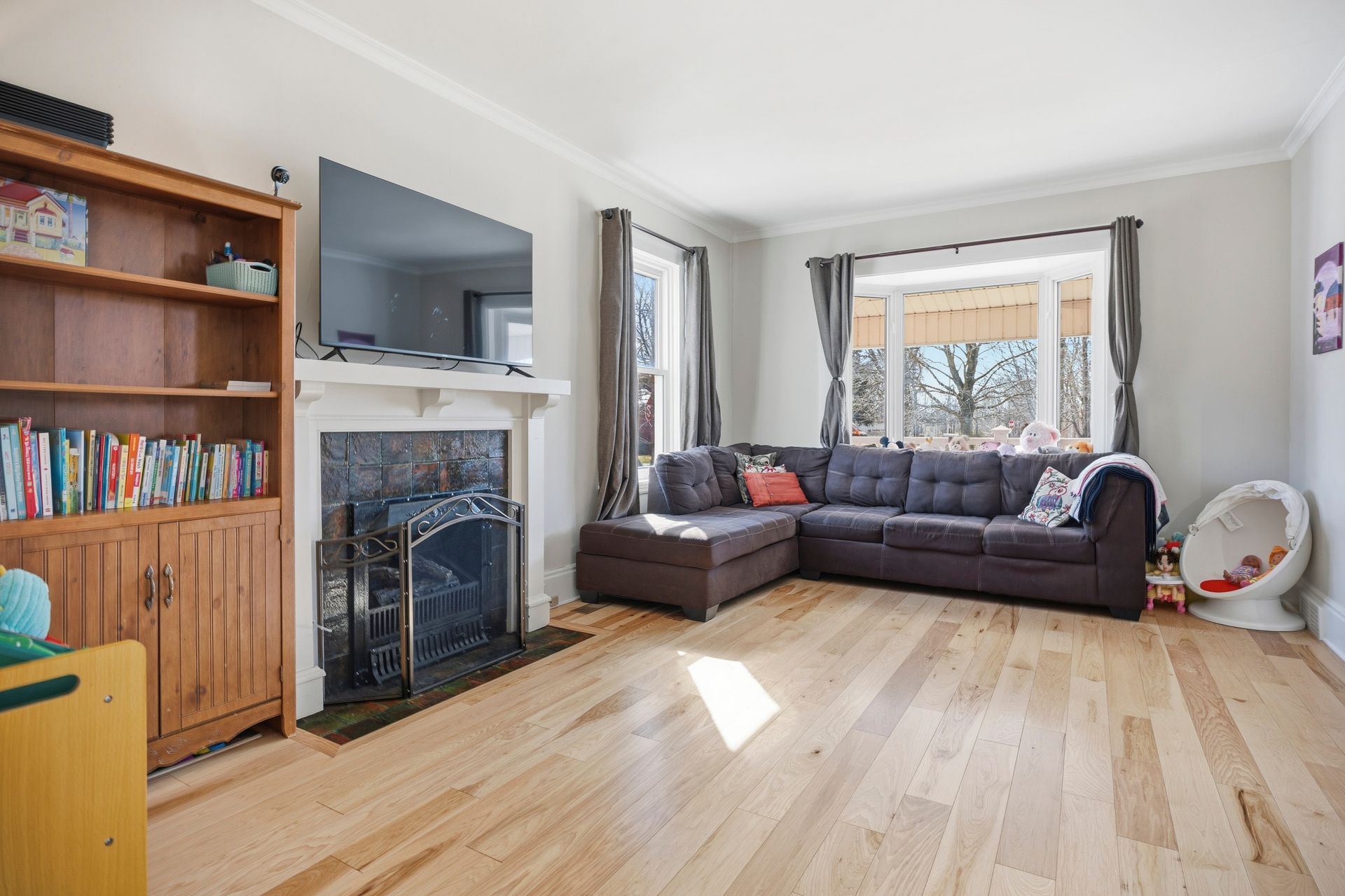 • Spacious living room features hardwood floors and a gas fireplace.