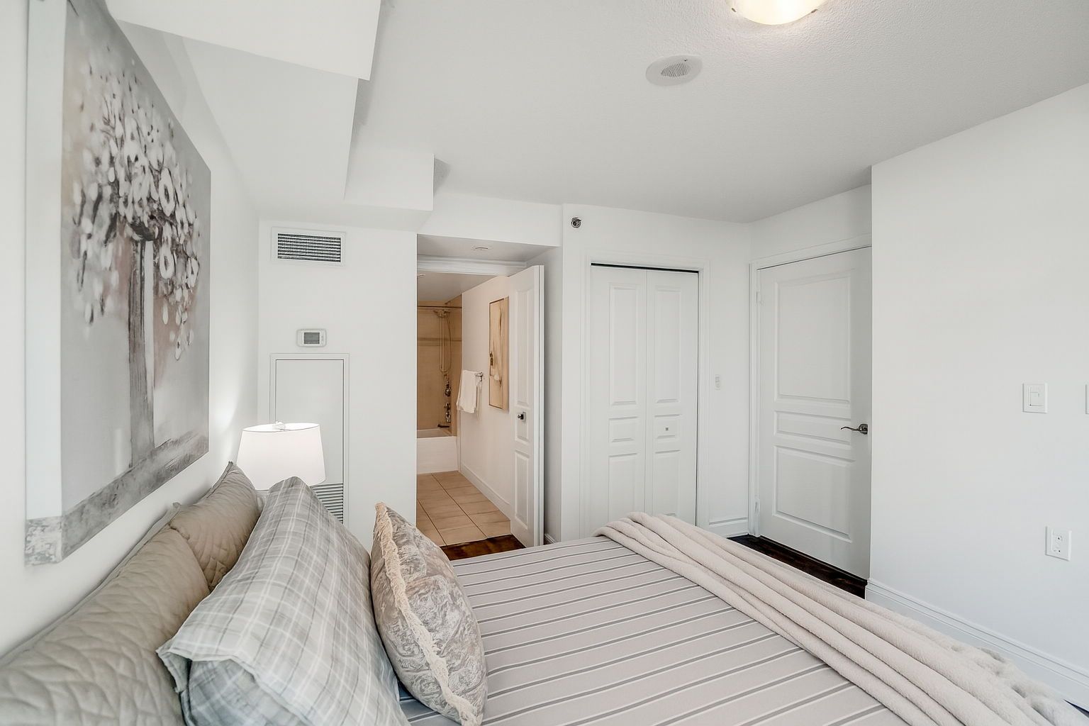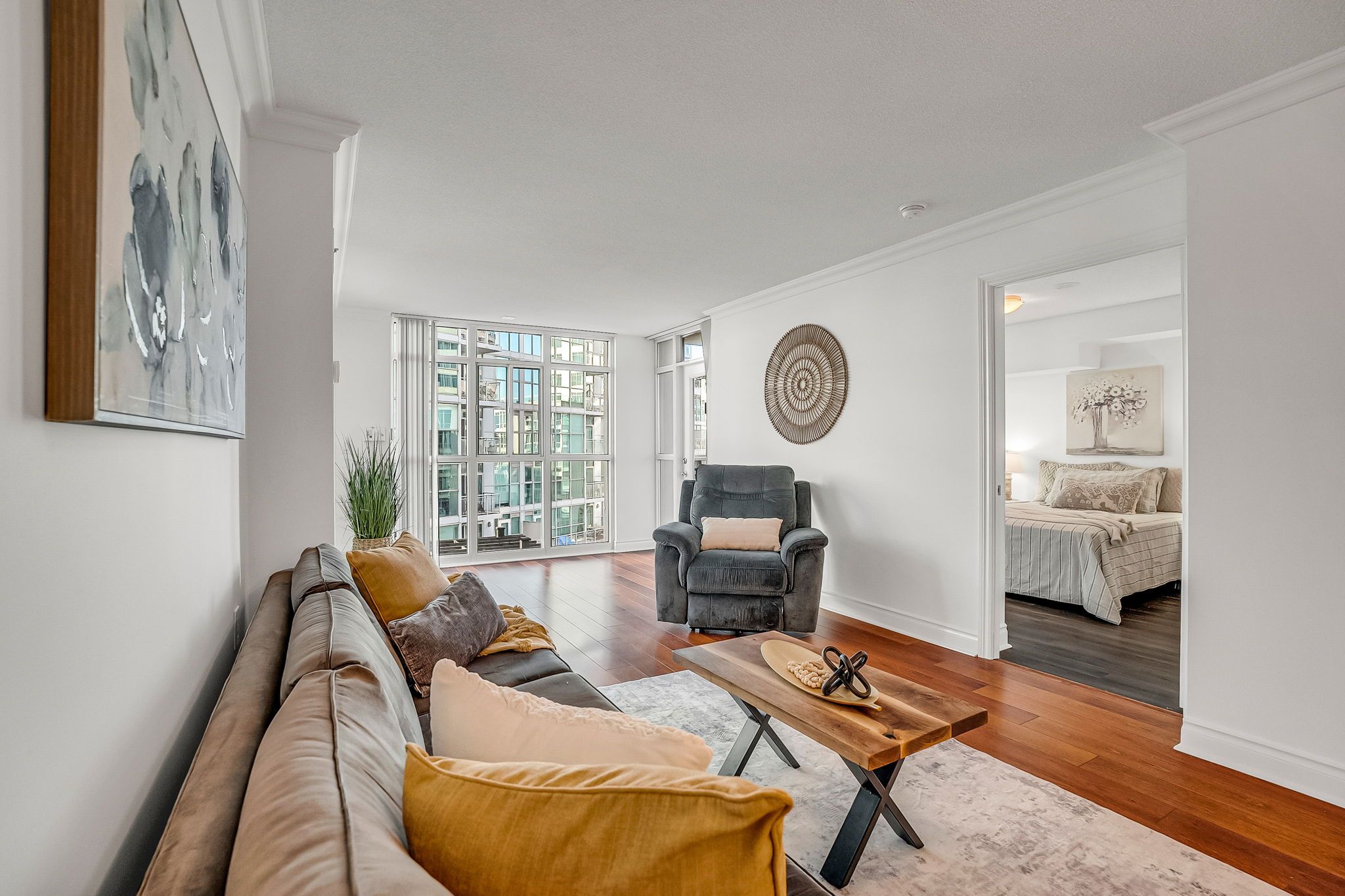• Bright layout with floor-to-ceiling windows and partial lake views.