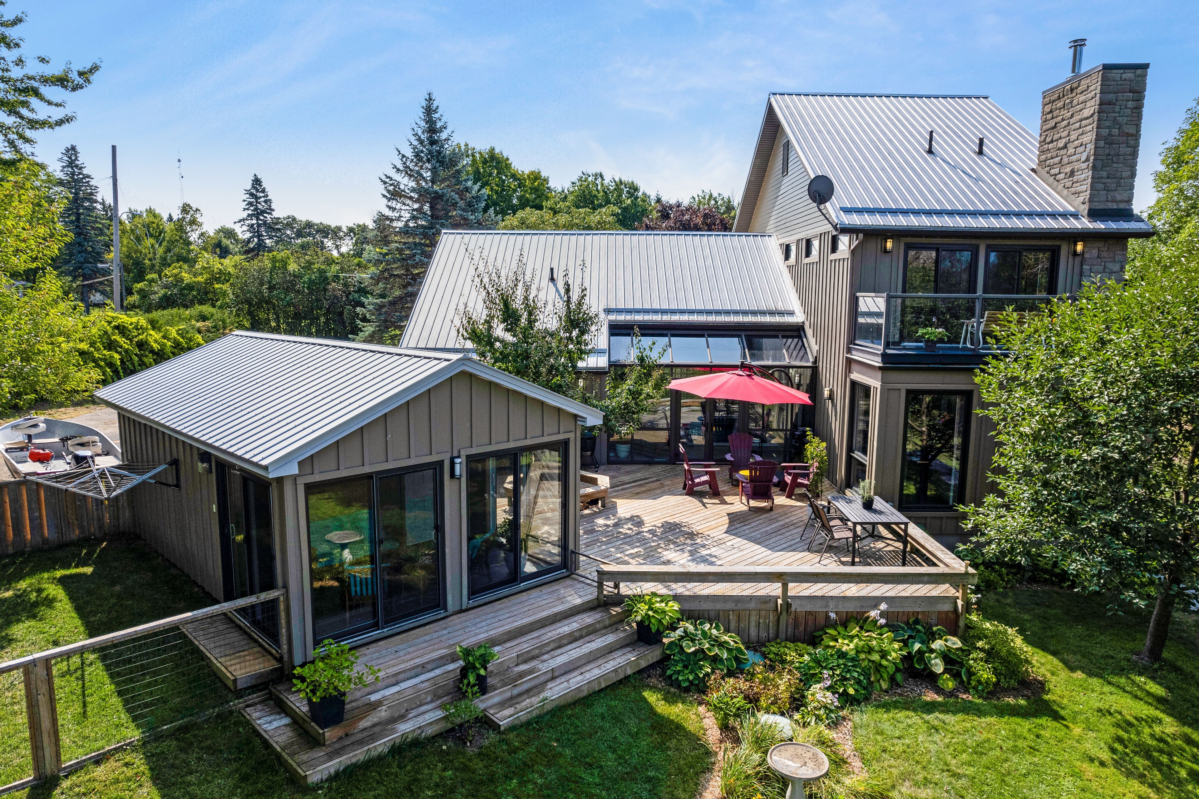 Welcome to this stunning 2016 custom-built lockwood brothers home, perfectly set on a beautifully landscaped lot along the banks of the rideau river in historic burritts rapids. Elevated from the riverbank, the grounds are a living canvas, with carefully curated wildflower and herb gardens that evolve through the seasons. An interlock driveway leads to the attached single-car garage, with plenty of outdoor lighting enhancing both curb appeal and convenience. Inside, thoughtful architectural details maximize natural light and frame breathtaking views,seamlessly blending the outdoors with every room. Ceramic and hardwood floors run throughout (no carpet), offering a stylish and pet-friendly finish. At the heart of the home lies a truly unique feature: an endless pool,designed for year-round fitness, relaxation, and wellness. The main level includes a bright guest bedroom and full bath, along with a cozy living room featuring a wood-burning fireplace and sweeping river views. The gourmet kitchen is both tucked away and central to the home's flow, ideal for entertaining while maintaining an intimate atmosphere. Upstairs, discover three bedrooms, two of which boast private balconies that feel like personal retreats, offering peaceful escapes with views of the river and gardens. Outdoors,a private dock makes launching watercraft effortless, with excellent opportunities for canoeing and kayaking. The naturalized shoreline provides a haven for wildlife, from a variety of birds to a family of playful otters. For entertaining,the pool room opens to a spacious deck, while a sunroom tucked behind the garden/storage garage offers yet another space to unwind. Fenced-in area to keep your pets safe and secure. Bright, spacious, and intentionally designed,this home balances open-concept living with secluded nooks, creating a welcoming retreat that feels both expansive and intimate. New heat pump (2024) for economical heating and cooling,generac whole-home generator for peace of mind.