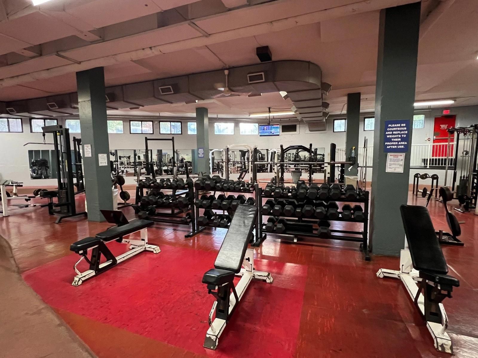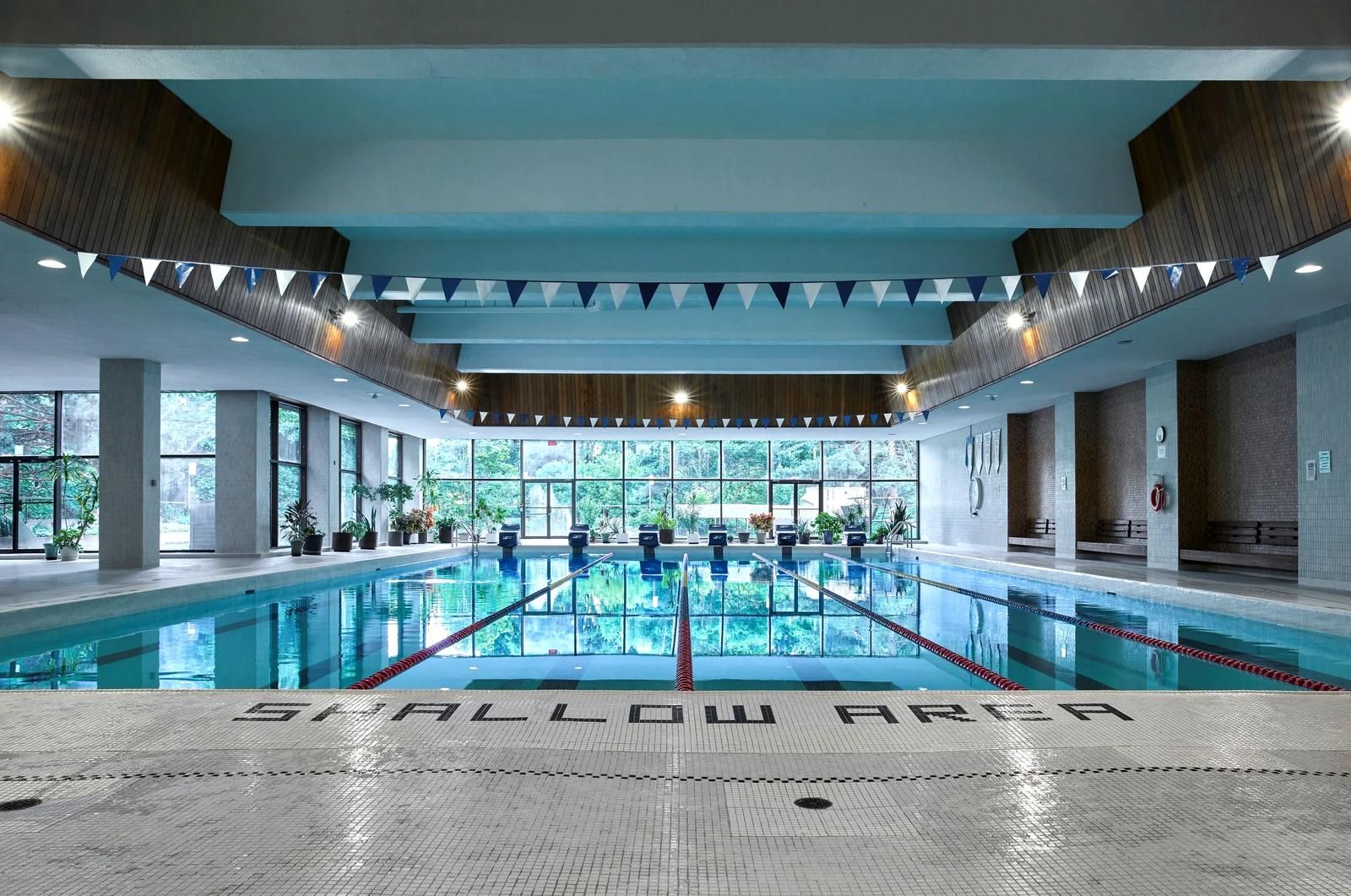 • Amenities include an indoor pool, gym, and squash courts.