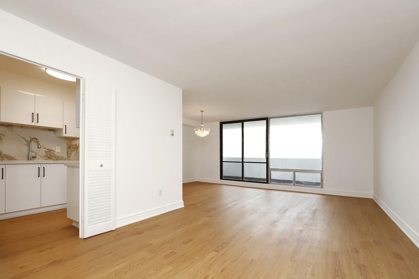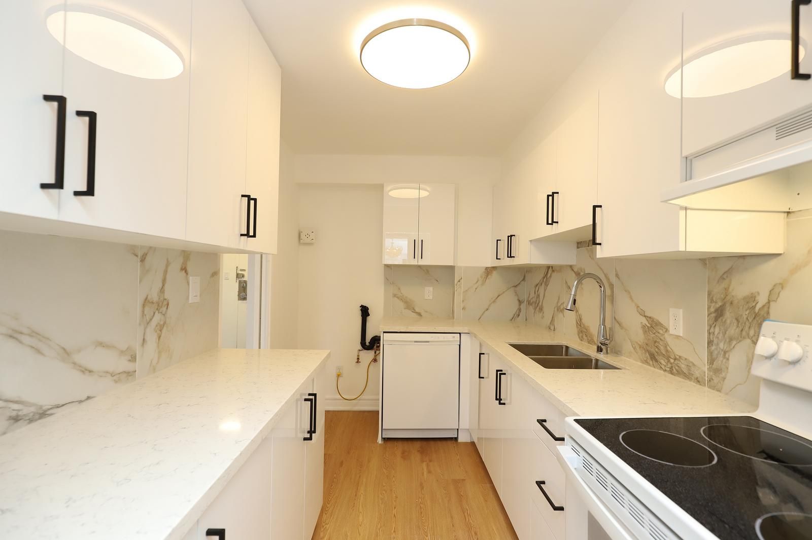 Just renovated! A rare opportunity to own a turnkey condo in an unbeatable location. Move in ready! This bright 1 bedroom condo checks every box - new vinyl floors, a modern kitchen with quartz countertop with a new stove and dishwasher and provision for washer/dryer installed. Brand new 4 piece bath, open concept living with large windows, unobstructed east view that floods the space with morning sun. Steps to the subway, parks, trails, and loaded with amenities: indoor pool, gym, squash courts & more. Bedroom and living/dining rooms virtually staged.