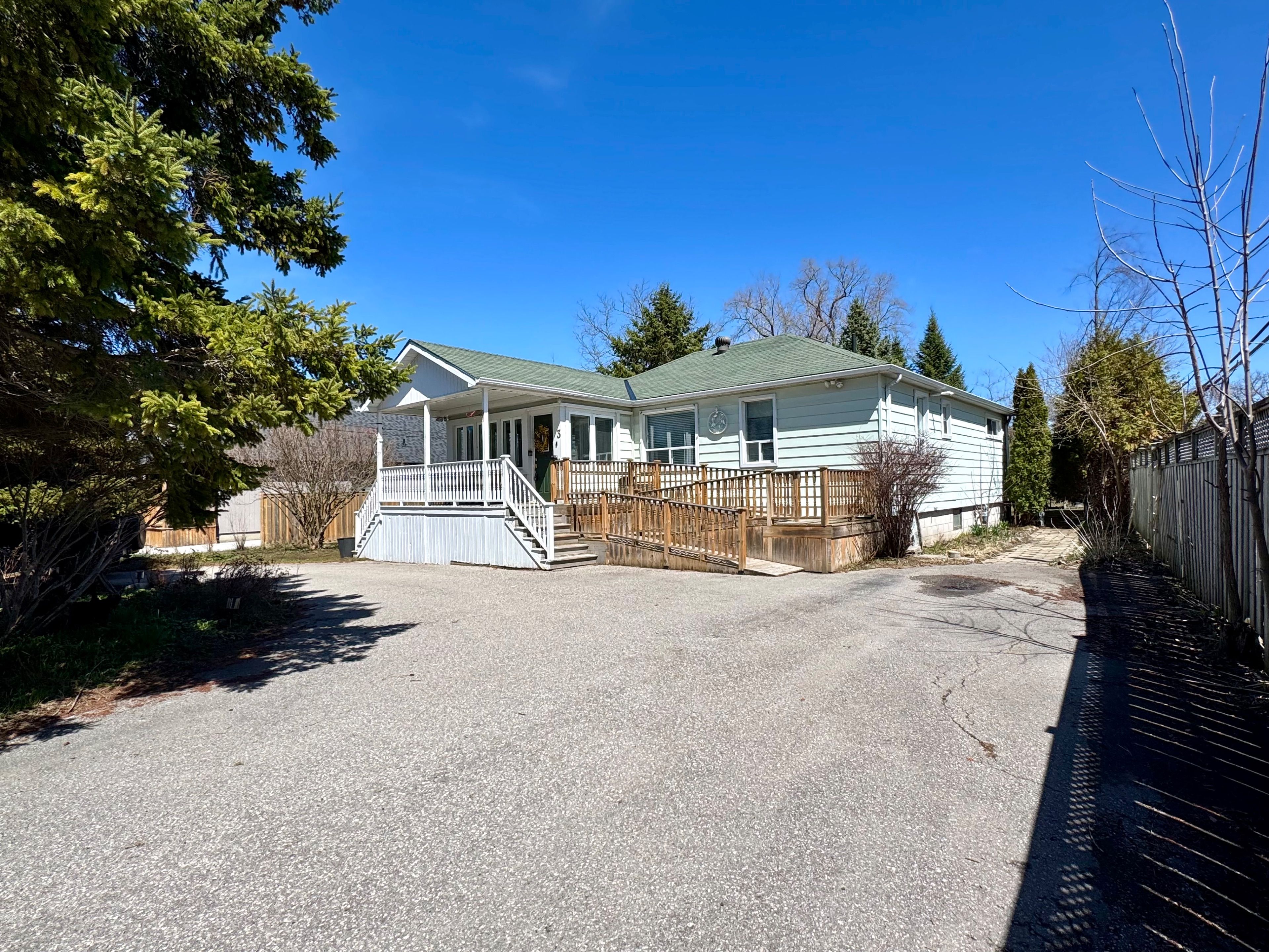 Condo living not for you? Want a good-sized yard for a dog, a pool or a garden? But want to be able to walk to town, shopping and restaurants? Need one floor living? Love the thought of taking a stroll along the lake with your coffee or letting the grandkids play at the beach? This one might be for you then. Just steps from the shore of lake simcoe sits this 2 bedroom bungalow on dead-end street close to "the point". Well maintained and recently painted throughout. Large (but not too big) lot with mature trees. Fenced for your peace of mind. Circular driveway for easy access and lots of parking. Covered front porch for some old-fashioned sitting. Sunny back deck with covered bbq area (with natural gas line so no lugging tanks). Formal living and dining room for entertaining. With more casual family room and breakfast area off kitchen and deck. They say the kitchen is the center of the home. And it literally is here. With built-in appliances, breakfast bar in easy view of everything. Primary big enough for king bed. Semi-ensuite will appease both the soaker tub and the walk-in shower fans. 2nd bedroom at opposite end of bathroom. Sunroom would make a great home office! Large laundry/utility room with work counter, bright window and room for all your extras. Then let's talk about the high and dry, well insulated and heated crawlspace under the entire house. Seasonal storage woes are a thing of the past. See? Boom! This one hits the spot.