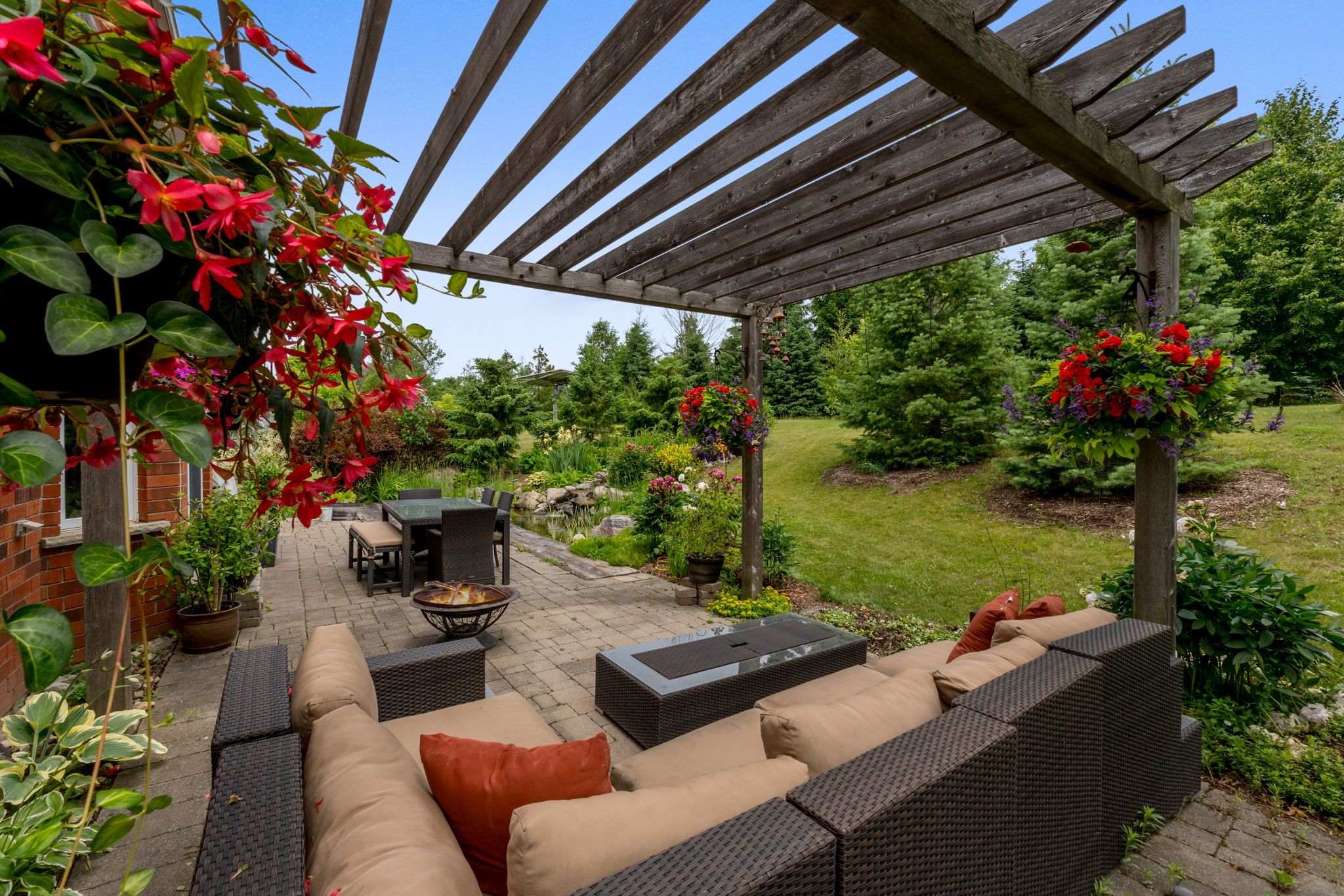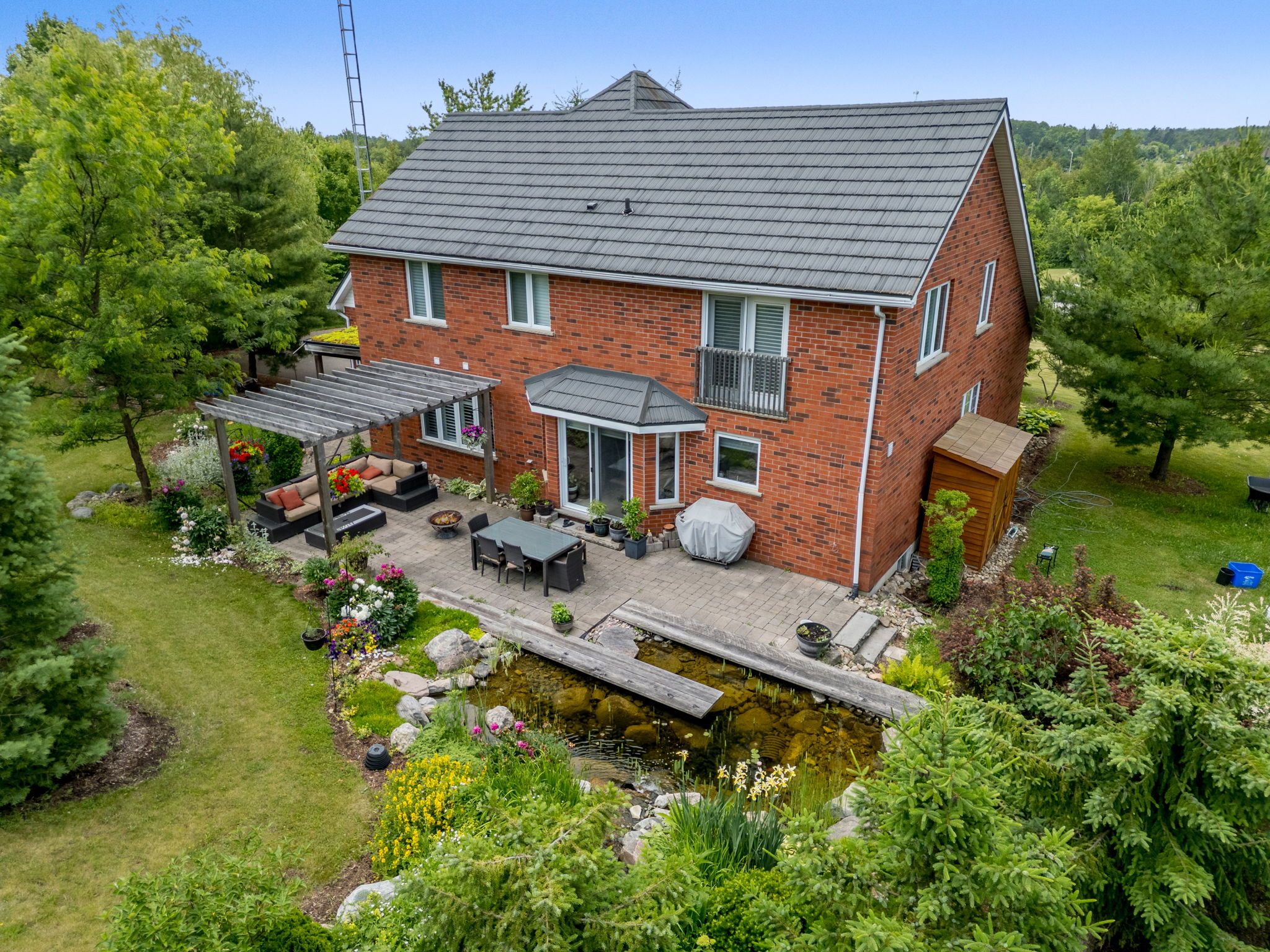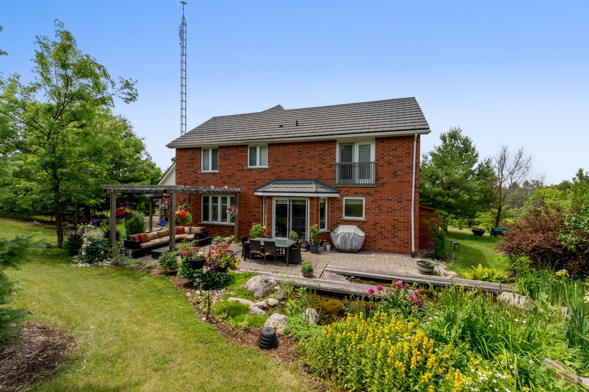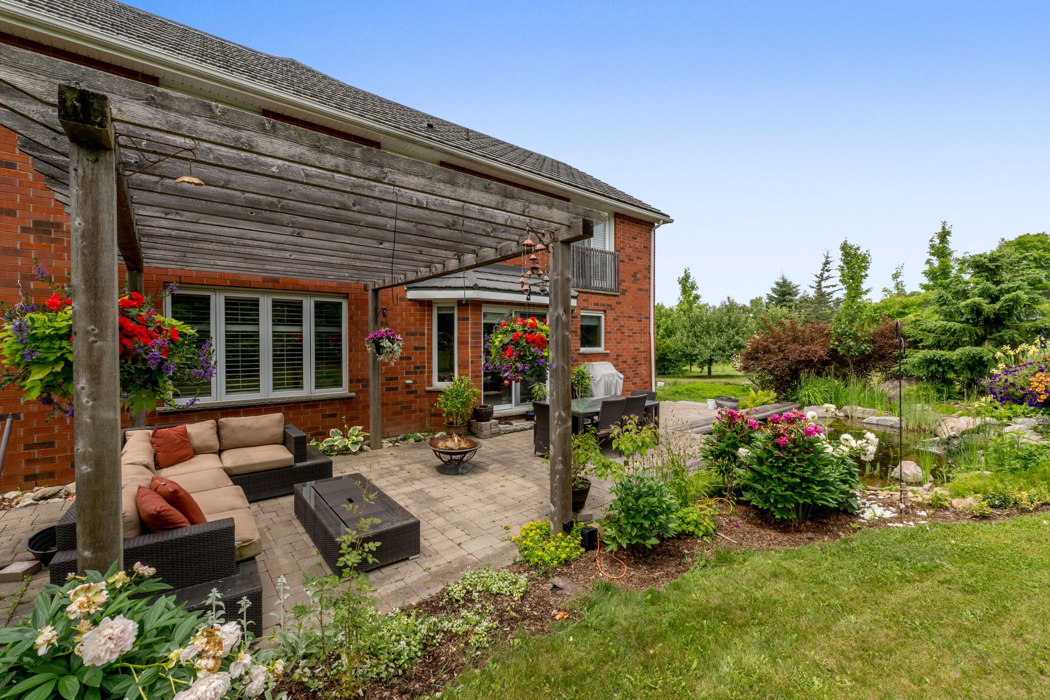 • Peaceful setting featuring wildflower meadows and a serene pond with waterfall.