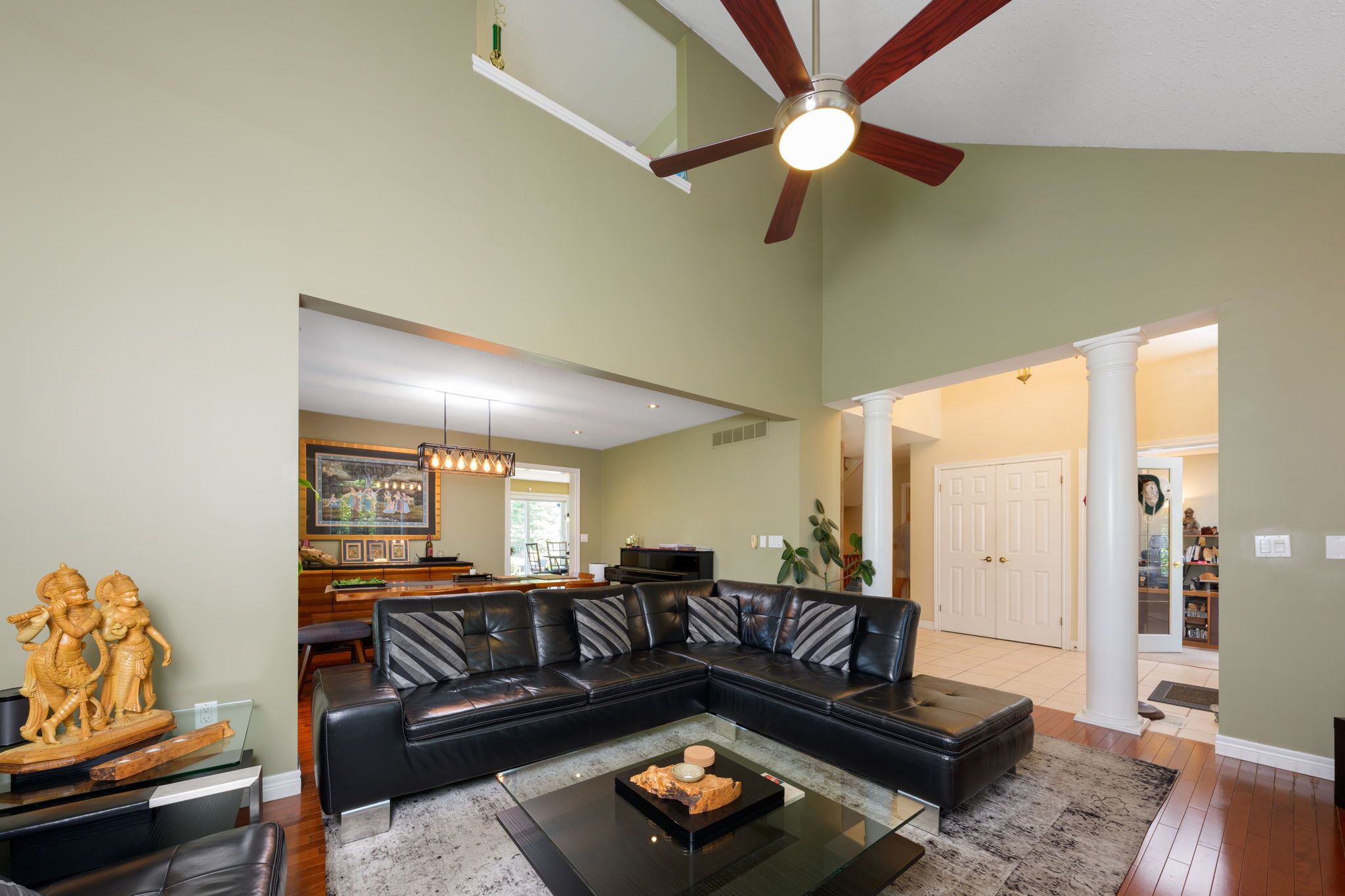 • Spacious open concept kitchen with stainless steel appliances and large center island.