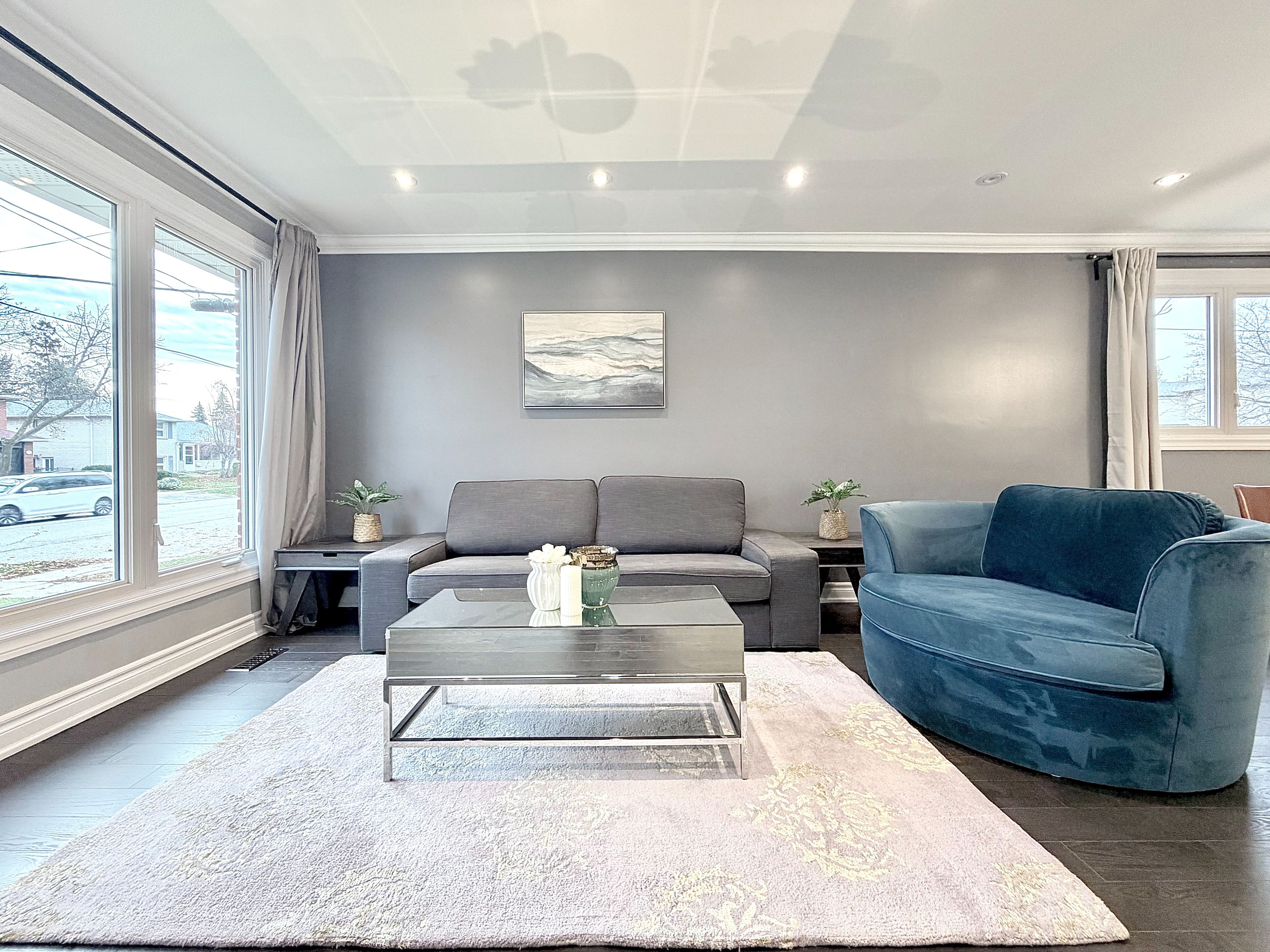 Welcome to this exceptionally refined and impressively spacious detached residence in the highly sought after and connected don valley village community. Step inside and be greeted by a home that exudes elegance and modern sophistication. The interior has been tastefully updated with premium, high-quality finishes that still feel remarkably fresh and current. Sunlight pours through expansive windows, illuminating the rich hardwood flooring that flows seamlessly throughout. Smooth ceilings, ample pot lighting, and a modern oak staircase with glass railing add a clean, contemporary touch to the home's interior. The gourmet kitchen serves as a functional and inviting central hub, complete with custom cabinetry, polished quartz countertops, high-end stainless steel appliances, and a large centre island with overhang-ideal for everyday meals and casual gatherings. The open-concept layout on the main floor connects the kitchen with the living and dining areas, creating a practical and enjoyable space for both daily living and entertaining. This rare 4-level back-split offers impressive flexibility for larger households or multi-generational living. The upper levels include four comfortable bedrooms, with the primary suite featuring a private 3-piece ensuite. The ground level, with its own separate entrance, provides a versatile option for extended family or guests. The fully finished basement adds two more bedrooms presenting notable income opportunities. Perfectly situated in the heart of toronto, this home offers unmatched convenience with effortless access to hwy 401 and 404, fairview mall, seneca college, a variety of shopping plazas, don mills subway station, and the go station.