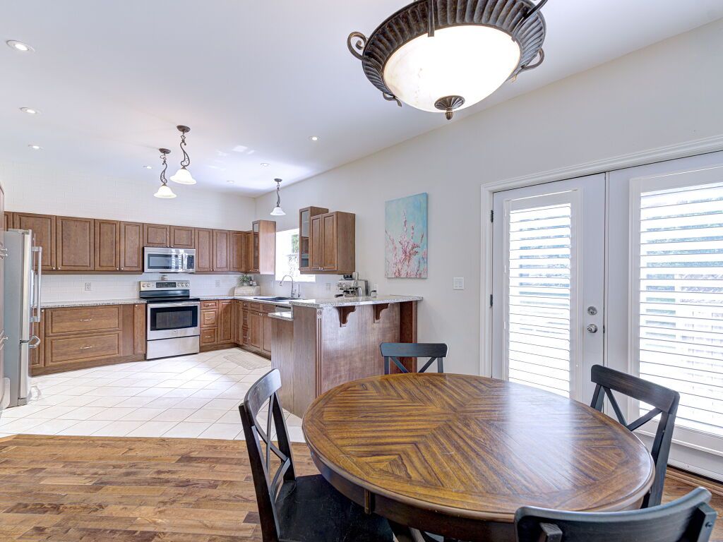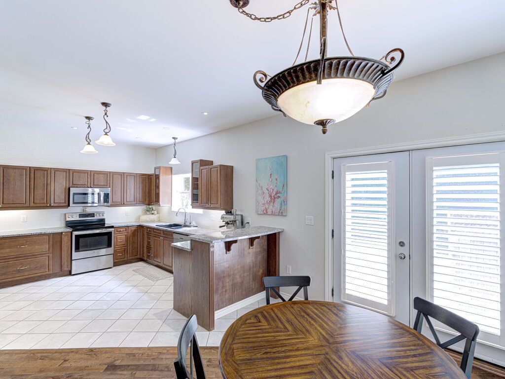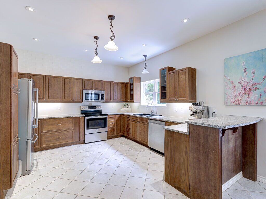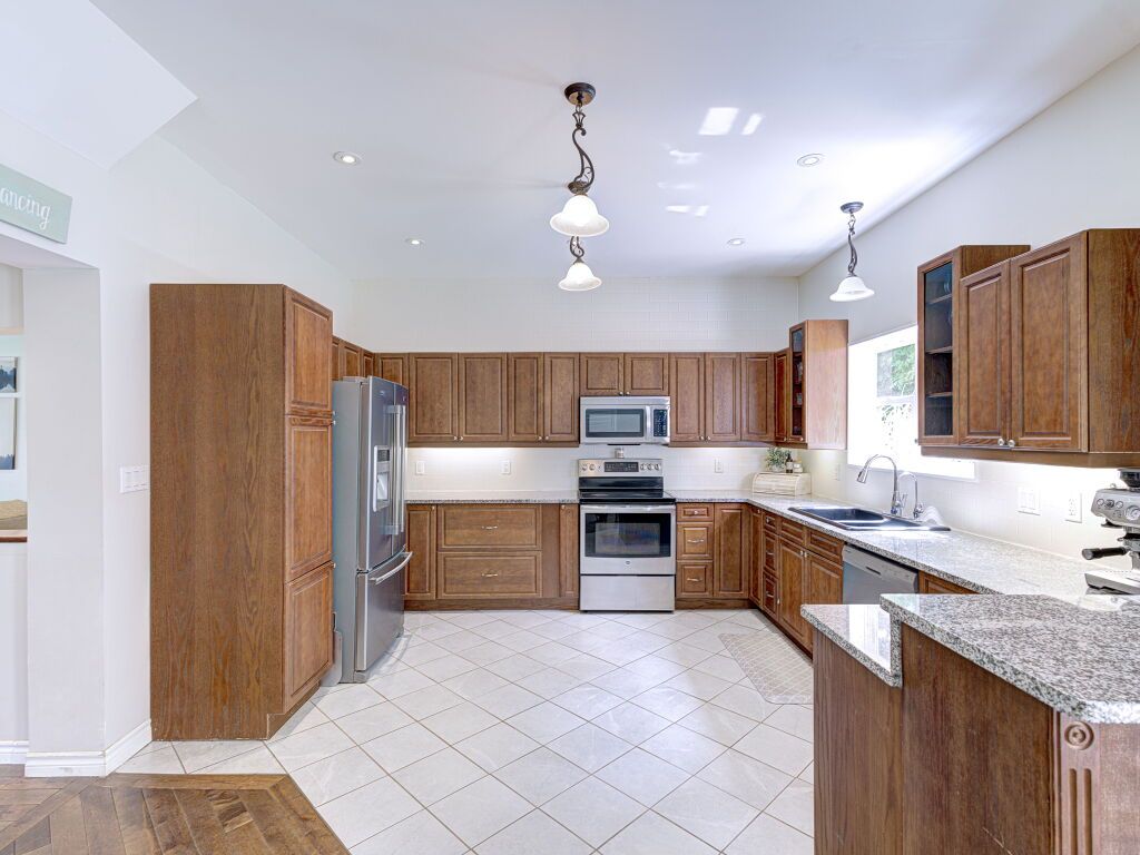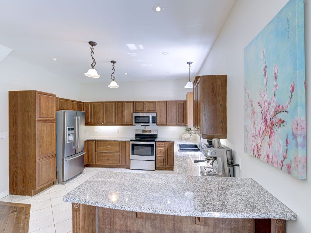 • Custom kitchen with granite counters and hardwood floors throughout.