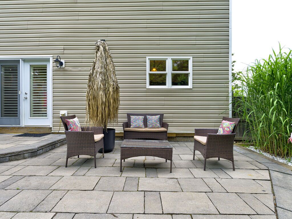 • Huge yard with new fence, gardens, and two stone patios.