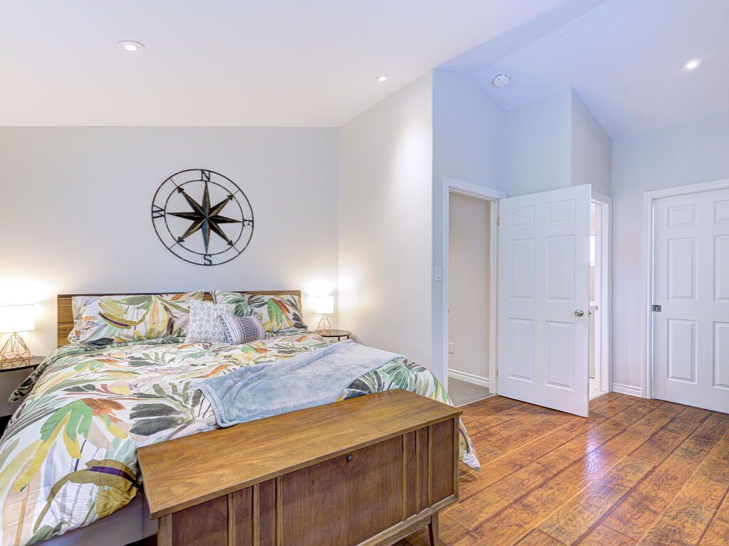 • Large primary bedroom with ensuite, double sinks, and walk-in closet.