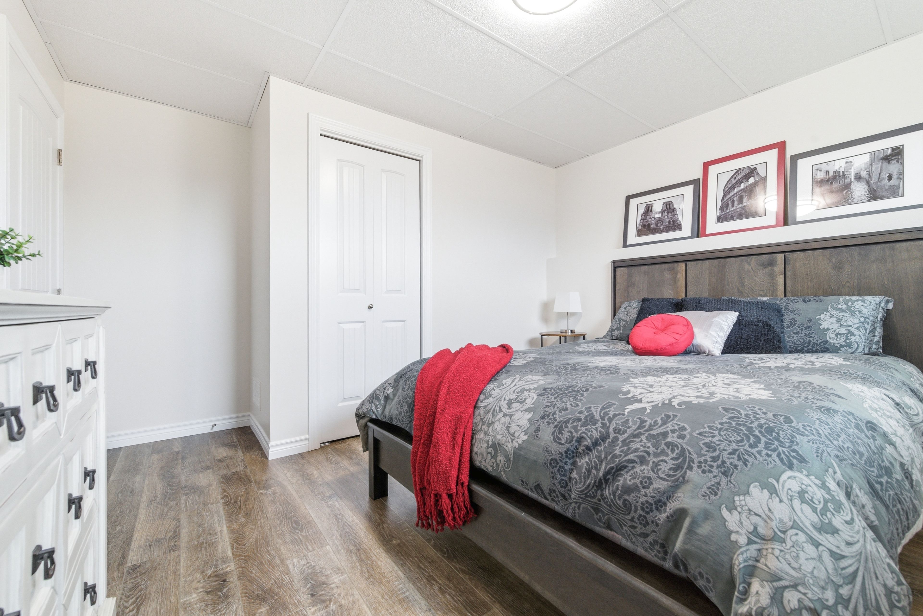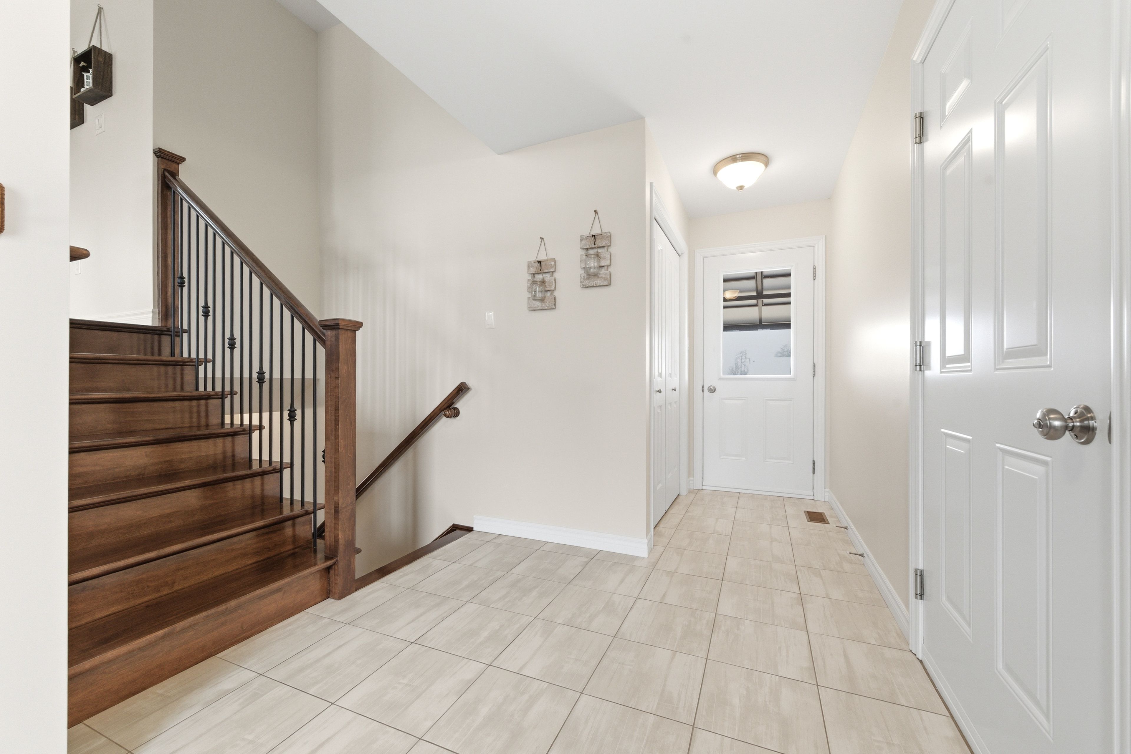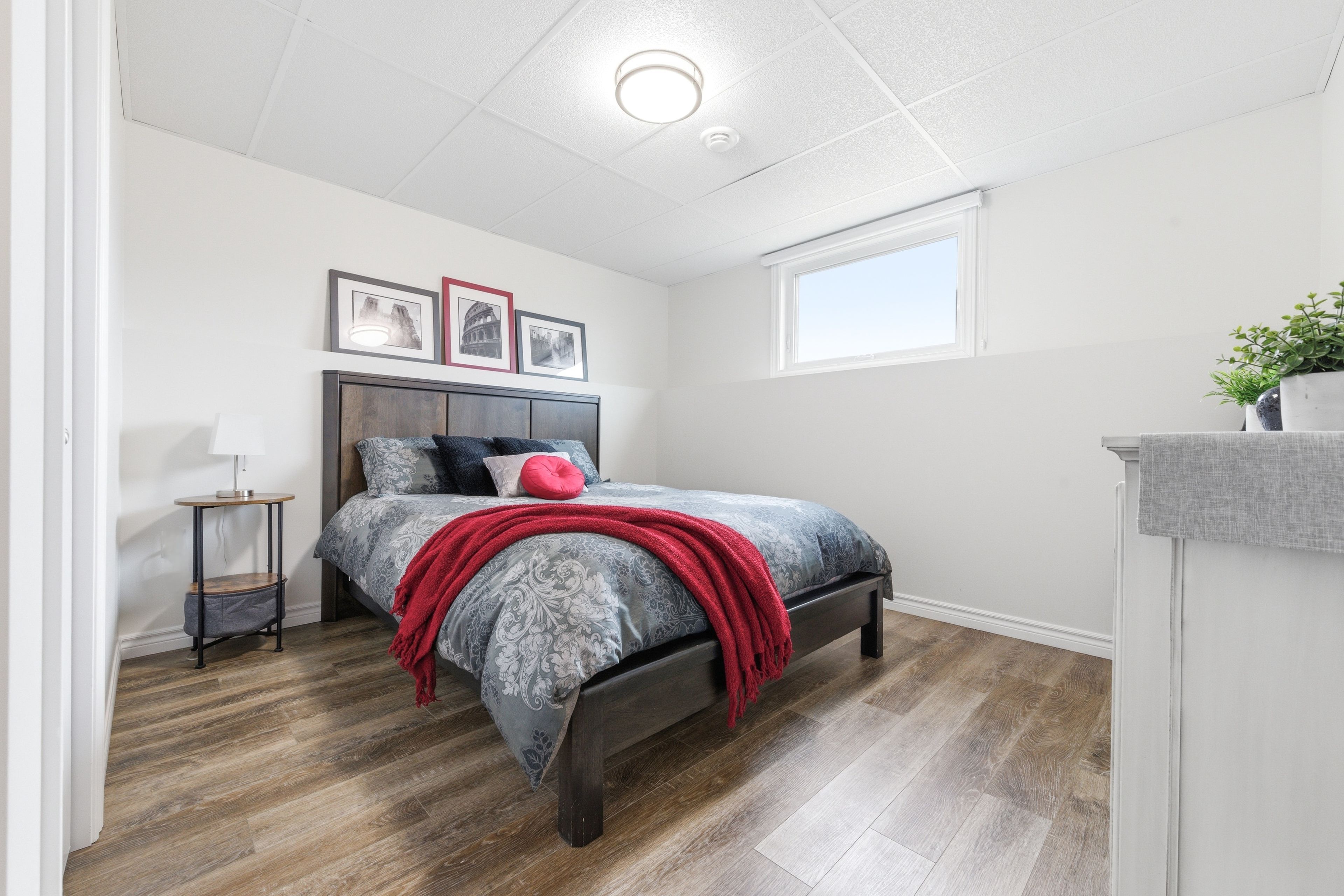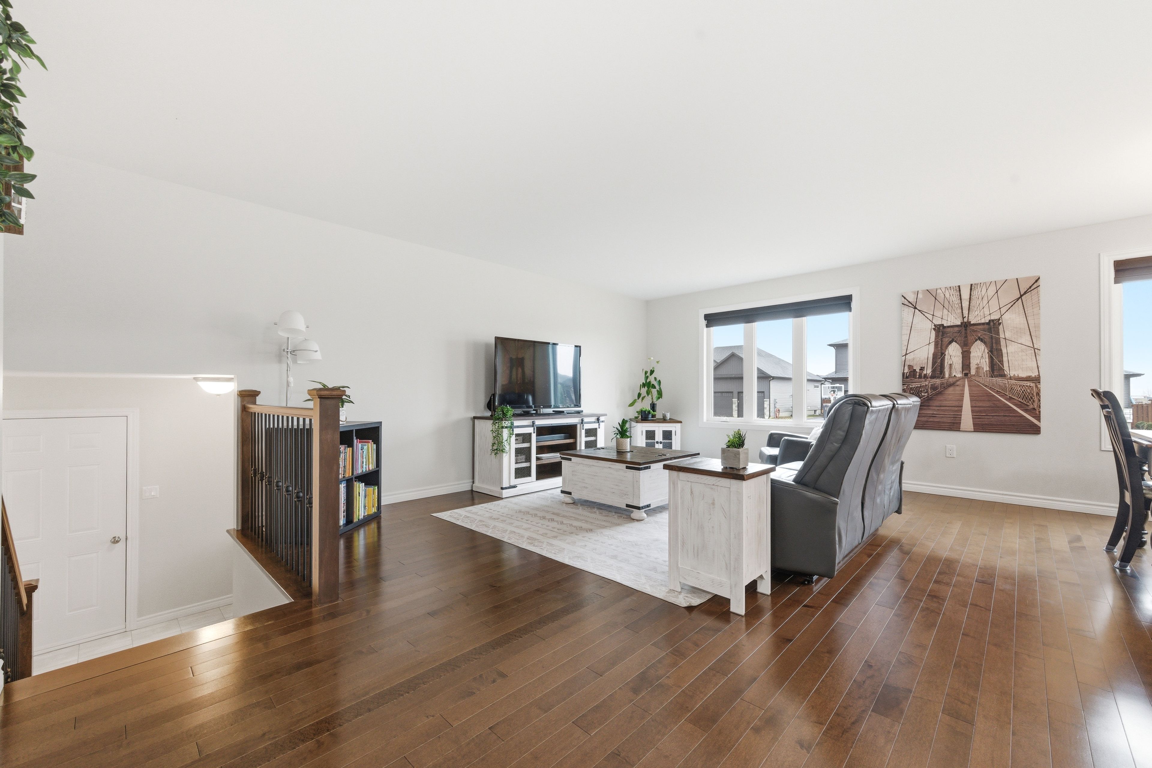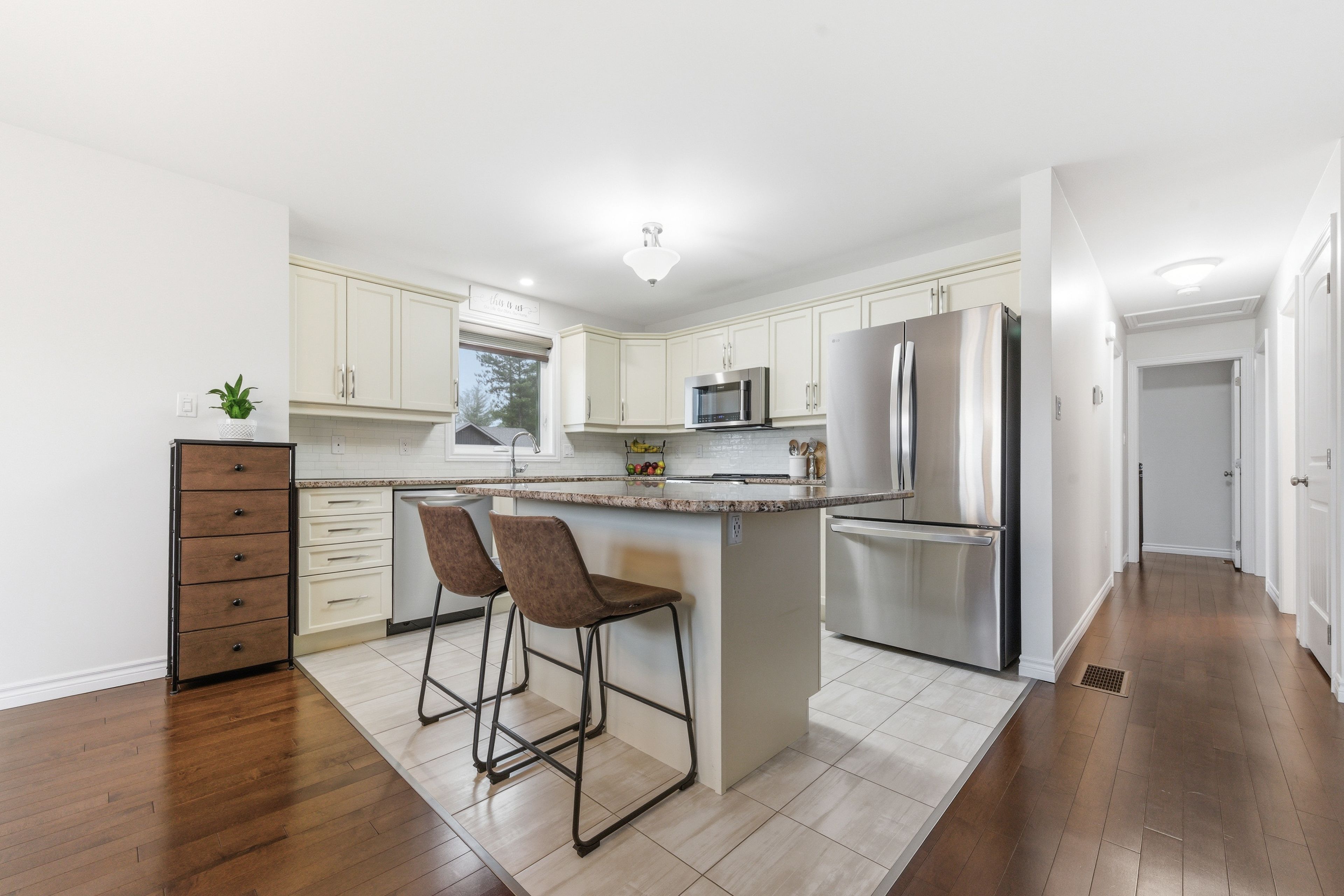 Turn key family home in the highly sought-after radtke estates subdivision. This well maintained property offers exceptional quality finishes across both levels, beginning with a spacious front entrance that provides convenient access to the backyard and insulated true, two car garage. Gleaming hardwood floors flow seemlessly throughout. The open concept kitchen is fitted with beautiful granite countertops, a stylish tile backsplash, ample cabinetry, and a full pantry-perfect for everyday living and entertaining. Down the hall are three generous bedrooms and large bathroom complete with glass shower doors and a linen closet for added storage. The fully finished lower level expands your living space with a grand family room ideal for gatherings, along with two additional bedrooms and a second full bathroom. Situated on a large, fully fenced corner lot, the exterior is just as impressive. Enjoy a beautifully designed interlock patio with gazebo, natural gas hookup for bbq, a custom irrigation system, and a powered shed (30-amp service) ready to accommodate the pool of your dreams. You can even park your toys. The yard offers excellent potential for future customization. 24 hr irrevocable on all written signed offers.