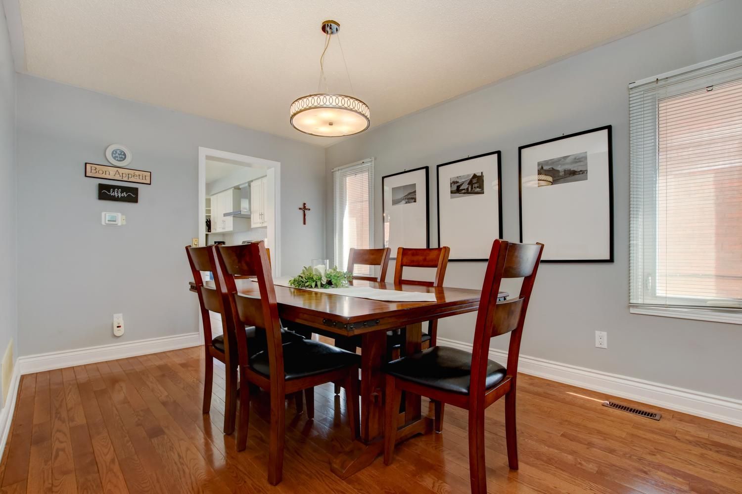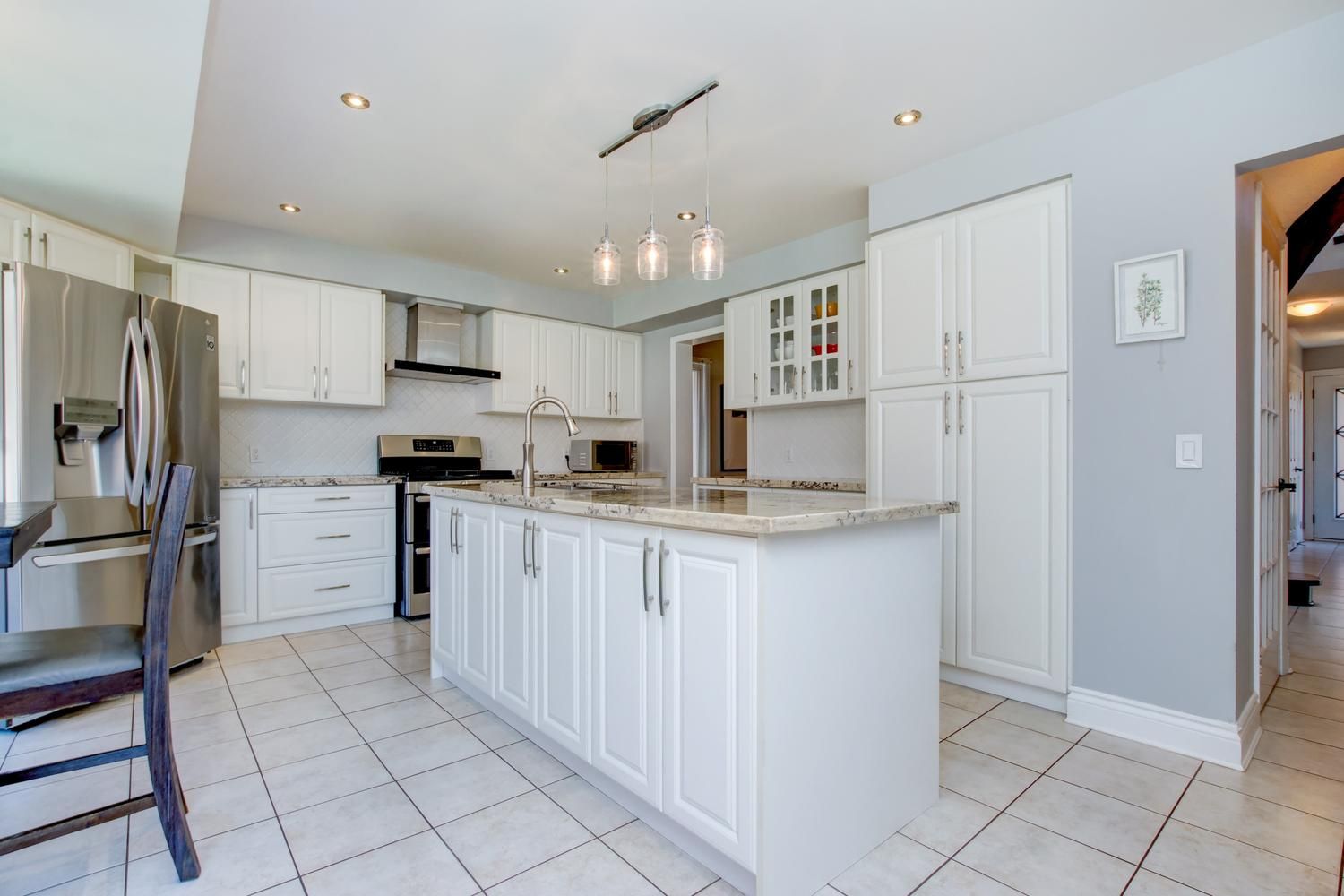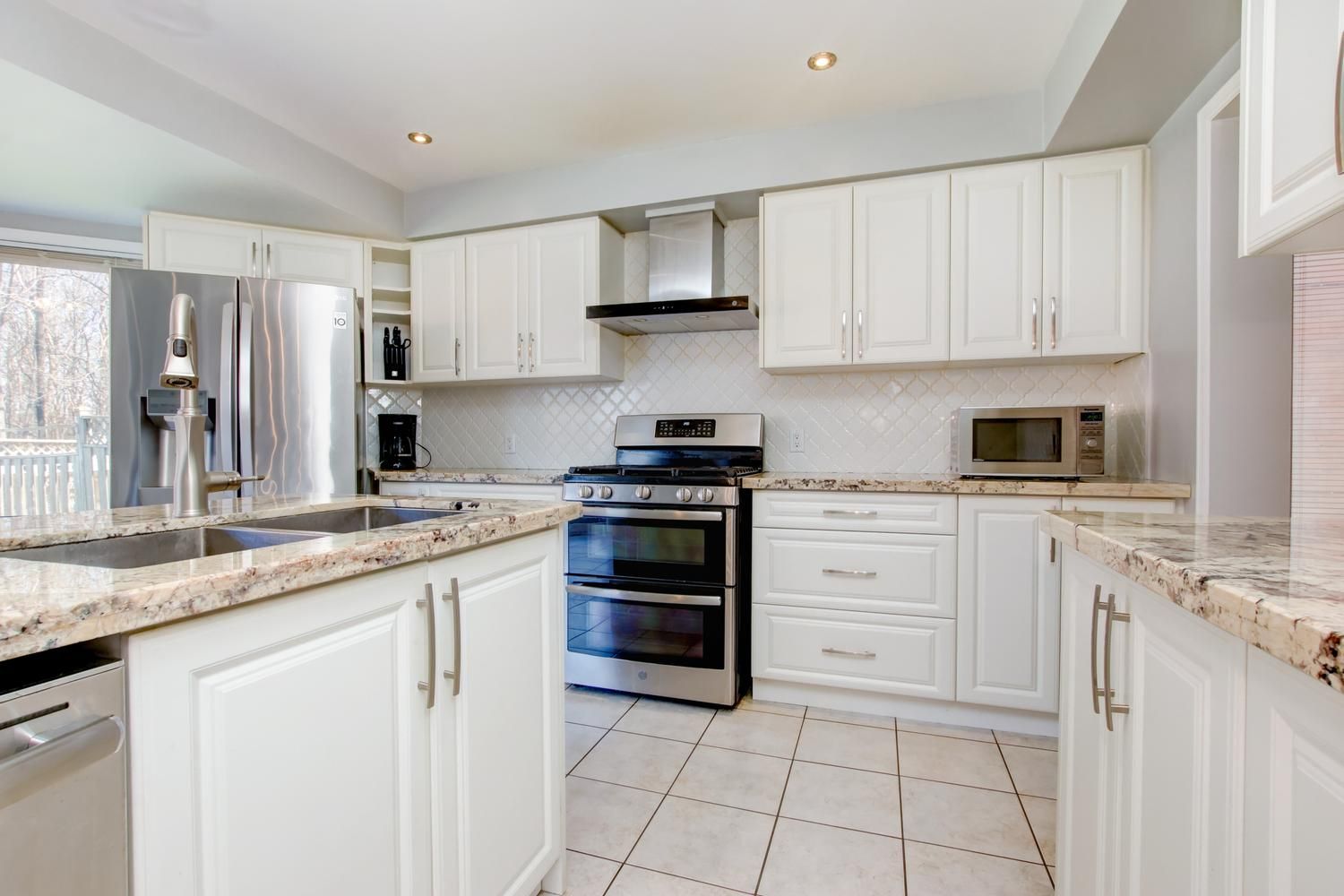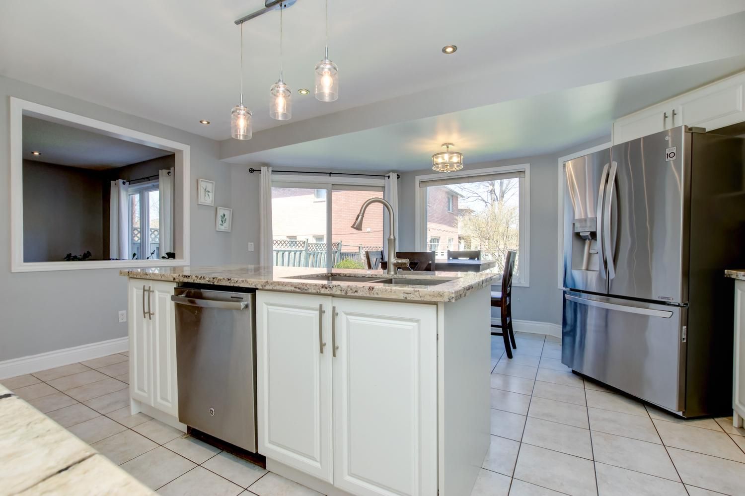 Gorgeous 4 + 1 bedroom, 4 bath, all brick executive home ( 2478 sqft ) on a small " child - safe " court overlooking wooded parkland ! Gourmet "all white" kitchen featuring granite countertops, centre island, stainless steel appliances, pot lights and a walk-out. Large master bedroom with a luxury 5 -pc ensuite bath, corner glass shower, soaker tub and his / her mirrored closets. Mainfloor family room with a two sided fireplace, formal dining room, gleaming hardwood floors, spiral oak staircase with wrought iron pickets and mainfloor laundry room with garage entrance. Nicely finished lower level featuring a 5th bedroom with walk - in closet, modern 4 -pc bath, open concept rec room and laminate flooring ( no carpet ). High efficiency furnace ( 2025 ), updated central air ( 2023 ), reshingled roof ( 2022 ), renovated bathrooms, two skylights, central vac, upgraded doors and trim. Premium 36' x 115' lot with mature trees, interlock patio, poured concrete walkway, four car driveway with french curbs, walking distance to schools, parks, trinity common mall and quick access to hwy # 410. Shows well and is priced to sell !
