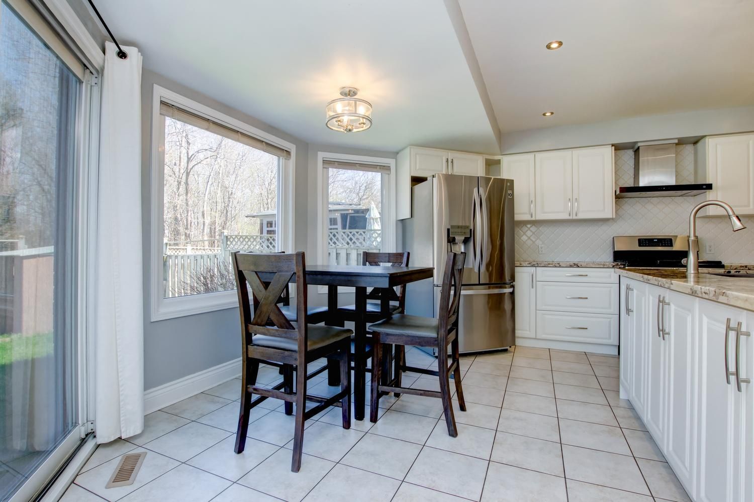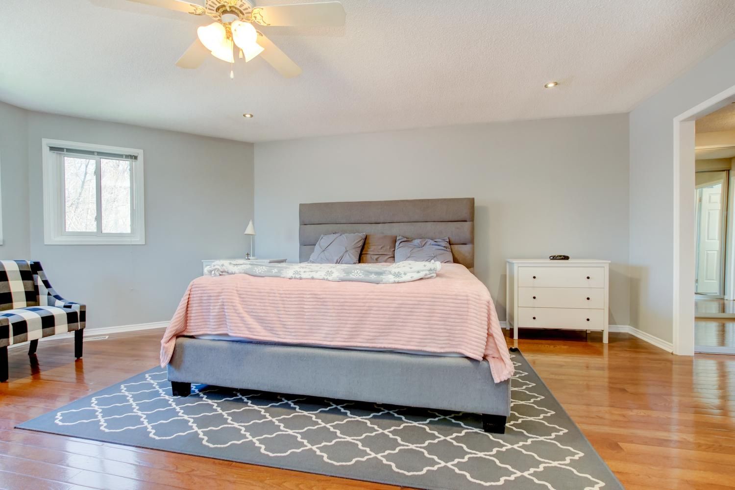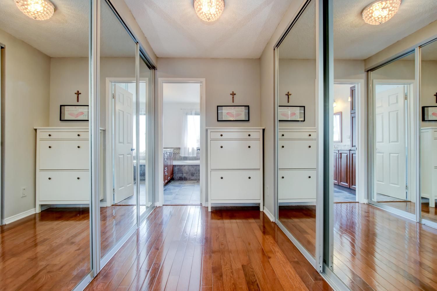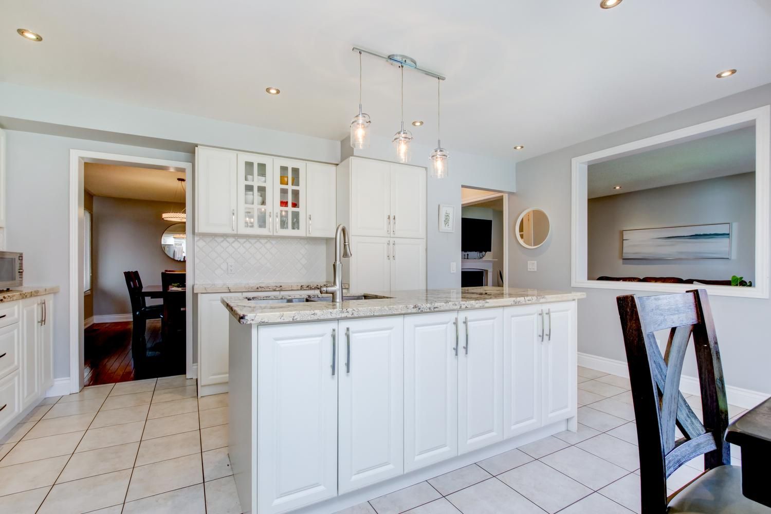 Gorgeous 4 + 1 bedroom, 4 bath, all brick executive home ( 2478 sqft ) on a small " child - safe " court overlooking wooded parkland ! Gourmet "all white" kitchen featuring granite countertops, centre island, stainless steel appliances, pot lights and a walk-out. Large master bedroom with a luxury 5 -pc ensuite bath, corner glass shower, soaker tub and his / her mirrored closets. Mainfloor family room with a two sided fireplace, formal dining room, gleaming hardwood floors, spiral oak staircase with wrought iron pickets and mainfloor laundry room with garage entrance. Nicely finished lower level featuring a 5th bedroom with walk - in closet, modern 4 -pc bath, open concept rec room and laminate flooring ( no carpet ). High efficiency furnace ( 2025 ), updated central air ( 2023 ), reshingled roof ( 2022 ), renovated bathrooms, two skylights, central vac, upgraded doors and trim. Premium 36' x 115' lot with mature trees, interlock patio, poured concrete walkway, four car driveway with french curbs, walking distance to schools, parks, trinity common mall and quick access to hwy # 410. Shows well and is priced to sell !