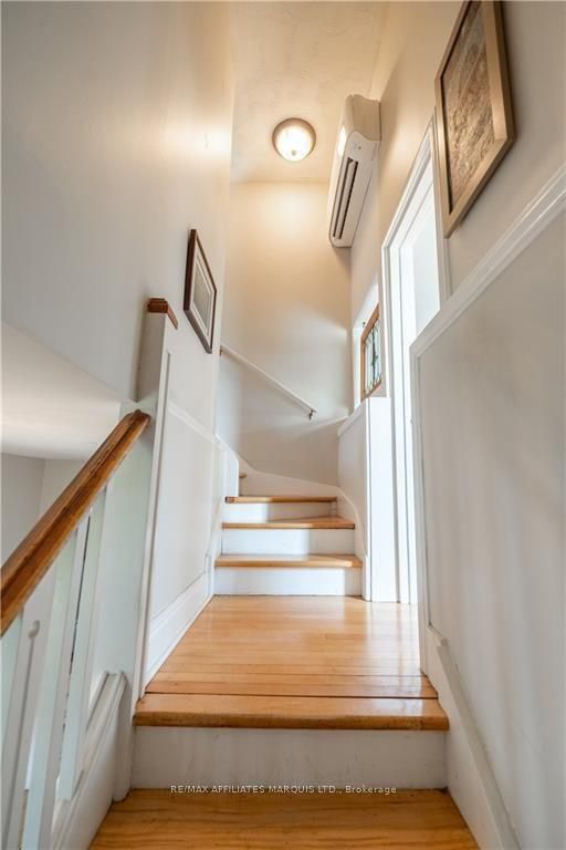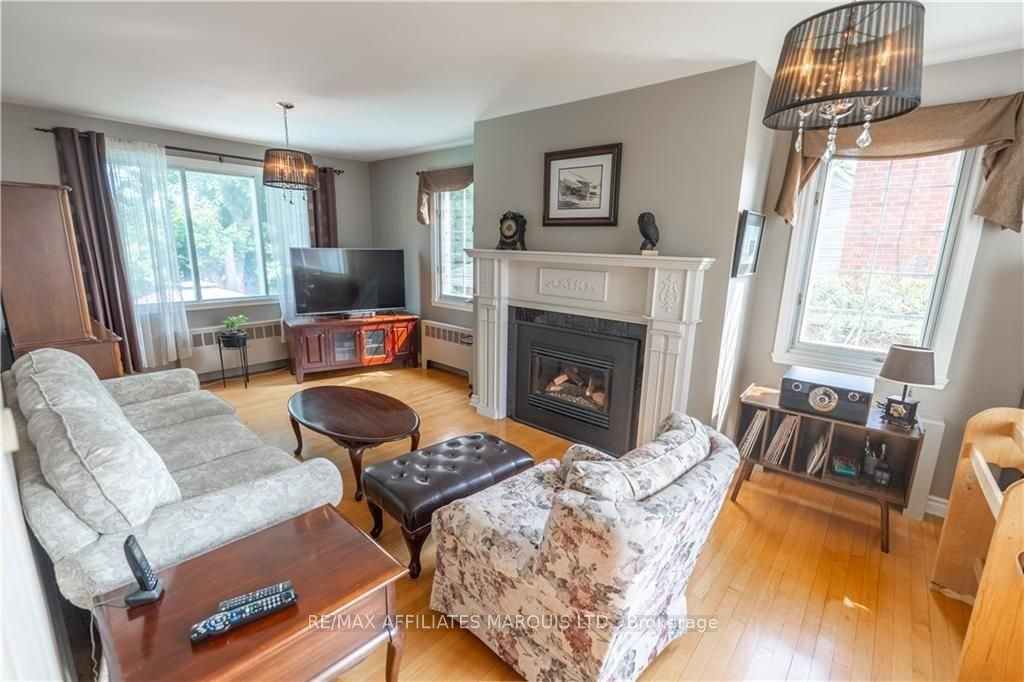 Welcome to this beautifully preserved downtown gem, lovingly cared for by the same owner for over 40 years. Rich in timeless mid-century character, this 3-bedroom, 2-bathroom home showcases stunning original hardwood floors and the kind of warmth and charm that simply can't be replicated. The main level features a functional kitchen, a separate dining space perfect for gathering, and an inviting living room anchored by a cozy gas fireplace. Upstairs, you'll find three comfortable bedrooms, the main bath, and a versatile bonus room with its own gas fireplace, ideal as a family room retreat or easily converted into a fourth bedroom. Designed for comfort in every season, both levels are cooled by two efficient ductless dual air conditioning/heating units as well as a gas boiler, keeping the home comfortable year-round. The basement offers additional living space with a rec room and convenient 2-piece bath. Step outside to your private backyard escape featuring flagstone, a spacious deck, gazebo, covered porch, and a fully serviced shed with electrical, natural gas, water, and a 3-season toilet. An attached garage, driveway with 4 parking spaces and an unbeatable location within walking distance to amenities, elementary and secondary schools complete this exceptional offering. A rare opportunity to own a character-filled home in the heart of downtown.