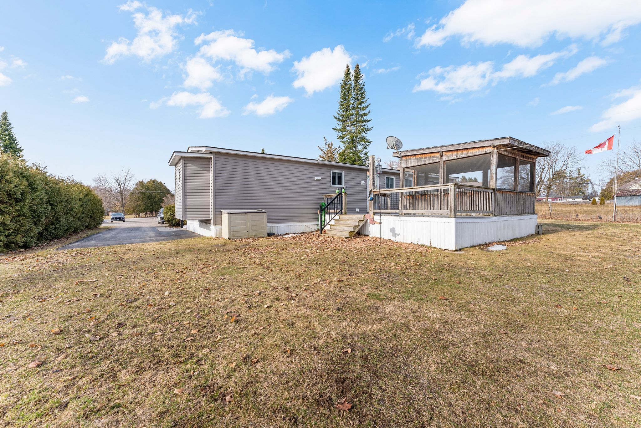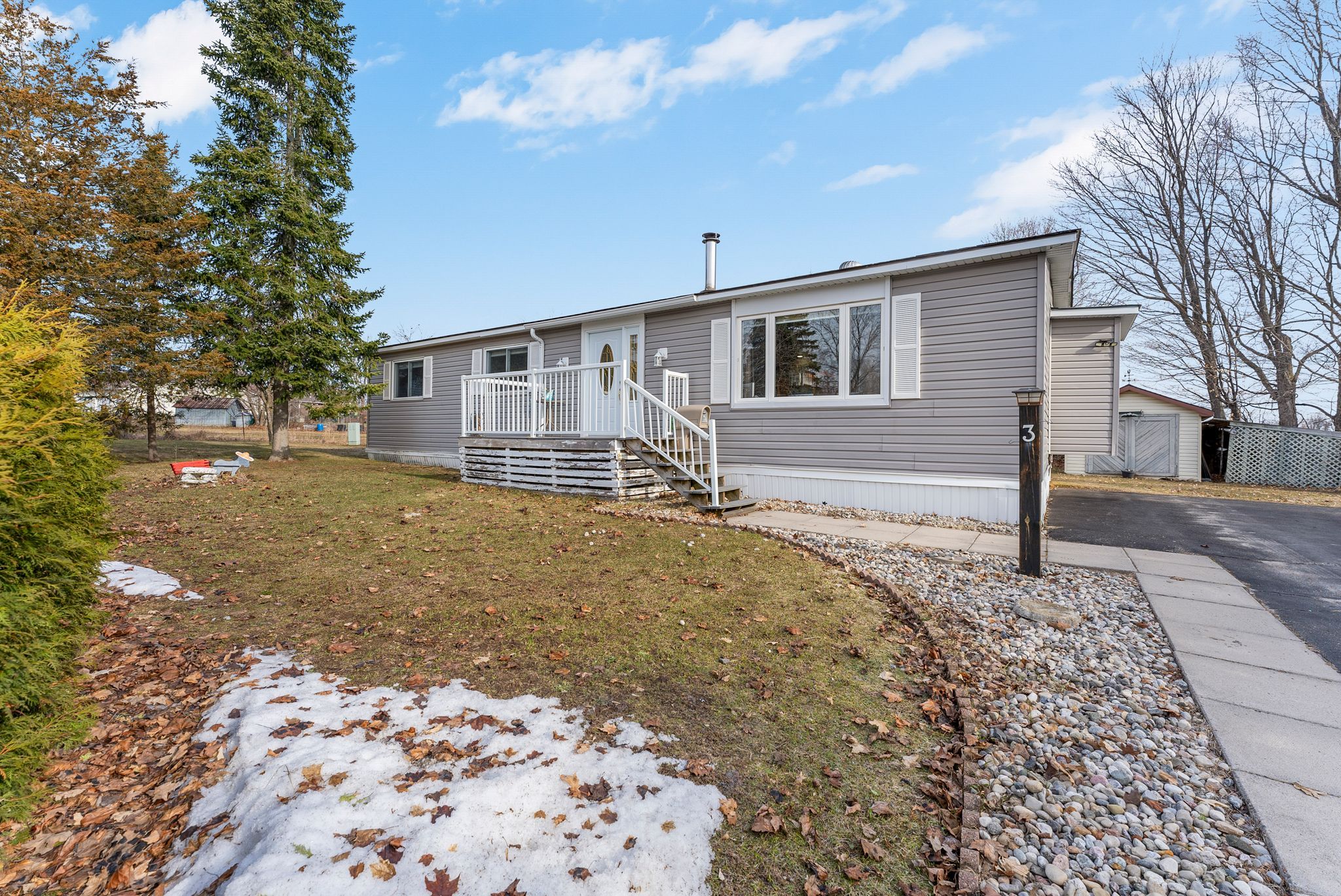 Welcome to 3 otterdale crescent in the heart of smiths falls-an inviting and affordable opportunity perfect for first-time buyers, downsizers, or anyone seeking comfortable, low-maintenance living in a quiet, mature neighbourhood. Set on a large, private lot surrounded by mature hedges and backing onto peaceful farm pastures, this property offers a rare sense of space and tranquility while still being close to town amenities. This well-maintained 3-bedroom, 1. 5-bath manufactured home features a bright and functional layout designed for everyday ease. Large front windows fill the living space with natural light, creating a warm and welcoming atmosphere, while the kitchen offers ample cabinetry and flows seamlessly into the dining area-ideal for both daily living and entertaining. The three bedrooms are generously sized, providing flexibility for family, guests, or a home office, complemented by the added convenience of a 1. 5-bath configuration. Step outside and enjoy everything this property has to offer. A large back deck with a screened-in room creates the perfect space to relax, dine, or entertain while enjoying the peaceful rural views. The expansive yard provides plenty of room for gardening or outdoor enjoyment, and is complemented by a garden shed and a large workshop-ideal for hobbyists, storage, or projects. The home's charming curb appeal, clean exterior, and welcoming front deck further enhance its appeal. Situated just under an hour from ottawa, smiths falls offers the perfect blend of small-town charm and everyday convenience. Known for its scenic rideau canal, the area provides year-round recreation-from boating and kayaking to walking trails and parks. With local shops, schools, healthcare facilities, and community amenities nearby, it's an ideal location for a wide range of buyers.