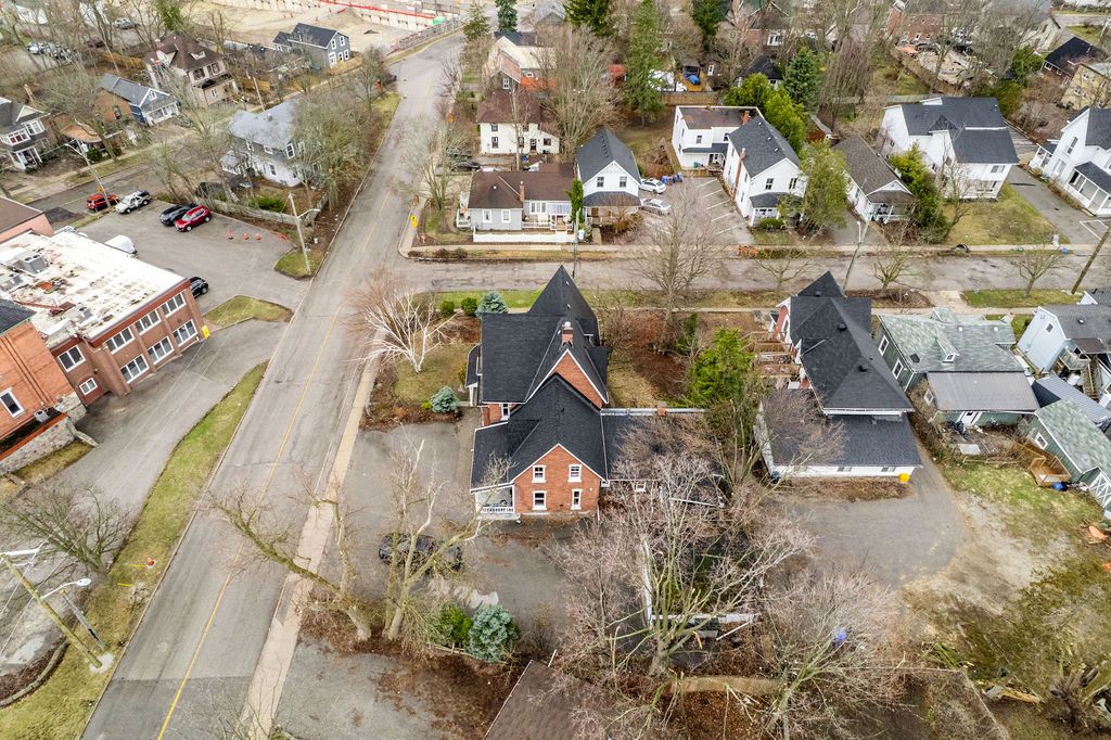 Welcome to 3 peel street, a unique and versatile property offering strong income potential in a sought-after downtown location. Situated on a spacious corner lot,this legal 4-plex also includes a detached in-law suite carriage house, offering a total of 5 self-contained units, all within walking distance to the library, farmers market, transit, and local amenities. The focal point is a red brick century home full of character, featuring distinctive gable details and timeless curb appeal. Inside,the property blends historic charm with functional living across multiple rental units. Unit 1, on the main floor, is a 3-bedroom suite with a separate powder room and a dedicated bath/shower room. Unit 2, in the detached carriage house, offers two bedrooms, a living room, kitchen, and a 4-piece bathroom, ideal for tenants seeking added privacy. Unit 3 is a 1- bedroom with new flooring and a refreshed 3-piece bathroom. Unit 4 is a spacious 1-bedroom with an eat-in kitchen, separate living room, full 4-piece bathroom, and fresh paint with new floors. Unit 5 features one bedroom, a galley-style kitchen, and a 3-piece bath. Recent upgrades include electrical and plumbing inspections, a new pressure booster for the water system, and two new rental hot water heaters. The property offers parking for multiple vehicles and detached garage space for tenant storage. 4 out of the 5 units are currently tenanted.