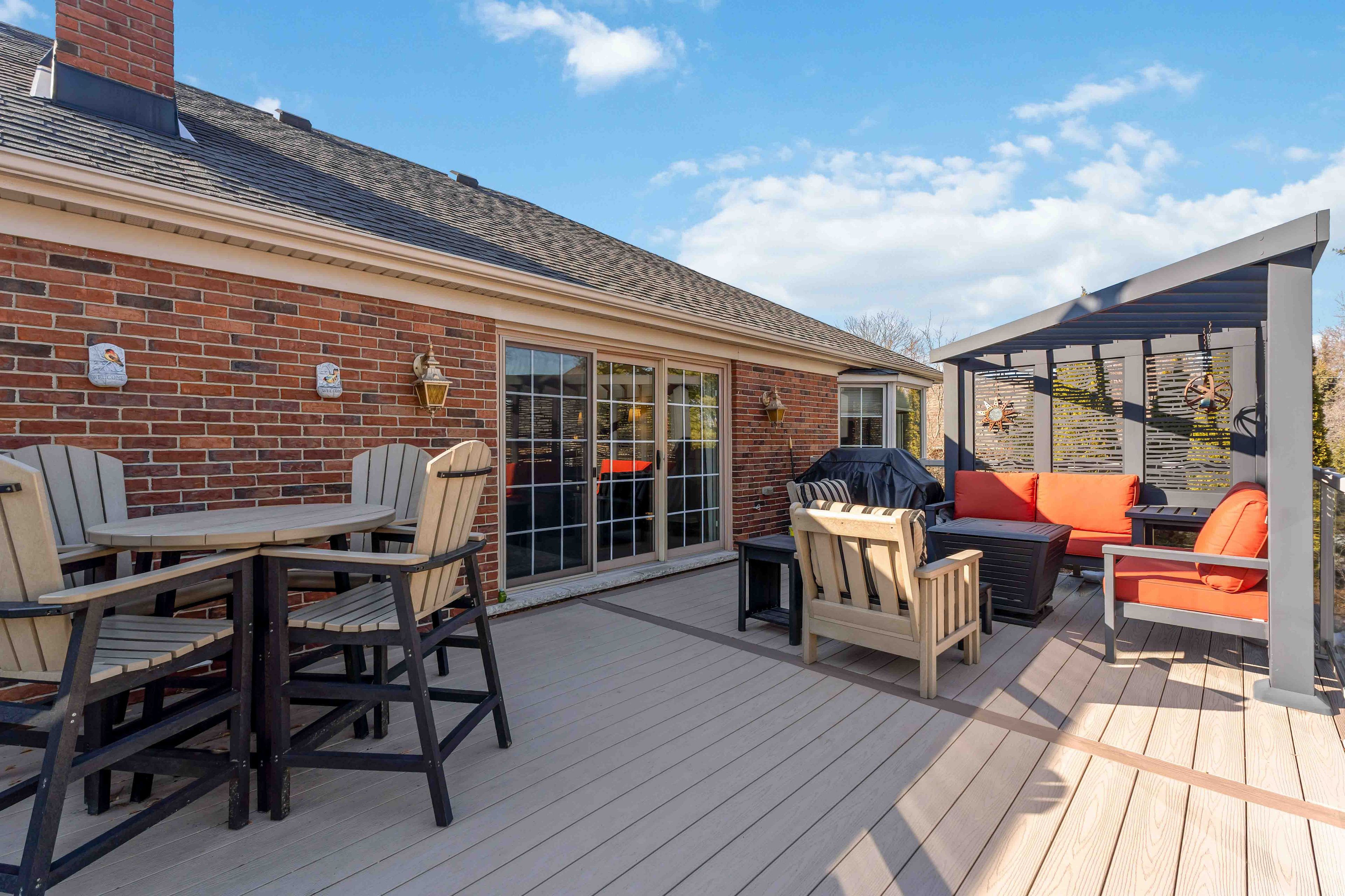 • Private backyard with patio and outdoor fireplace for relaxing evenings.
