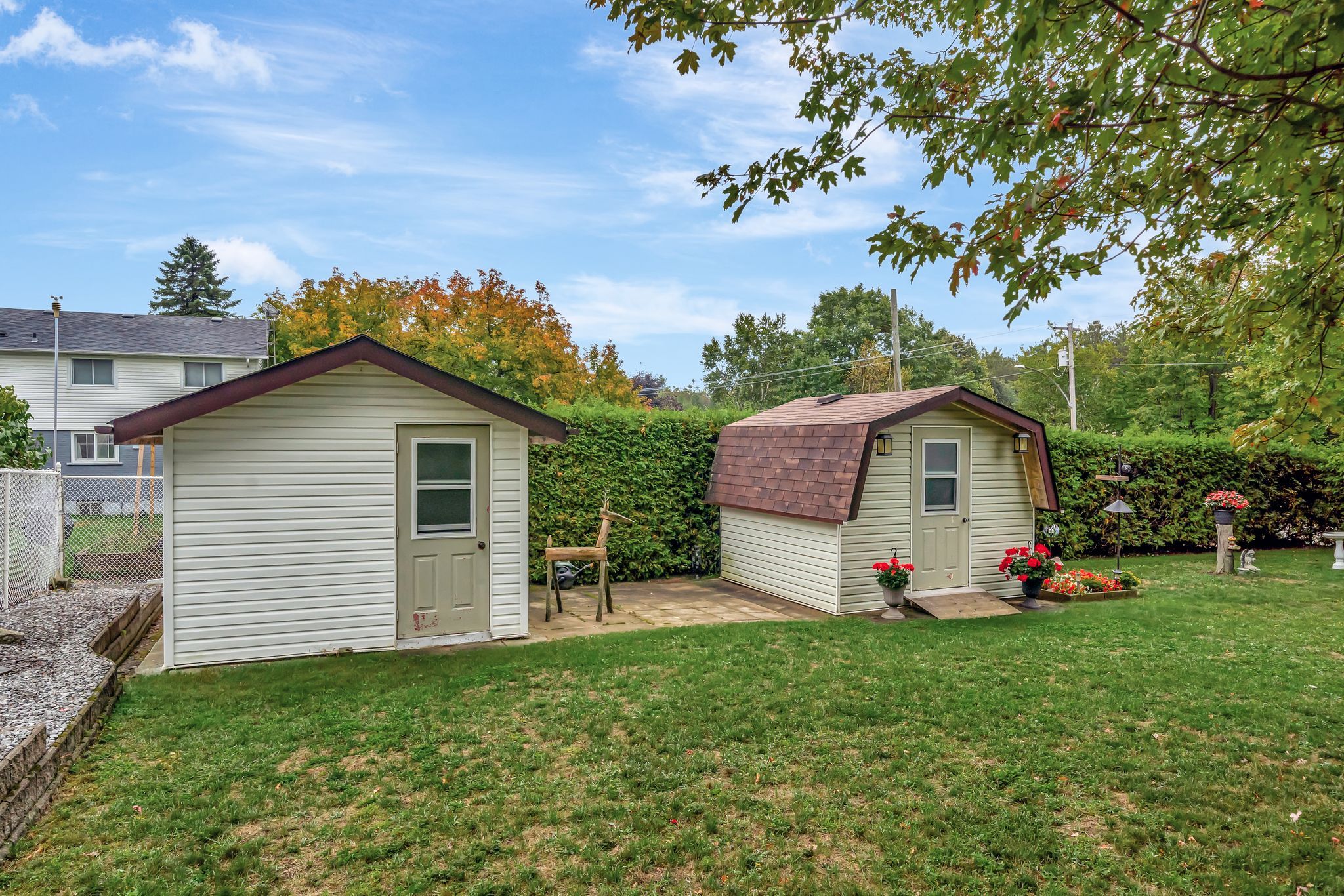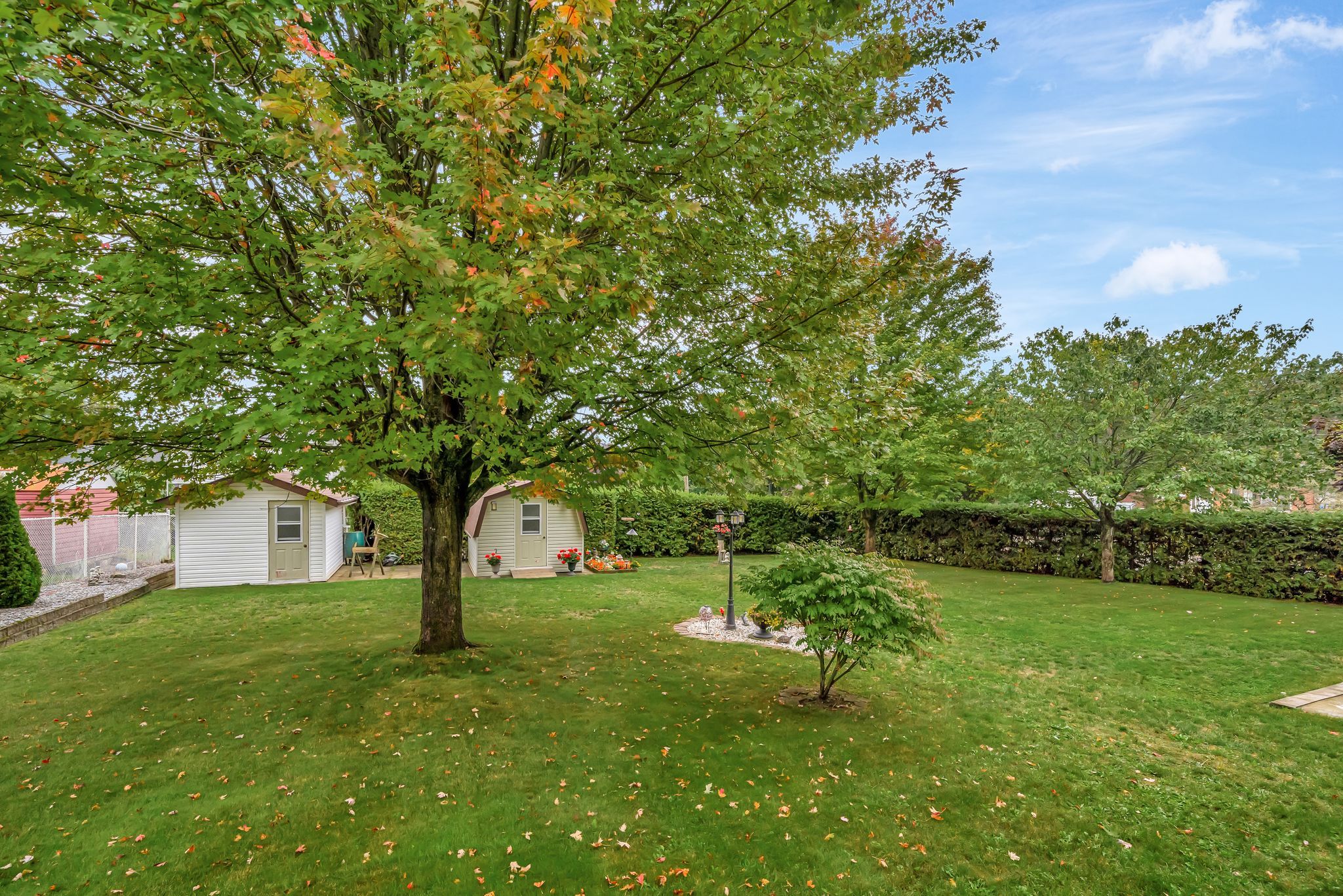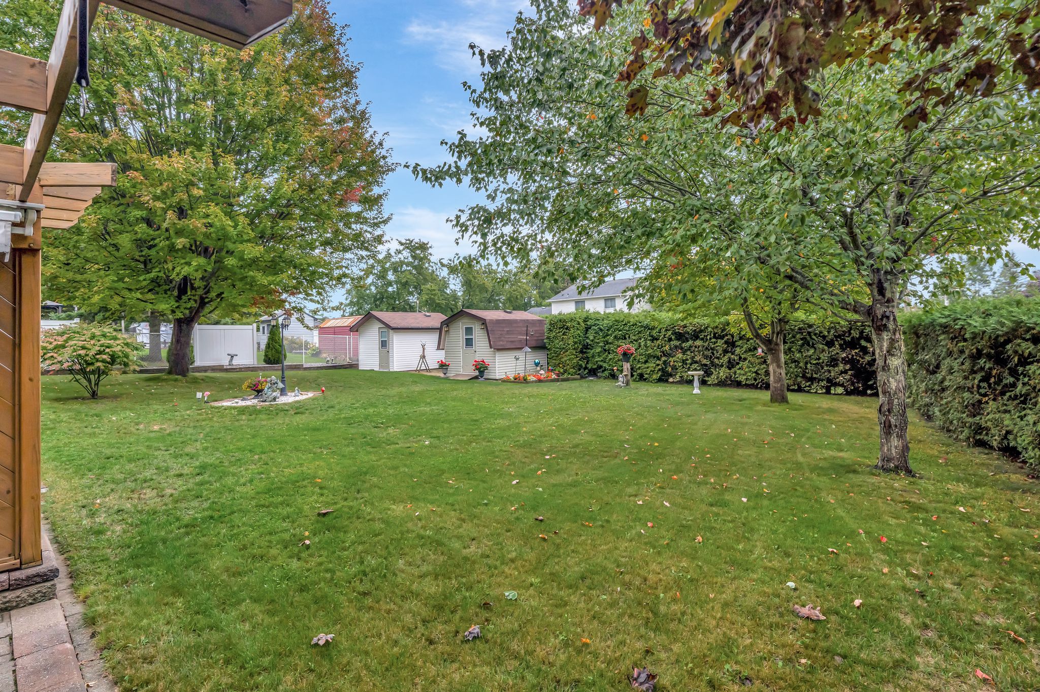 • Additional yard space with privacy from a mature cedar hedge.