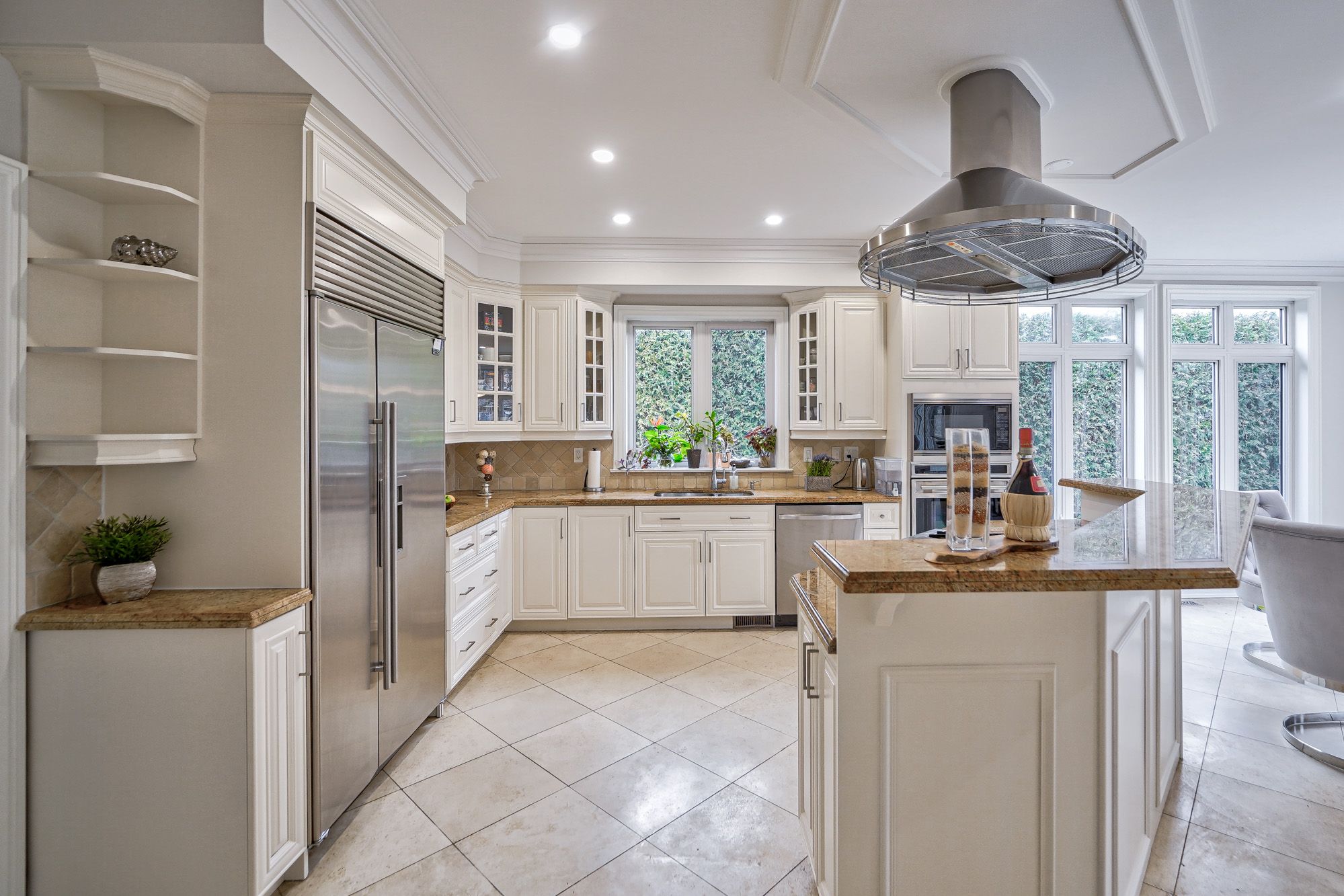• Chef's kitchen features high-end appliances and a large south-facing window.