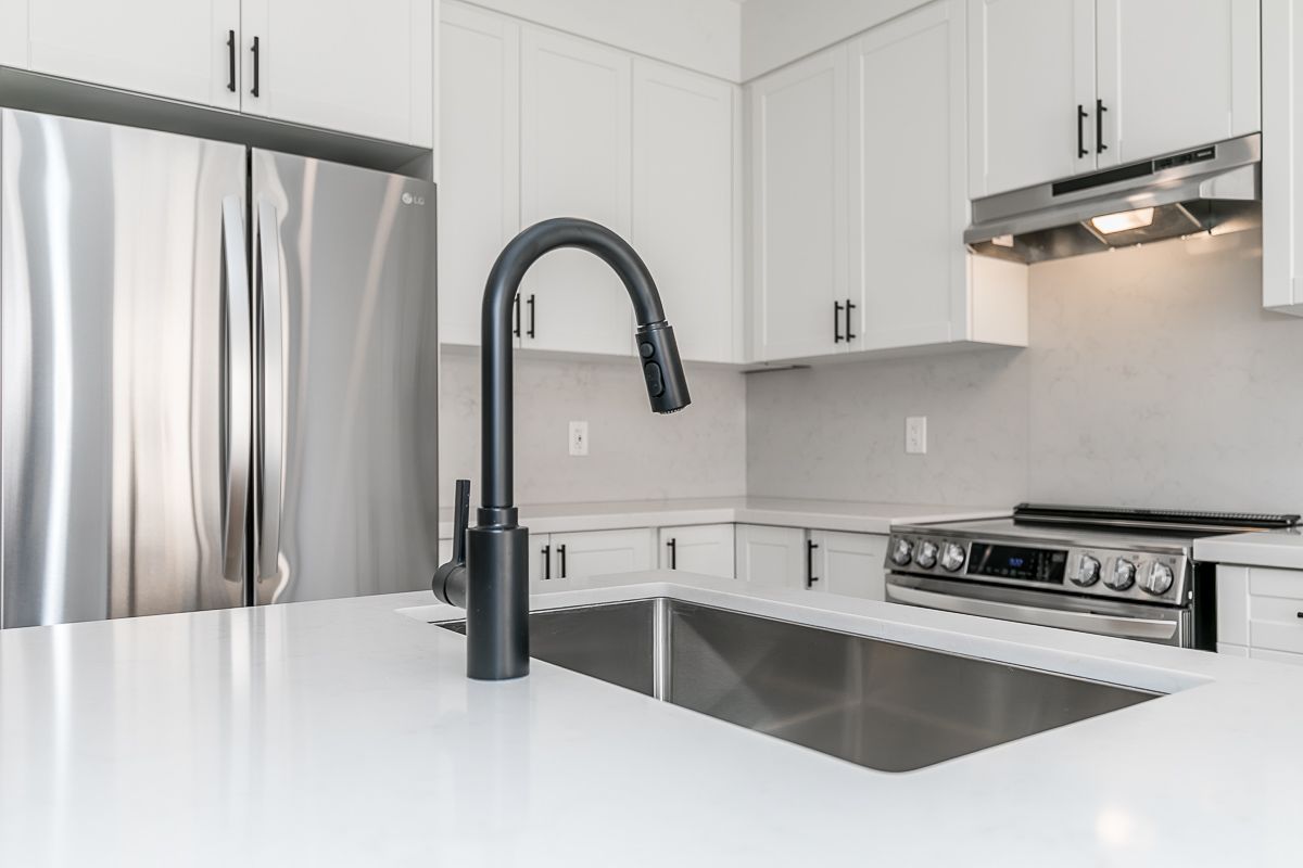 • Bright kitchen featuring white quartz countertops and upgraded stainless steel appliances.