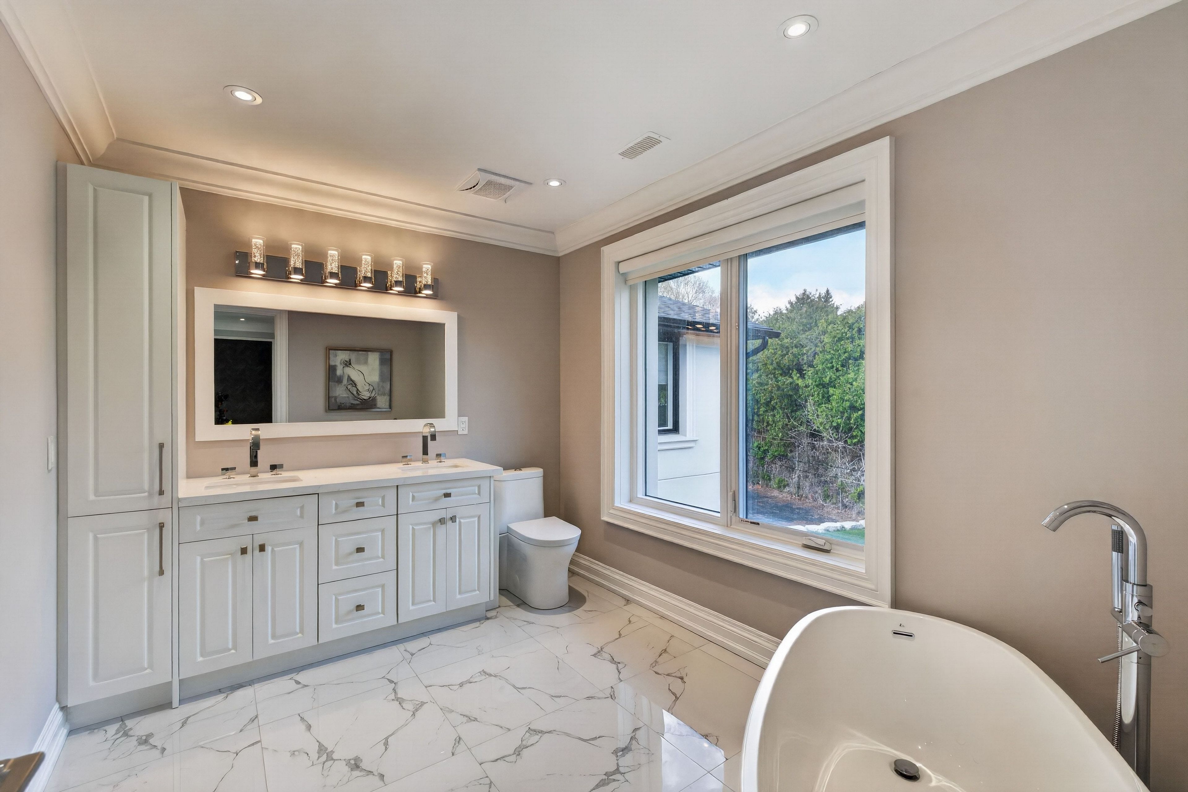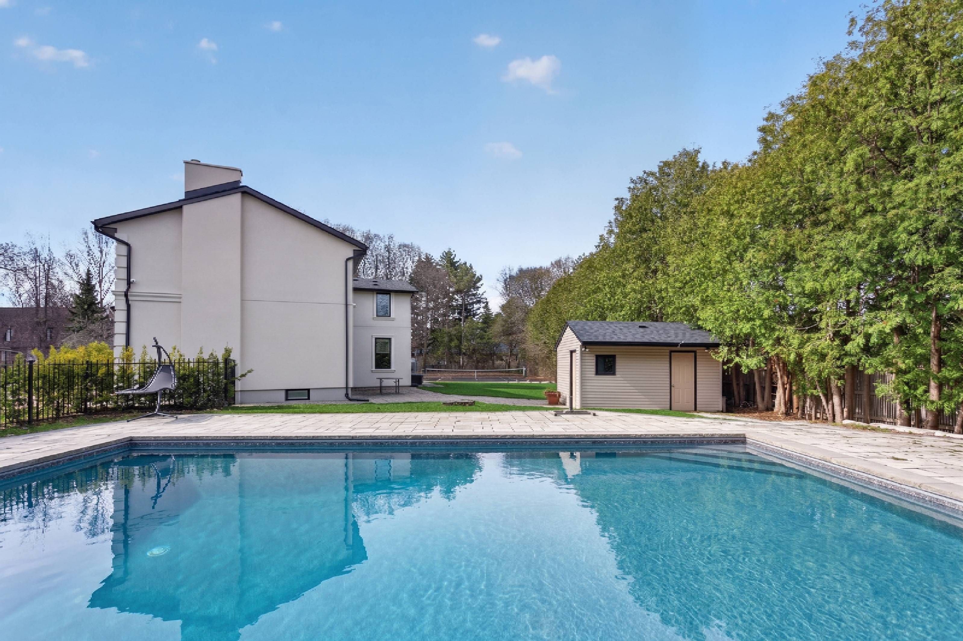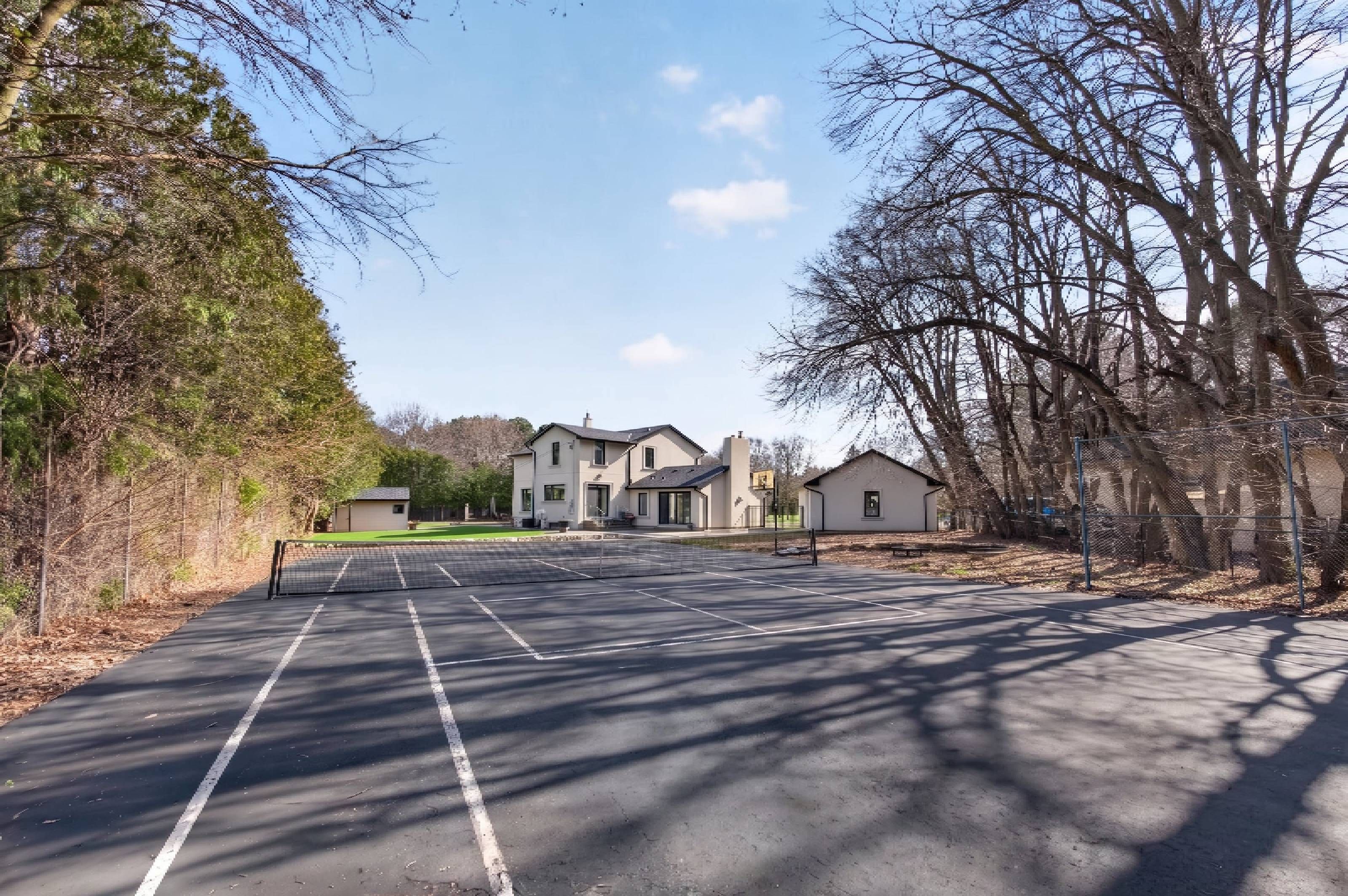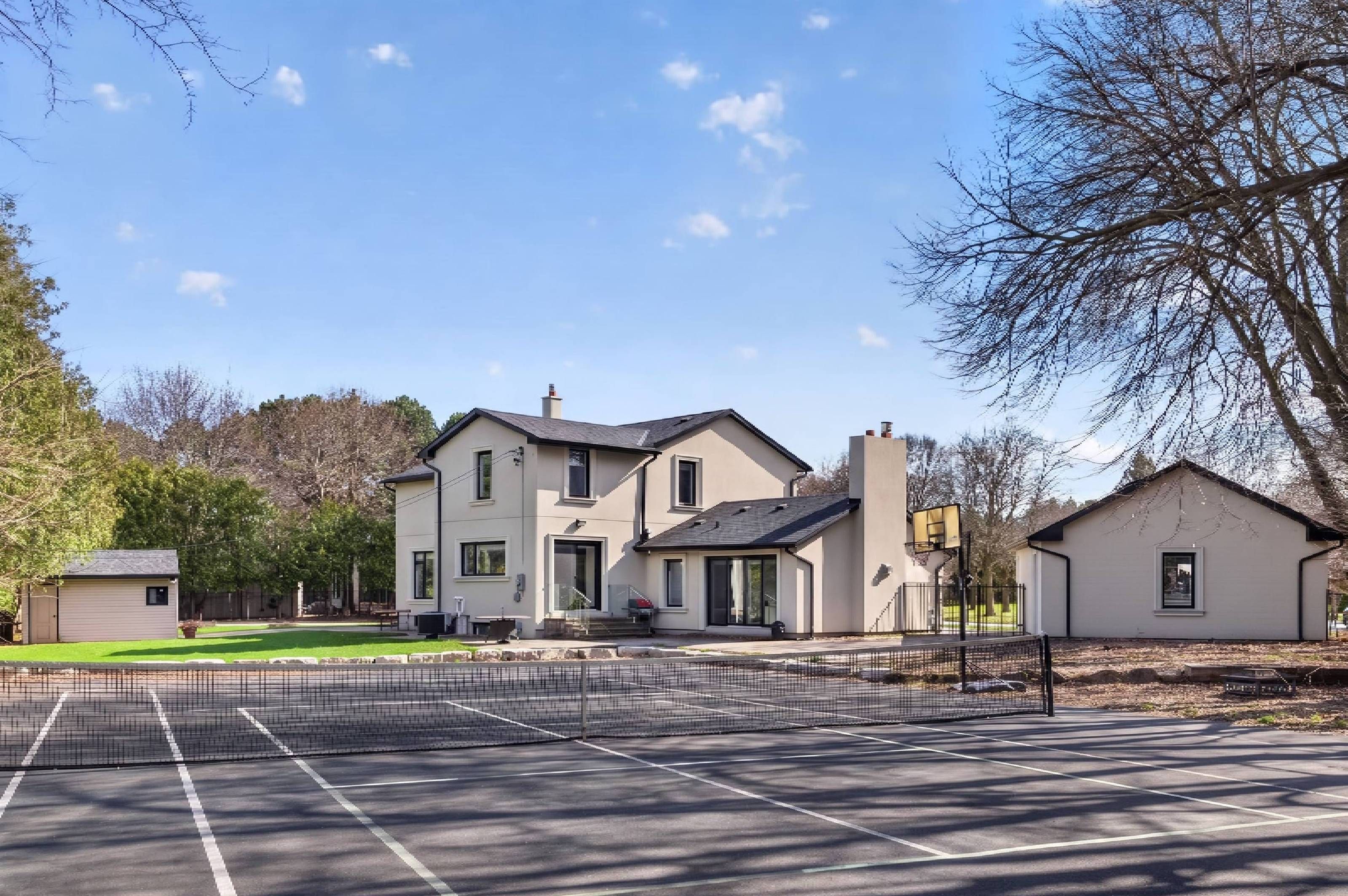 Nestled at the end of a quiet cul-de-sac in the highly sought-after bayview glen community, 3 rosea court offers exceptional privacy and estate-style living on an expansive lot of over 29,000 sq. Ft. (0. 67 acres) with a rare 251-ft-wide rear lot line. Surrounded by mature trees, this property presents a unique opportunity in a tightly held neighbourhood. This extensively updated 2-storey home is move-in ready and features 4 bedrooms on the upper level, 1 additional bedroom in the finished basement, and 6+1 bathrooms, including a pool cabana with kitchen and bath. The main kitchen is equipped with custom cabinetry, quartz countertops, and premium sub-zero, wolf, and bosch appliances, and opens to well-appointed living and dining areas. Additional features include hardwood flooring, updated windows (2021) with 3m security film, dual-zone hvac with hrv, two laundry rooms, security cameras, and updated roof, garage, and entry doors (2021). The backyard offers a private outdoor setting with a saltwater concrete pool (repainted 2023), full-size tennis court, in-ground sprinkler system, and ample space for outdoor enjoyment. Located among some of the area's most established estate homes and close to top-rated schools, parks, golf, and major amenities, this property offers a rare combination of lot size, privacy, and location in bayview glen.