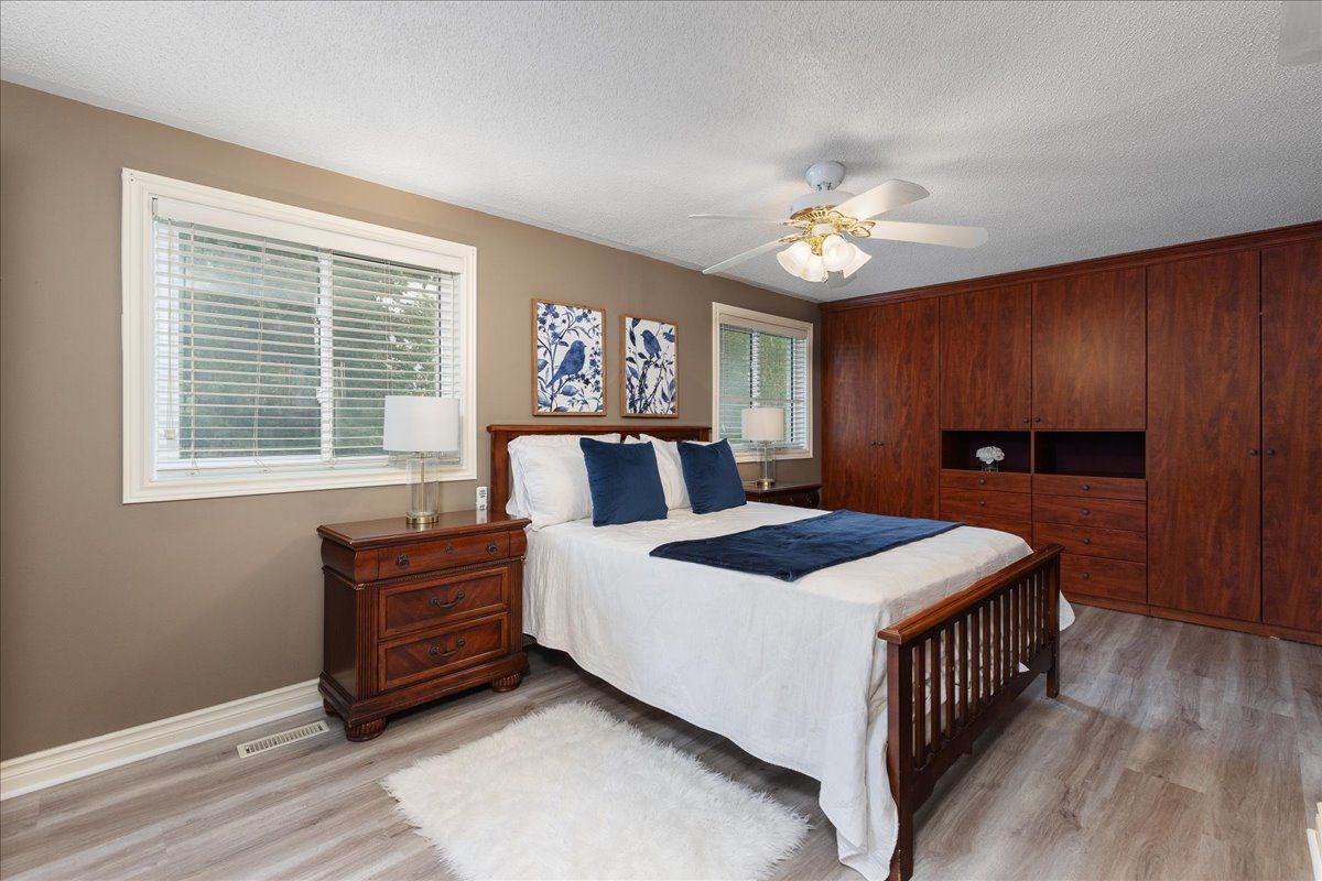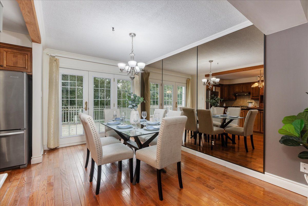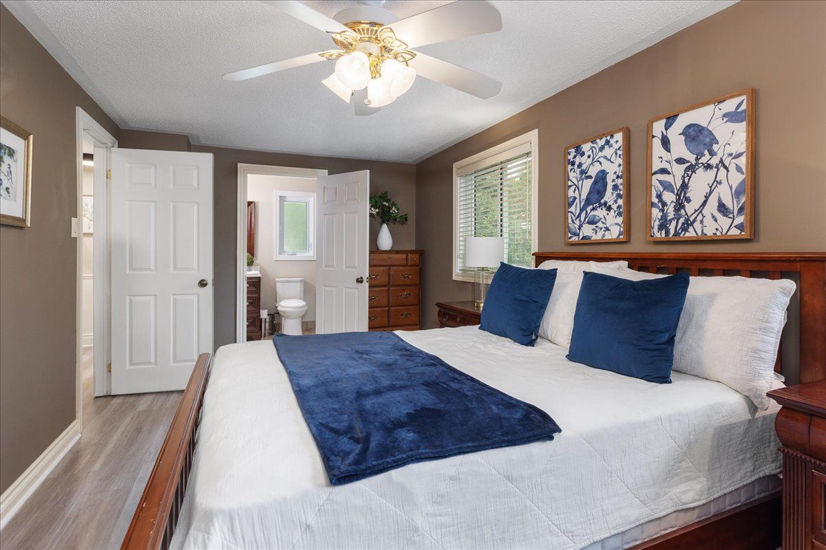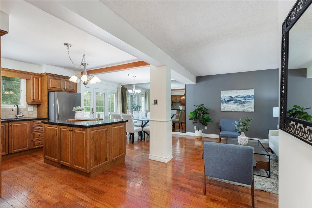 Tucked away at the end of one of mt. Albert's most sought-after and peaceful streets, this beautifully maintained 3-bedroom detached homeoffers the perfect blend of comfort, privacy, and family-friendly living. Located on a quiet dead-end court, this charming two-storey home boastsexceptional curb appeal with a stamped concrete driveway, durable metal roof, and an enclosed front porch with direct access to a double cargarage. Parking for up to 6 vehicles ensures plenty of space for family and quests. Step inside to a bright and open main floor featuringhardwood flooring throughout main level, crown moulding, and a cozy gas fireplace. The heart of the home is an open concept kitchen, completewith granite countertops, a large island, and multiple walkouts leading to a massive private deck-ideal for entertaining or relaxing while enjoyingviews of the ravine and forested trails behind. Upstairs, you'll find three generously sized bedrooms, including a primary suite with a built-inwardrobe and access to an updated bathroom. Both the upper level and the finished walk-out basement feature brand-new flooring, offering afresh and modern touch throughout. The finished lower level provides the perfect space for a family room, games area, or teenage retreat withdirect access to the backyard and the forest beyond. Whether the kids are exploring the trails or biking safely in the court, this location offerspeace of mind and a true connection to nature. Don't miss your chance to live on arguably the nicest and quietest street in mt. Albert. 3 royaloak is more than a house-it's the perfect place to call home.
