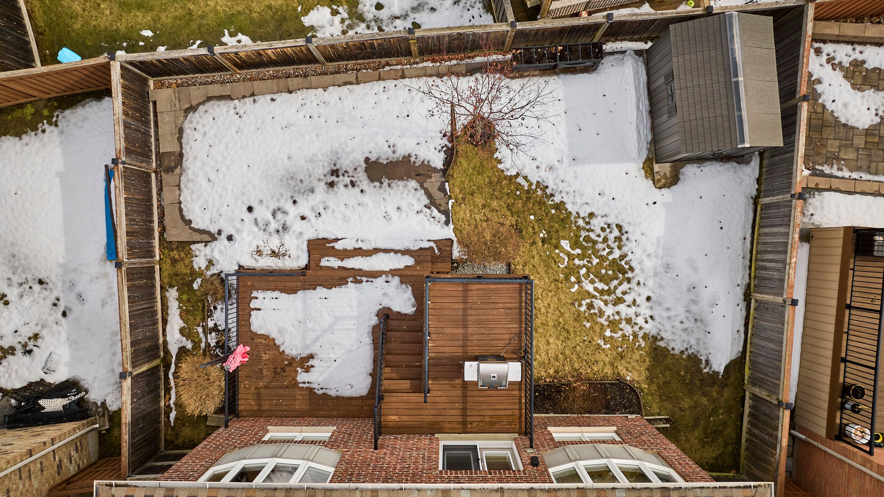 • Two-tiered deck overlooking a beautifully landscaped backyard.