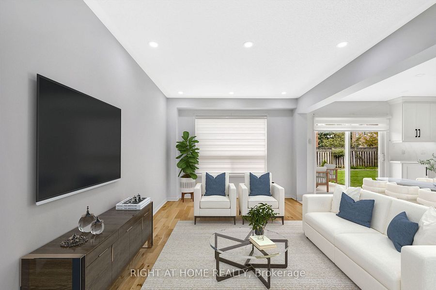 This 4+1 bedroom detached home on a cul-de-sac with 4 washrooms and with a separate entrance to finished basement apartment, has been owned and lovingly cared for by a single family since it was built. Double door entry to foyer. Bright & spacious. Renovations include a modern kitchen with quartz countertops and full quartz backsplash, and new furnace and air conditioning. Stainless steel appliances with breakfast area and walk out to concrete patio. Widened driveway, double car garage with inside entry. Concrete extension around home with large concrete patio at rear. Ground floor laundry room. Hardwood on main floor and laminate/large porcelain tiles showcase this carpet free home. Hardwood staircase. Large primary bedroom with large 4 piece ensuite. 3 additional good-sized bedrooms on 2nd floor. Separate greatroom on 2nd floor. Basement den large enough to be used as 5th bedroom. Updated finished basement has kitchenette and full 3 pc bath. Rental income potential. Open concept. Wired for surround sound. Updated mechanicals. Potlights. Rainmaker sprinkler system. Gdo. Blinds w/remote. Must be seen!