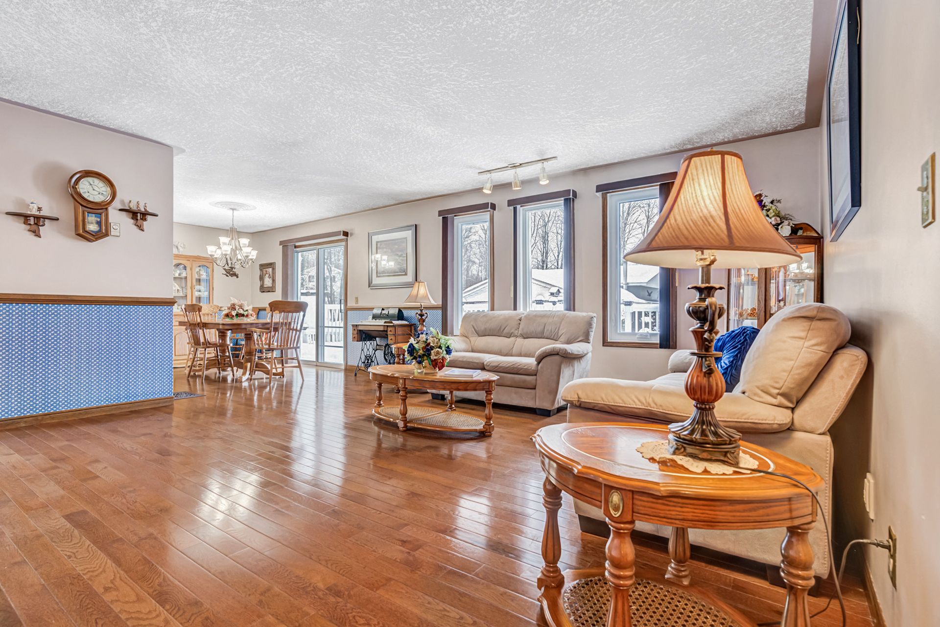 • Bright layout featuring hardwood floors and a finished walkout basement.