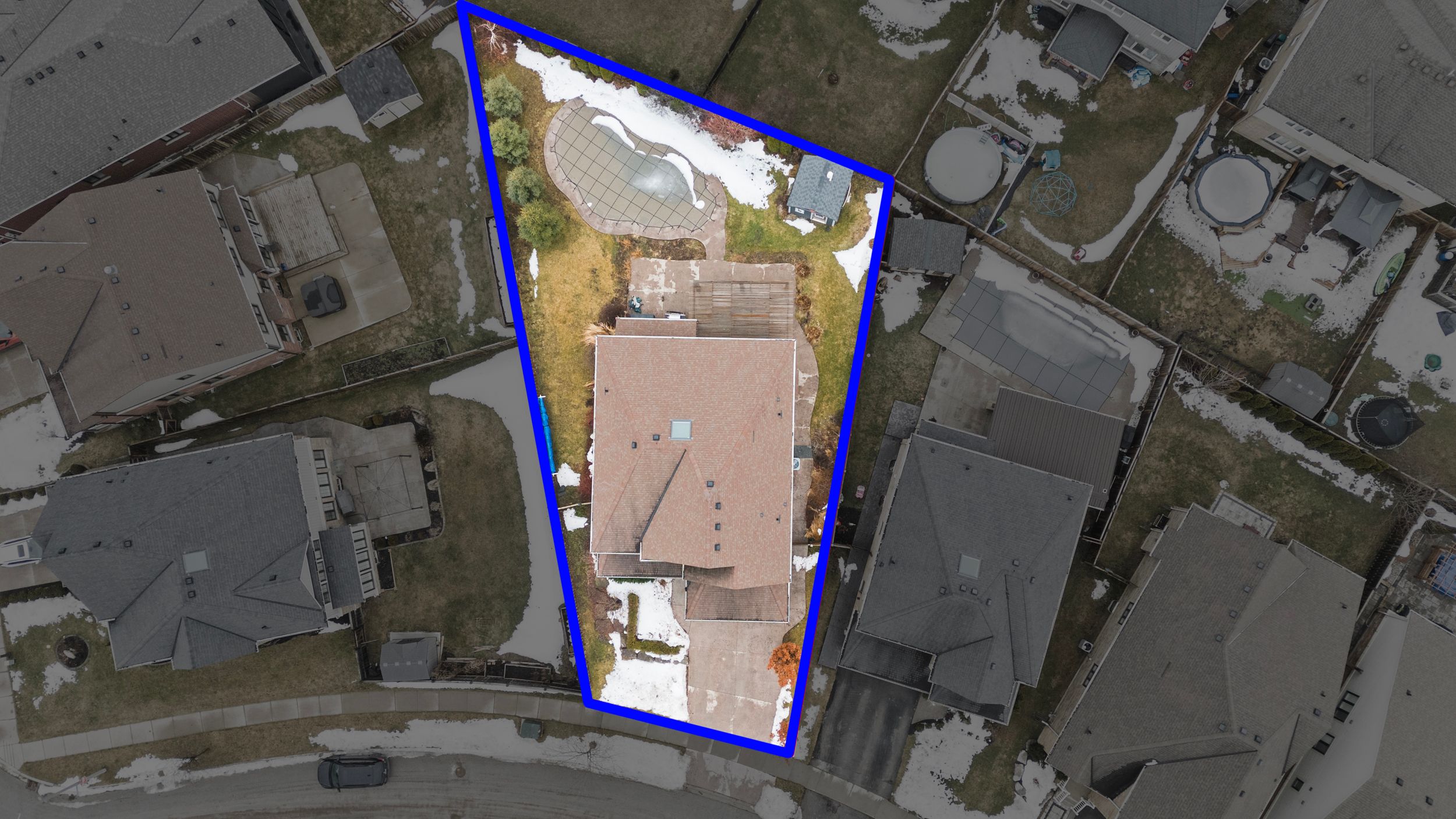 • Private backyard oasis with a heated in-ground pool and patio area.