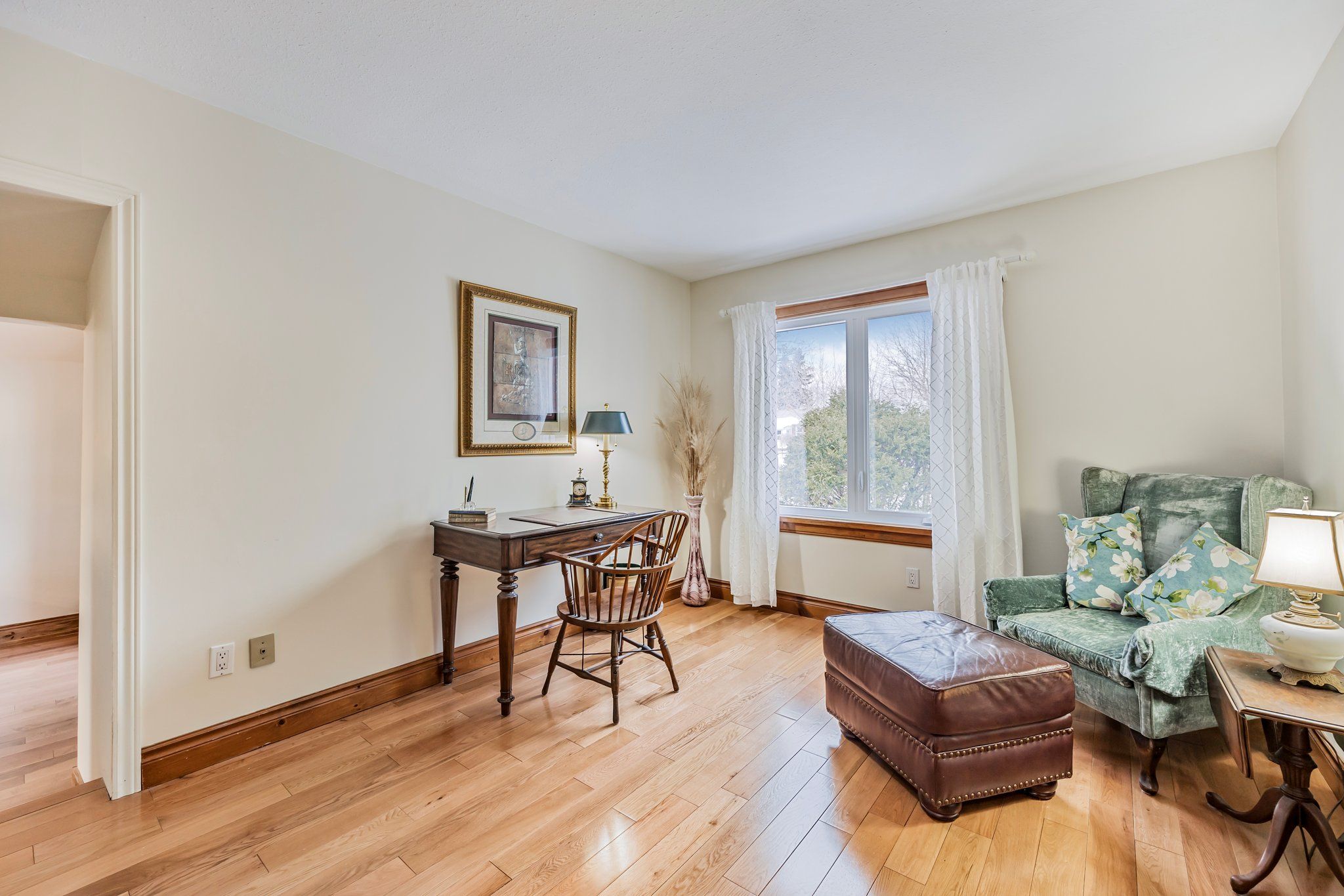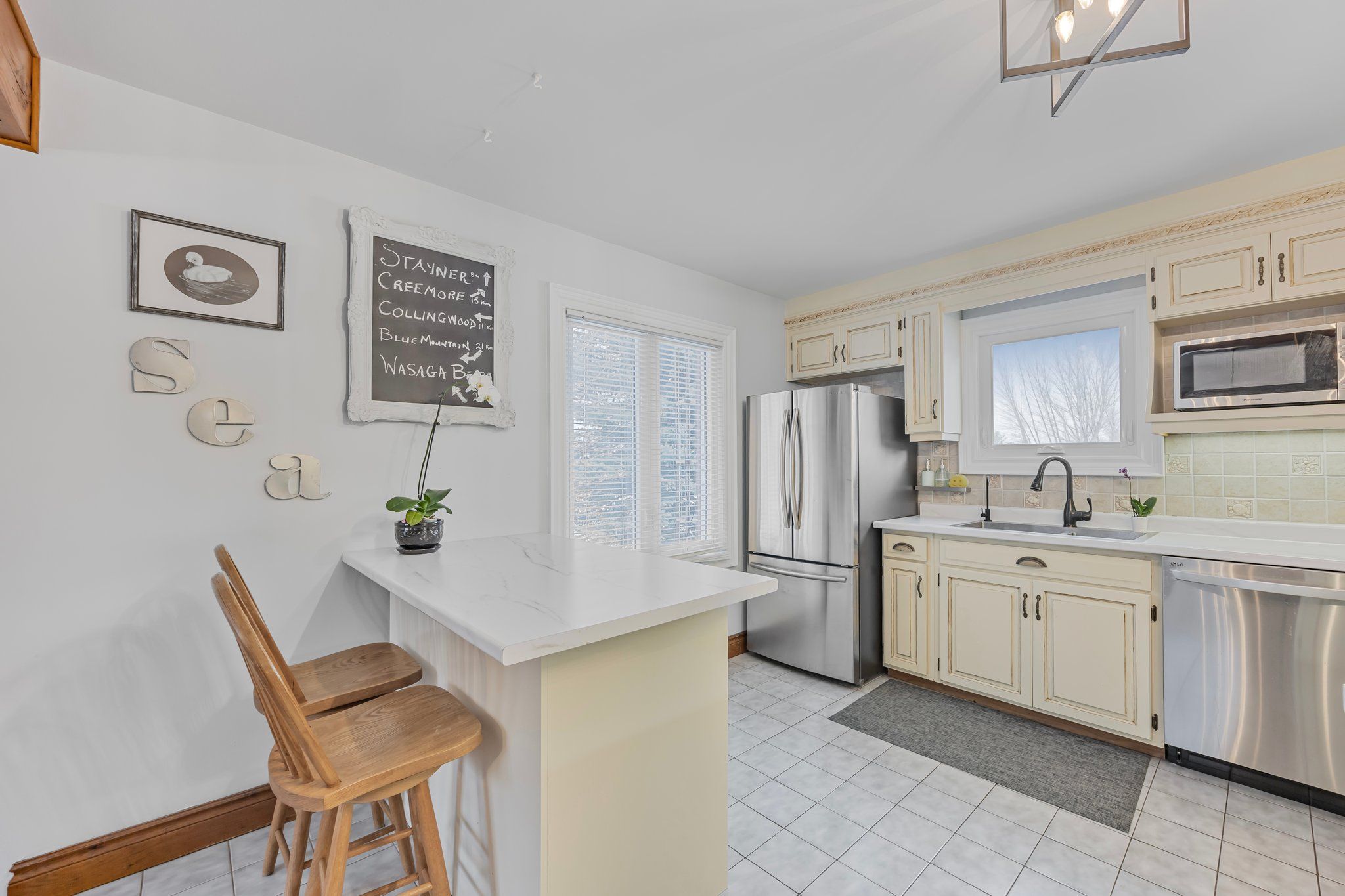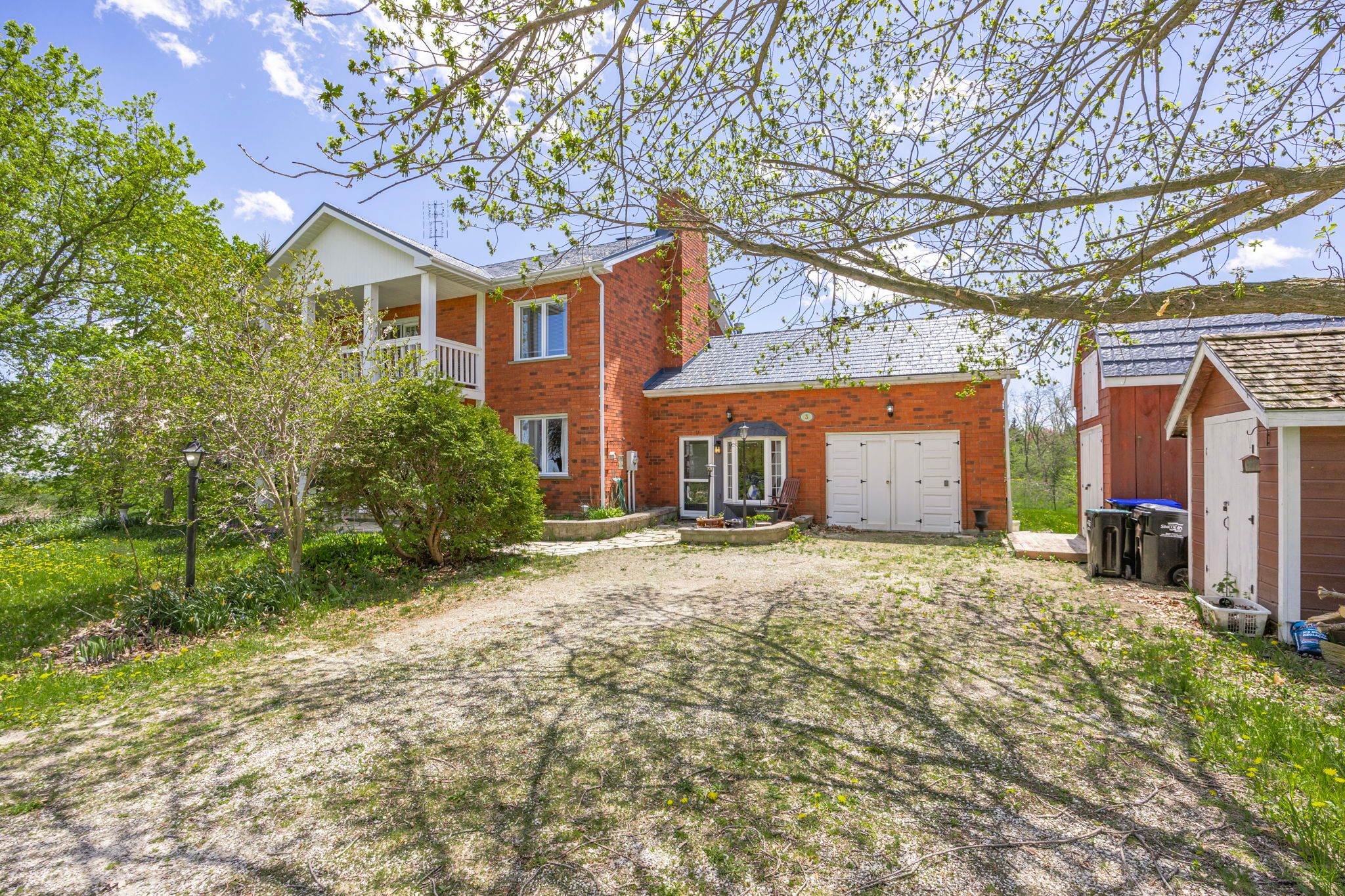 Affordable meets charming and spacious in clearview! In the serene hamlet of duntroon, this beautifully maintained two-storey home exudes warmth, and character. From the moment you step into the spacious main foyer, you're greeted by a dramatic sweeping staircase that leads to an impressive great room ~featuring soaring cathedral ceilings, gleaming pine floors, a cozy propane fireplace, and expansive windows that flood the space with natural light and frame breathtaking countryside views. On clear days, you can see all the way to the bay from the walkout balcony. Upstairs, the private primary suite offers a peaceful retreat with a semi-ensuite bath and refined finishes. The main floor showcases an open-concept kitchen and dining area, seamlessly connecting to a self-contained suite ~ ideal for guests or in-law accommodation. This suite includes a bedroom, a versatile den or office (easily converted into a second bedroom), a full 4-piece bathroom, its own kitchen, and a welcoming family room with a propane fireplace and dual private entrances. The finished lower level expands your living space with a flexible recreation area that combines bedroom and office zones, a 3-piece bathroom, and a bonus room perfect for a den, studio, or home office. You'll also find a well-equipped laundry/utility room, a cold room, and convenient under-stair storage. This home offers generous space and versatility for a growing family or multi-generational living. Upgrades include an interlocking steel roof, newer windows, central air conditioning. An attached garage doubles as a workshop. All this, just minutes from devils glen, private ski clubs, golf courses, scenic trails, and cross-country skiing. Whether you're seeking tranquility or adventure, this property delivers the lifestyle you deserve.