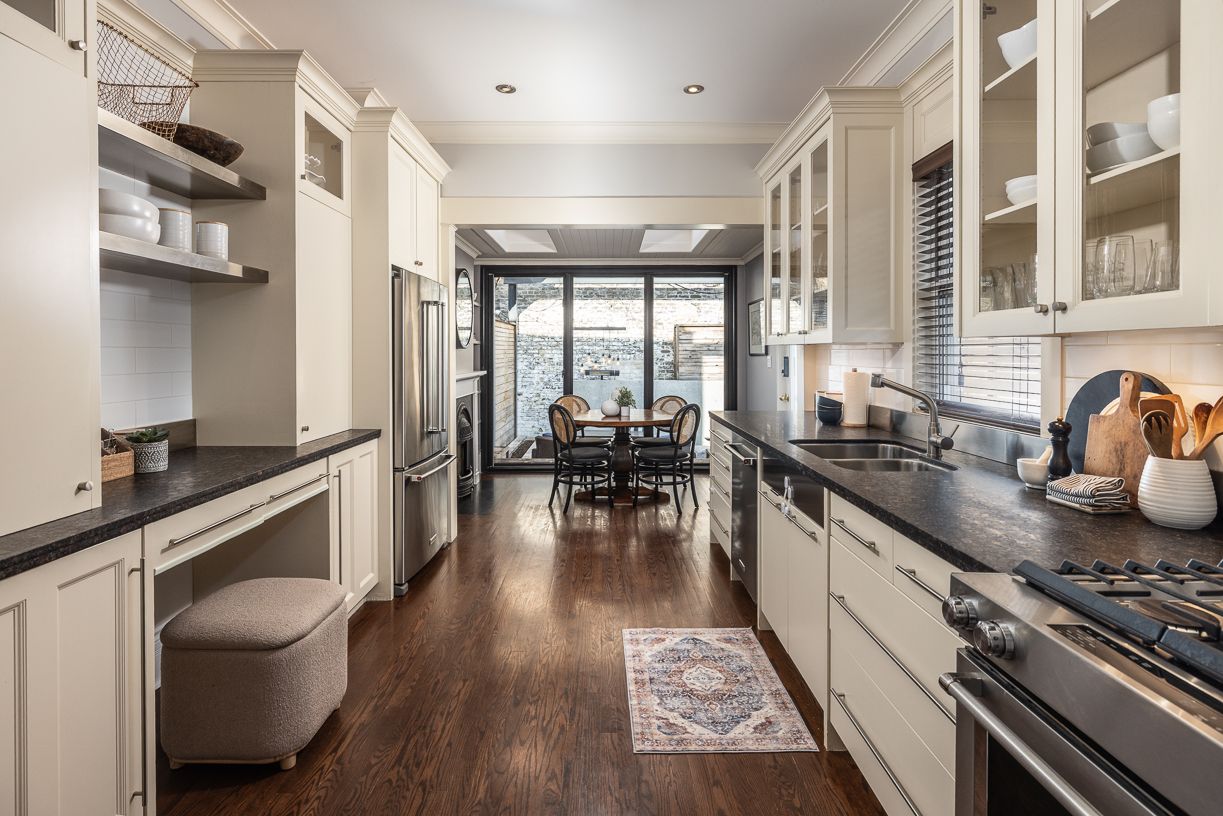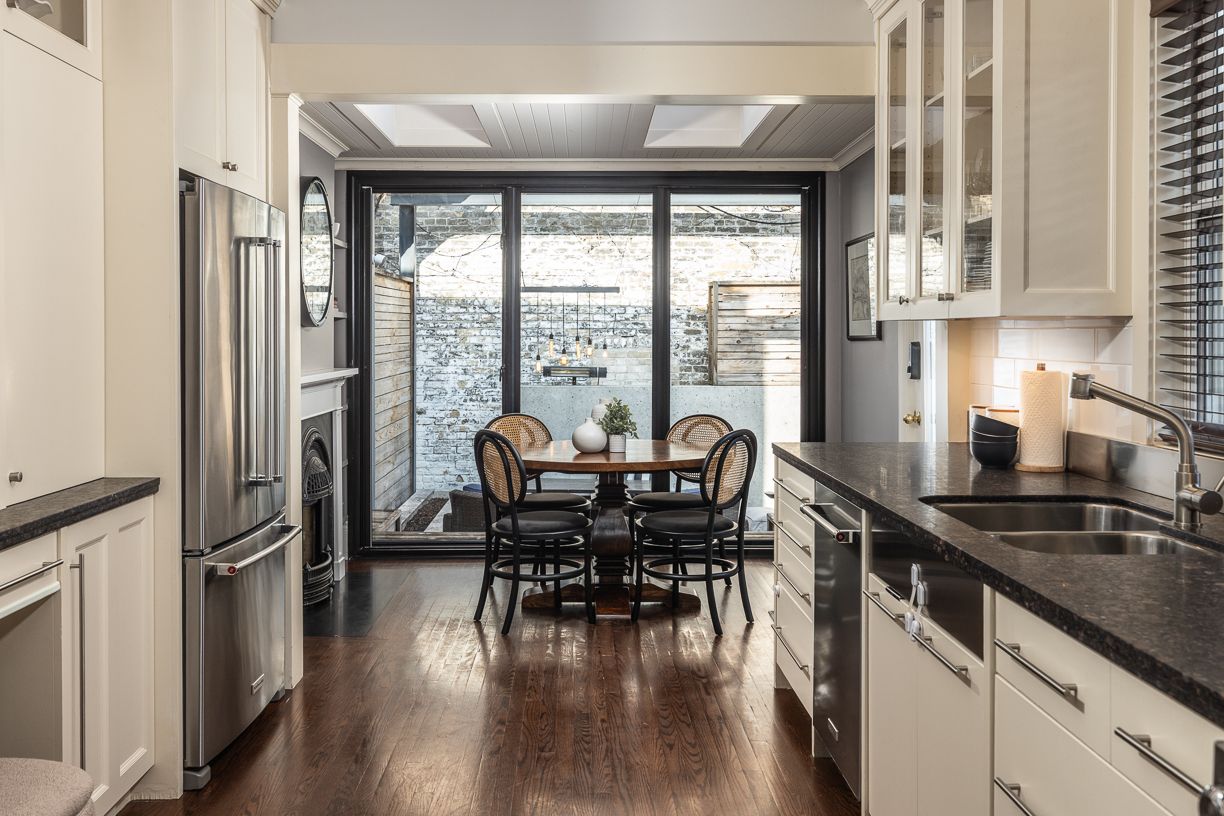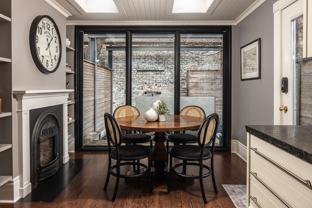 Summerhill coveted end-of-row townhome on a quiet cul-de-sac, featuring a very highly desirable façade. Extensively renovated while maintaining the home's original character. This home is located in the sought-after cottingham jr. Ps district. Some wonderful features include custom millwork in all three bedrooms and kitchenaid stainless steel appliances in the kitchen. Enjoy the covered front porch, perfect for reading or morning coffee. The main floor extension offers a cozy family room or possible breakfast area off the kitchen, complete with an electric fireplace, floor-to-ceiling sliding glass doors, and windows that look out onto a backyard with stunning exposed brick feature wall. Spacious dining room, ideal for entertaining and hosting holidays. The second bedroom features a skylight and a large double closet. Functional laundry room with new bosch washer and dryer (2025). Situated on an incredibly bright, west-facing lot. The fully landscaped, low-maintenance front and backyard feature decking, built-in planters, and stylish steel accent beams. Enjoy the benefits of end-of-row living with the feel of a semi-detached home, complete with unobstructed south and west light and direct backyard access. Thoughtfully designed exterior side storage accommodates garbage and recycling bins, bikes, and equipment, complemented by a backyard shed offering additional storage, with a tesla ev charger conveniently installed at the rear. Just a 3-minute walk to summerhill subway station and the area's shops and amenities, including scrivener square (flagship lcbo), terroni, the toronto lawn tennis club, b&r, and the york racquet club. Steps to the rosedale ravine system with scenic walking and hiking trails, and just minutes to david balfour park. A stylish and functional opportunity to own in one of toronto's most desirable neighbourhoods of rosedale / summerhill.