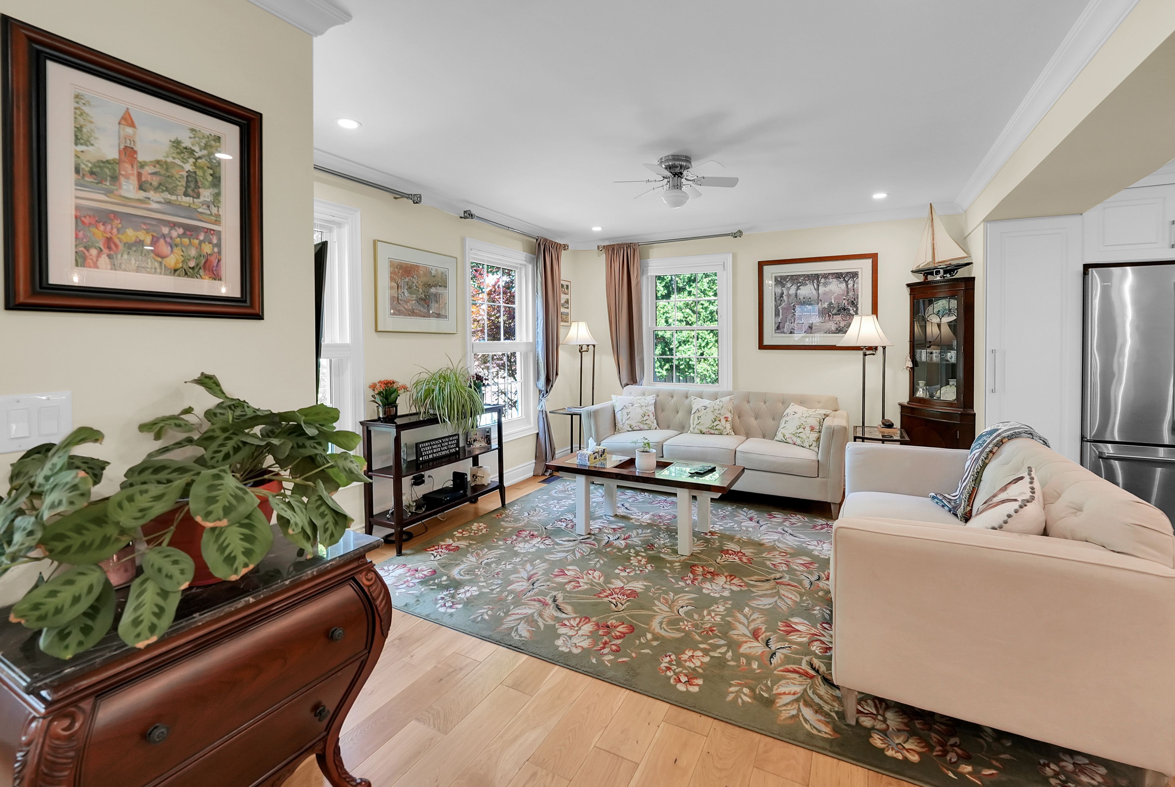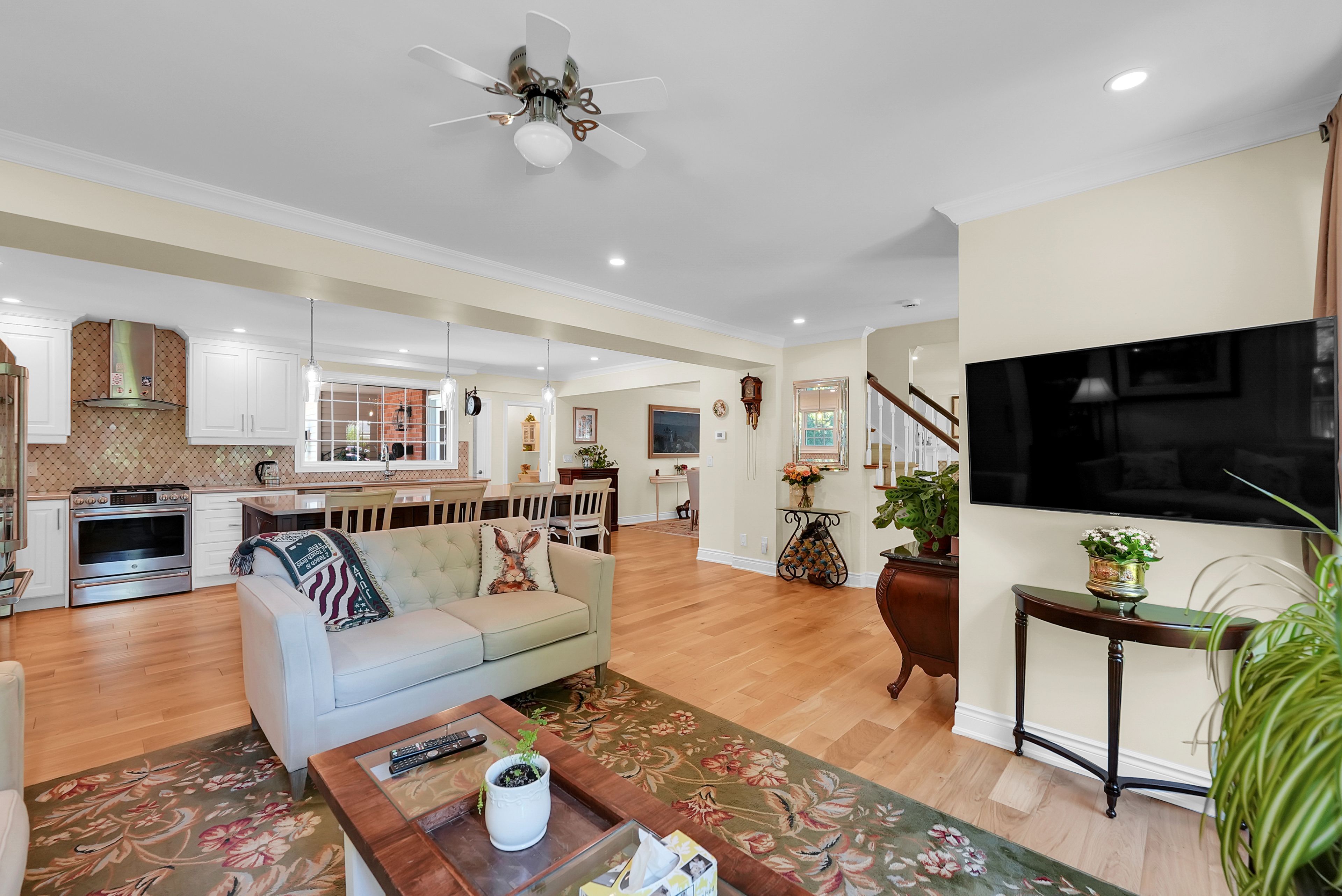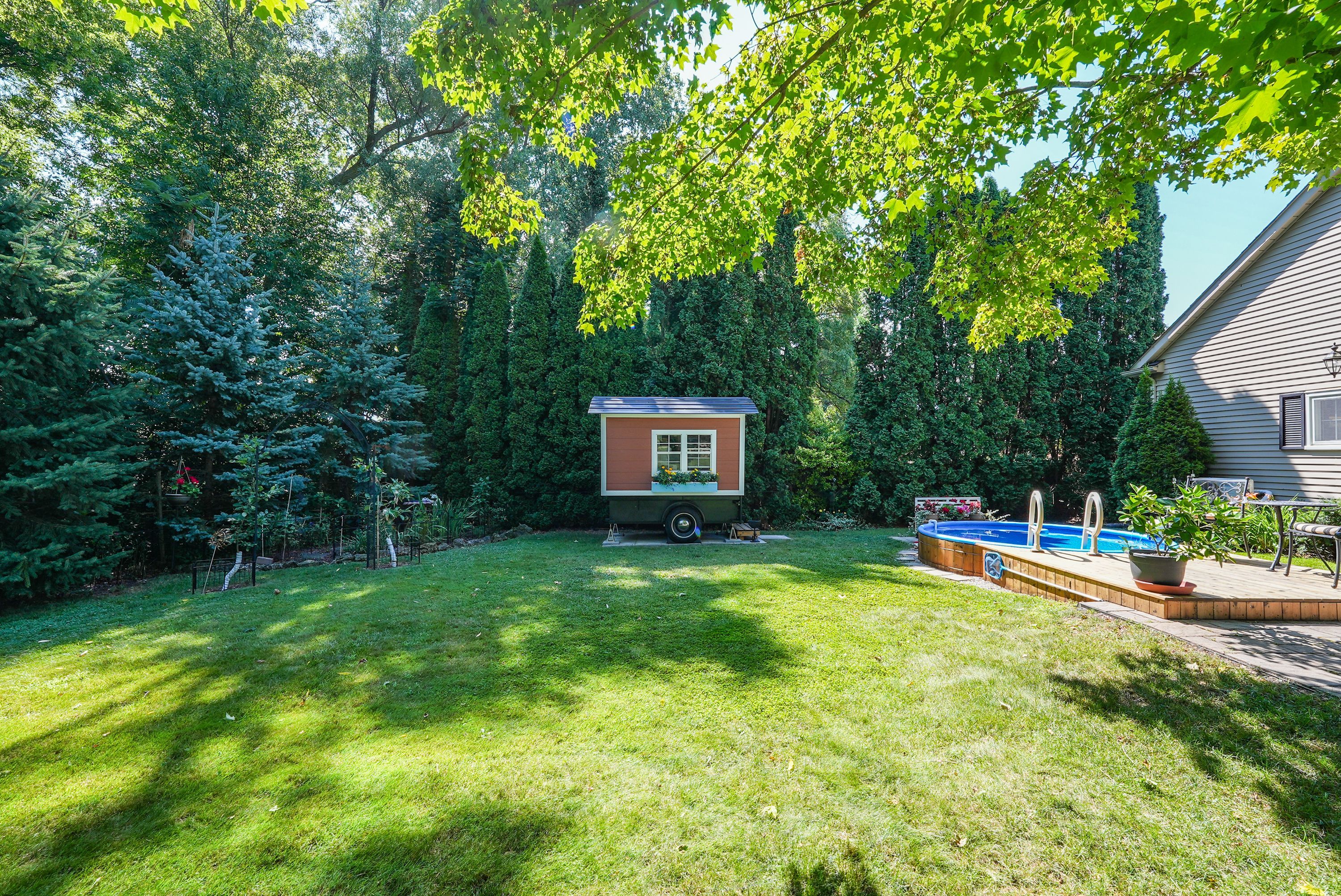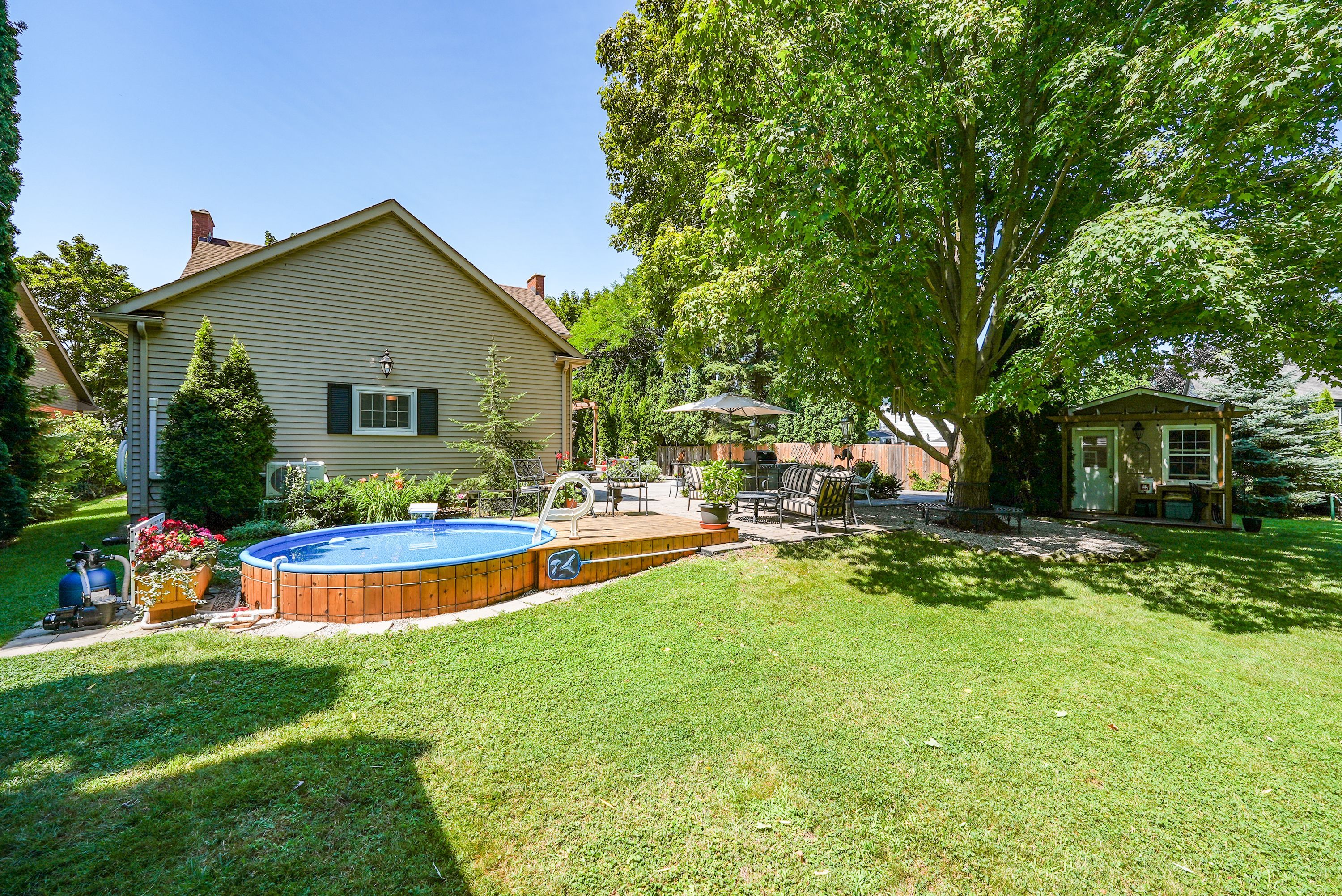 Fully renovated home on a quiet street. The entire property was completely updated in 2018. This residence seamlessly blends contemporary elegance with enduring charm and features a private backyard tailored for relaxation. The main floor was professionally and comprehensively redesigned to provide an expansive kitchen and family room. A separate dining room flows from the kitchen, with an additional living room at the front, complete with an open-hearth gas fireplace. This carefully considered layout delivers both open-concept and intimate spaces throughout the main floor. At the heart of the property is a modern kitchen anchored by a nine-foot island. It is appointed with premium countertops, stainless steel appliances, and generous cabinetry-an ideal setting for culinary pursuits. Ample natural light, provided by newer dual aspect windows in most rooms, accentuates the refined finishes and sophisticated interior design. The residence features spacious bedrooms, including a primary suite with a luxurious ensuite bathroom featuring contemporary fixtures. For added convenience, the laundry room has been relocated to the second floor. The finished basement presents an additional bedroom with an egress window and modern three-piece ensuite, along with a family room, den, and a substantial furnace room suitable for storage. Entering through the automatic gated driveway, you find a professionally landscaped, fully fenced private oasis, backing onto the heritage trail. There is multiple seating areas designed for both leisure and entertaining. Residents can enjoy the versatility of this garden, whether savoring morning coffee, hosting gatherings, or relaxing in the soaker pool. Additionally, the heated she-shed offers a retreat or supplemental storage as needed. The oversized, two-car garage is fully insulated with a separate, ductless hvac system. All renovations have been completed, providing an exceptional opportunity to acquire a move-in ready, turnkey property.