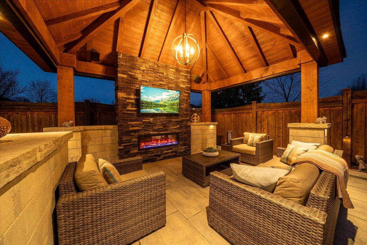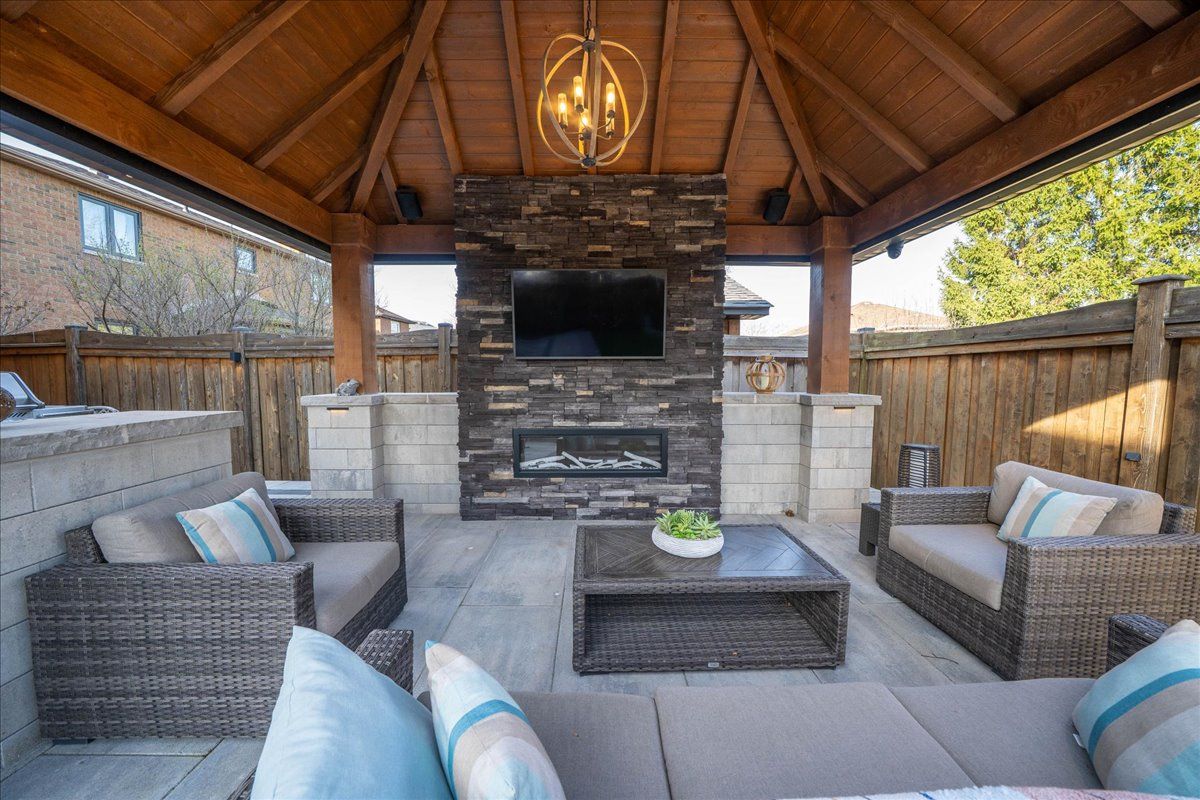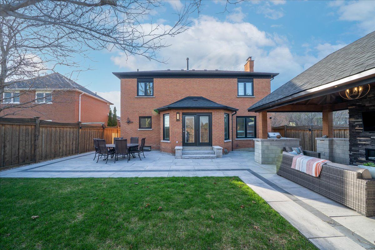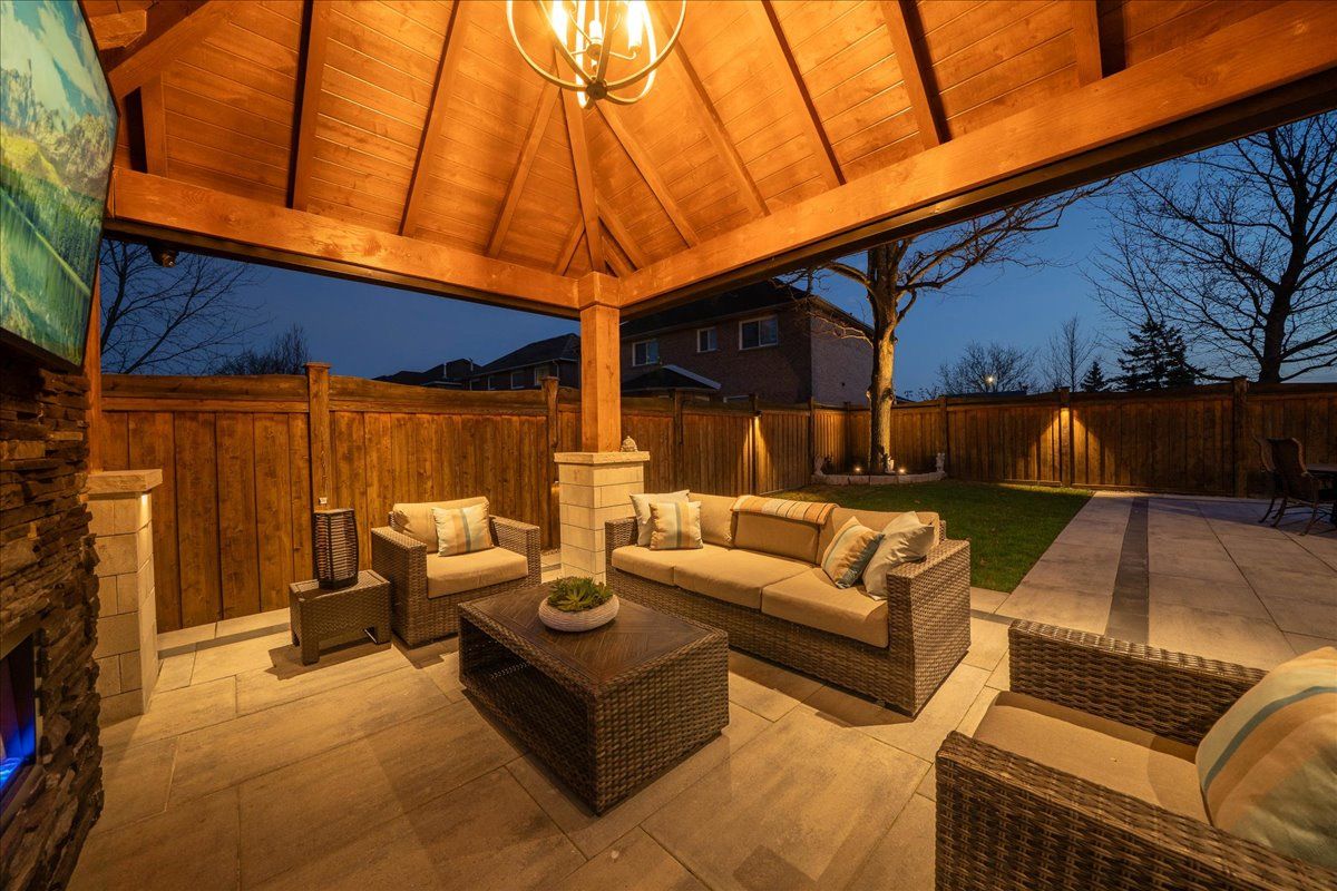 • Professionally finished backyard with custom pergola and landscape lighting.