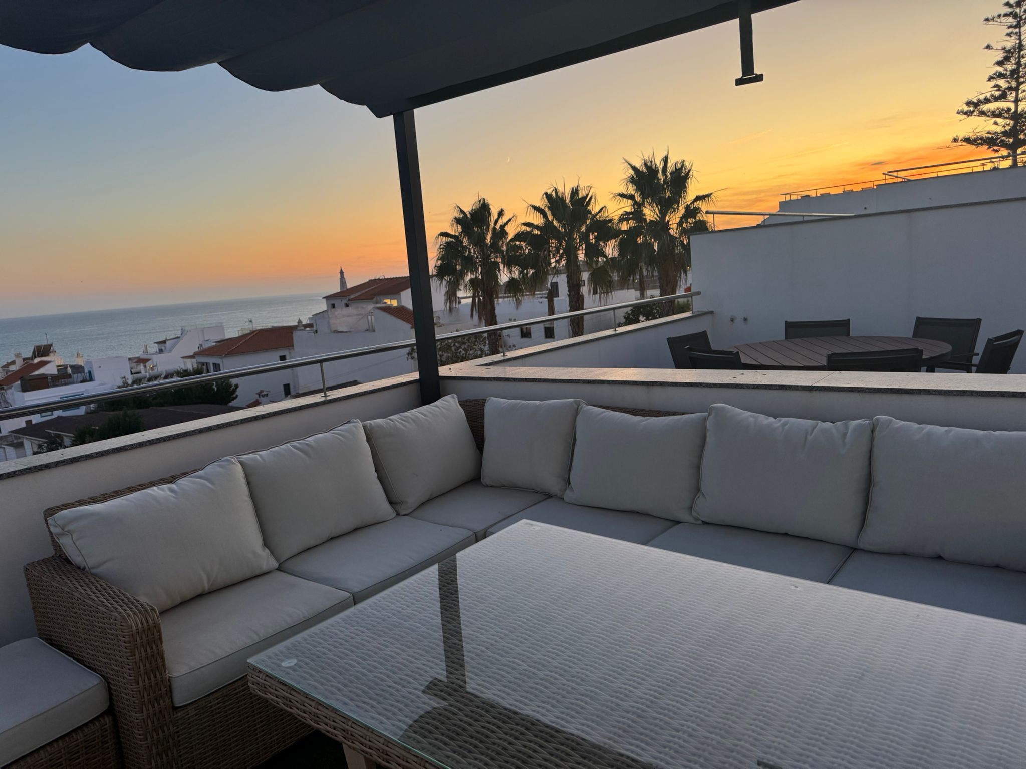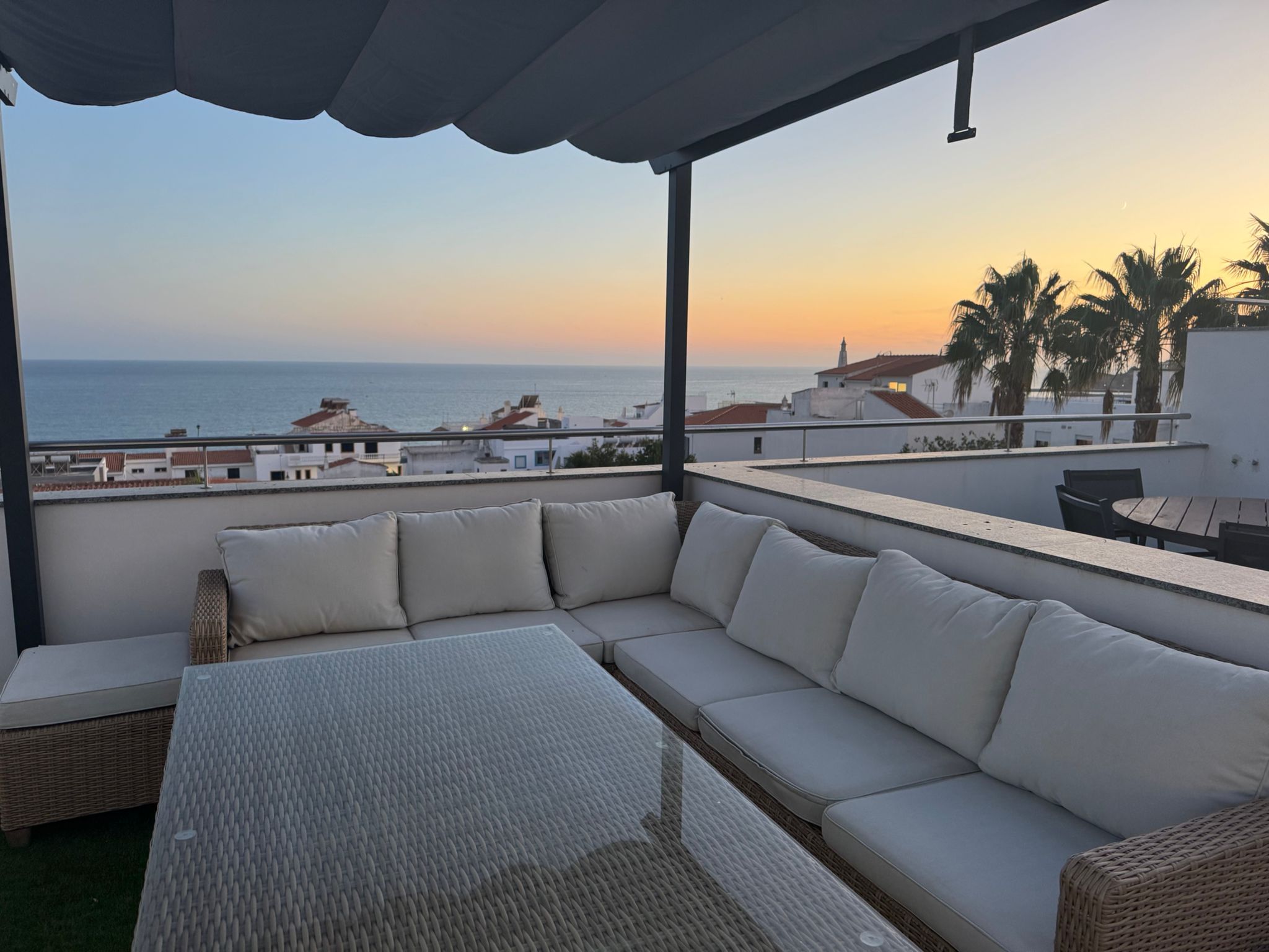 Luxury townhouse in albufeira: your new home awaits! Available starting september 1st for long-term annual rental. Discover this stunning luxury townhouse, perfectly situated for the ultimate blend of convenience and tranquility. A private two-car garage with direct access to your home means parking is never a worry, but with everything you need just a short walk away, you might not even need a car! The property is centrally located near banks, supermarkets, and the beach. The ground floor features a modern, fully equipped kitchen and a spacious living room that opens onto a large south-facing terrace. This is the perfect spot to relax with incredible views of the pool, garden, and ocean. A guest restroom is also on this level for convenience. Upstairs, you'll find two beautiful en-suite bedrooms. The master bedroom, facing south, offers breathtaking panoramic ocean views right from your bed, along with a private balcony ideal for enjoying the scenery. Fall asleep to the gentle sound of waves and wake up to a stunning sunrise! The two large rooftop terraces are perfect for entertaining, with a bbq area and incredible views of the ocean, inatel beach, and the charming old town. Imagine watching the new year's fireworks from the comfort of your own home! The townhouse comes fully furnished, including three large smart tvs and high-speed fiber optic internet. Please note that all utilities (electricity, water, gas, and tv/internet) are the responsibility of the tenant.