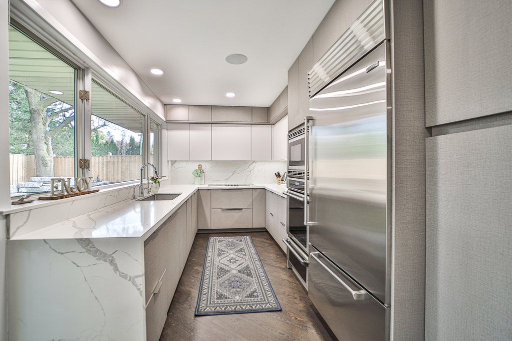 • Two renovated kitchens with high-end stainless appliances and quartz countertops.