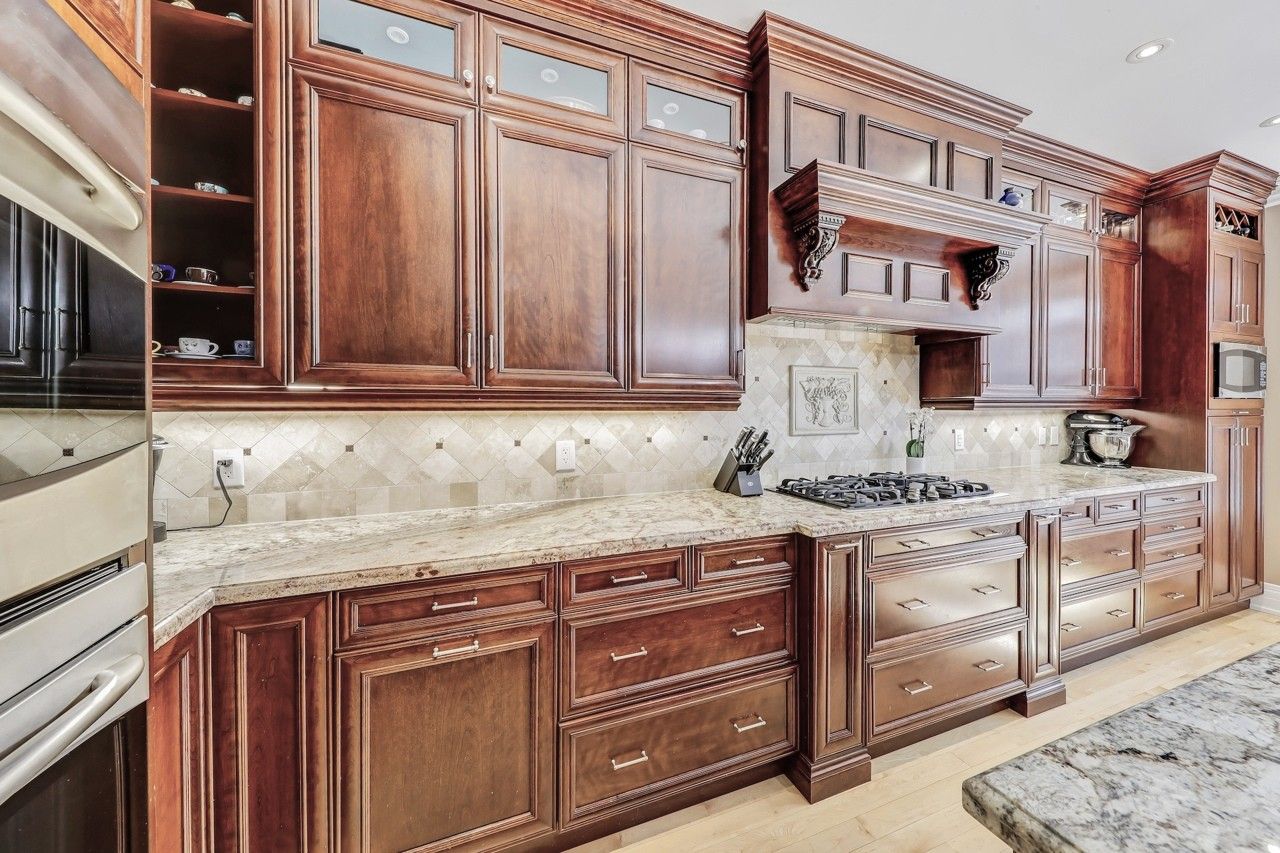 • Gourmet cherry wood kitchen with large island for casual dining.