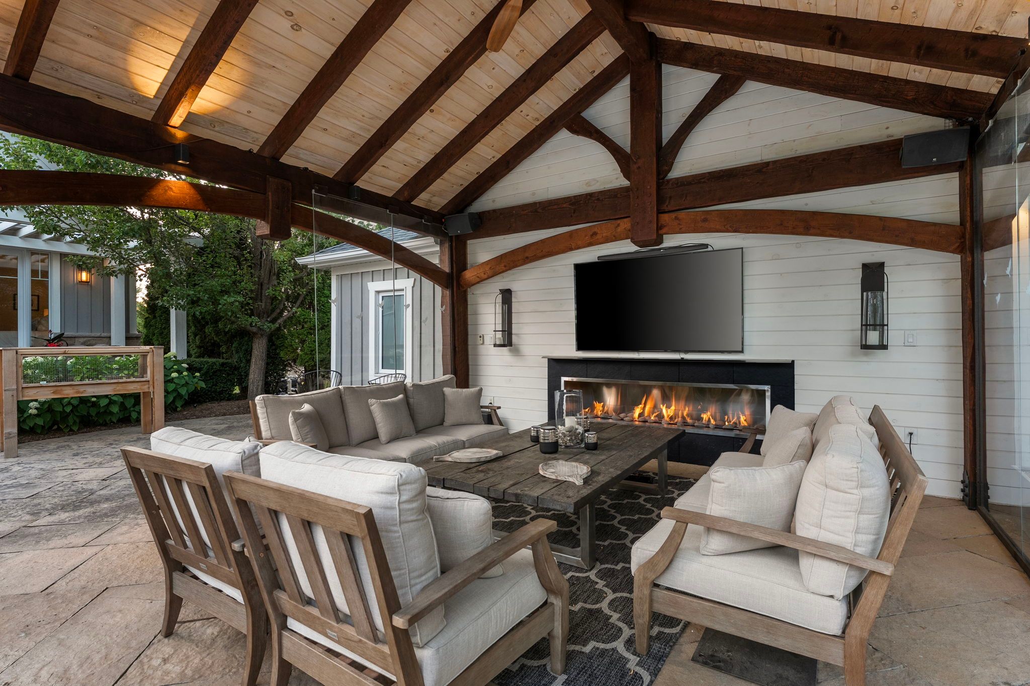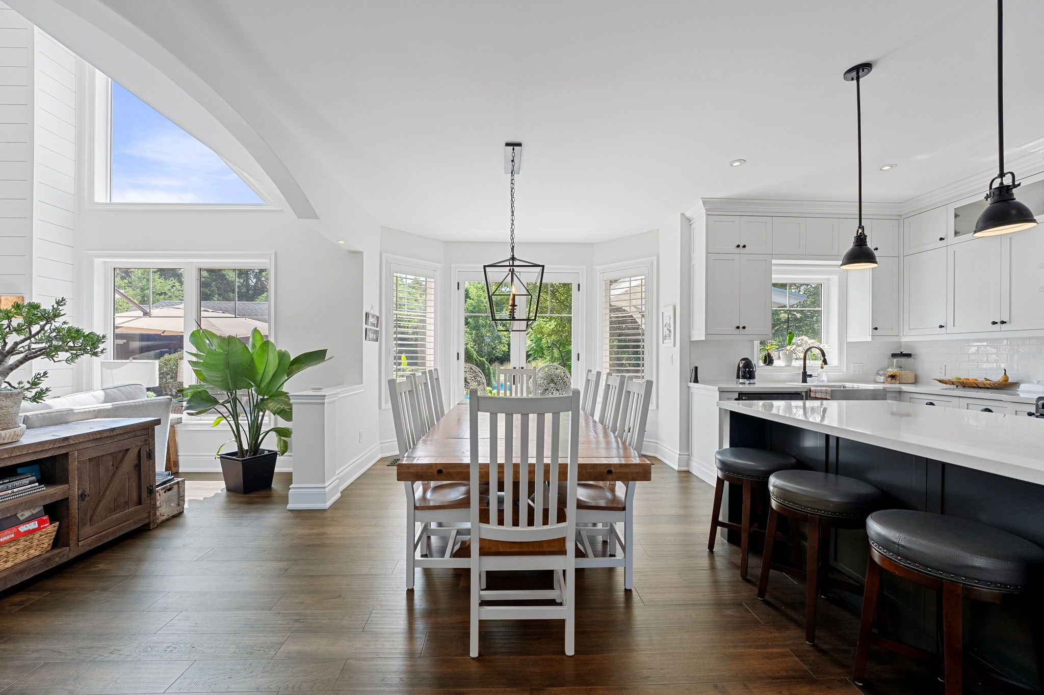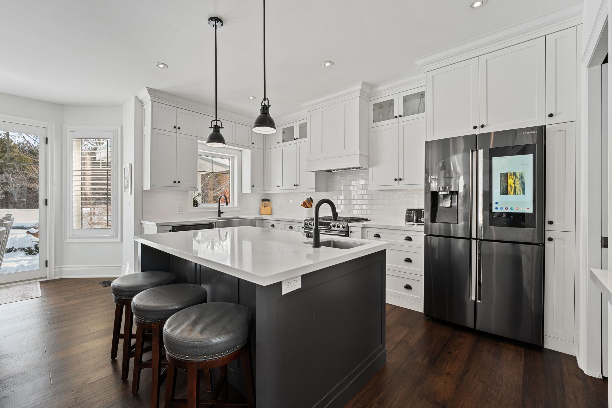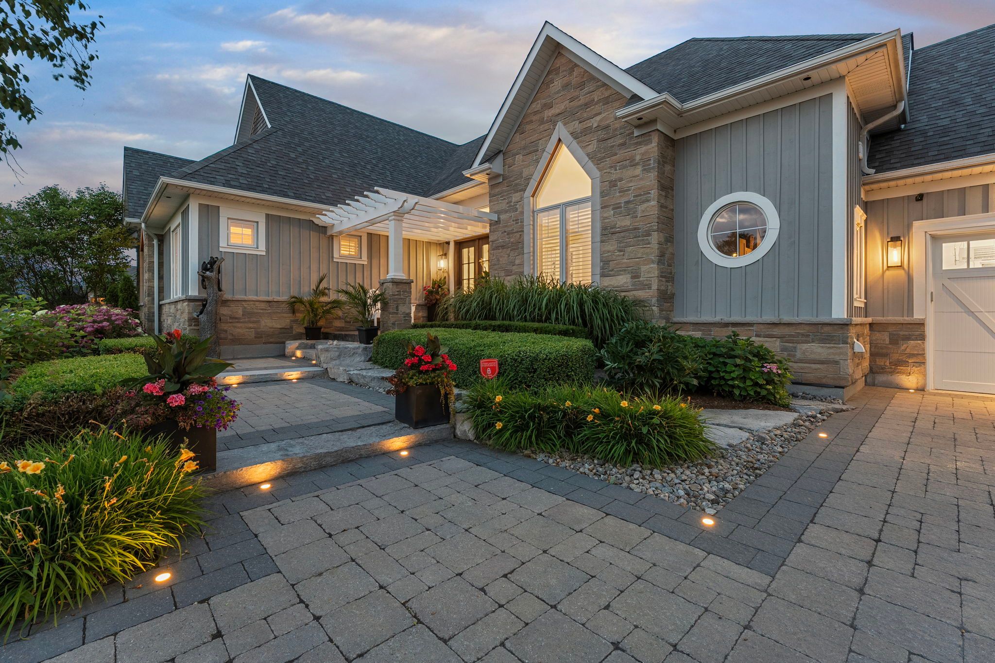A must see! Sensational resort-like property just minutes from lake simcoe, featuring a show-stopping outdoor oasis with inground saltwater pool & waterfall, timberframe cabana & changeroom, outdoor kitchen, extensive landscaping, irrigation & lighting, rear forested space with bridge, & an impressive 578 sqft workshop with heat & a/c. Enjoy all the bells and whistles with no expenses spared to bring your entertaining dreams to life. The interior is equally as impressive & has been renovated to the studs, including hand-scraped chestnut hardwood throughout, custom chef's kitchen with quartz counters, island, built-ins & farmhouse sink, formal dining room, & an oversized south-facing great room that overlooks the backyard & is complete with soaring 22ft vaulted ceilings & gas fireplace. Retreat to the blissfully peaceful primary bedroom that boasts a walk-out to the back deck, luxurious ensuite with glass shower, soaker tub, double vanity & heated floors, & a large walk-in closet with organizers. Two additional generous bedrooms with vaulted ceilings & large windows offer plenty of space for guests & family, plus a spa bath with honeycomb tile, heated floor & vanity with quartz counter. The main floor mud room provides everyday convenience with custom bench, cabinetry, countertops, laundry sink & access to heated double garage. The lower level is finished with the same hand-scraped chestnut flooring plus 2-inch dricore, & offers an additional 2615sqft of finished living space. The open-concept bar/lounge area boasts barnboard wine rack & a modern 3-sided glass fireplace feature, pool table & foosball (included), built-in speakers, newly renovated spa bath, guest room & office. Fully-fenced & gated 0. 81 acre lot with room for 10 vehicles! Plus, wolford court residents enjoy an exclusive private dock & beach for year-round enjoyment. Feature sheet for full list of upgrades & inclusions available. Your luxury compound awaits!