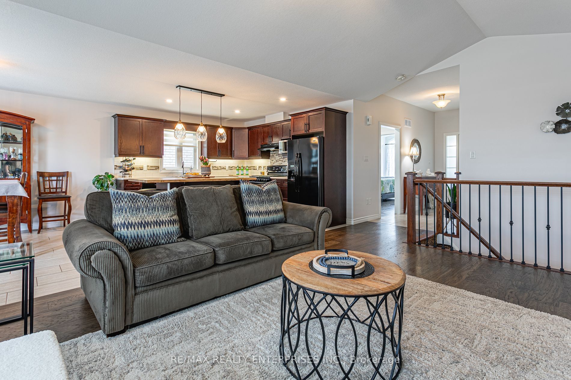 Welcome home to this lovely detached raised bungalow in picturesque family friendly neighbourhood crescent! Many upgrades including energy star certified & pot lights! Stunning, recently renovated 3 bed, 3 bath home with gorgeous great rm with vaulted ceiling... Cozy up in front of the fireplace! Make gourmet dinners in the beautiful & spacious stained wood kitchen with large island! Walk out from the breakfast area to the covered balcony with gas bbq hookup, steps lead down to your private landscaped backyard, no homes behind! The primary bedroom boasts a luxurious 5pc ensuite with jacuzzi tub & separate shower! Recently painted, new high end hardwood floors, new quartz countertops & sconces in bathrooms. Recently renovated basement is full & large, perfect in-law suite, with a large recreation rm, spacious bedroom & 3pc bathrm and walk out to deck! ***bright walk out lower level to backyard*** great large 2 car garage with high ceilings, room for workbench, with entry to main flr. Laundry room! Perfectly located minutes to hwy 401/woodstock/london/403, parks, groceries, schools & much more!