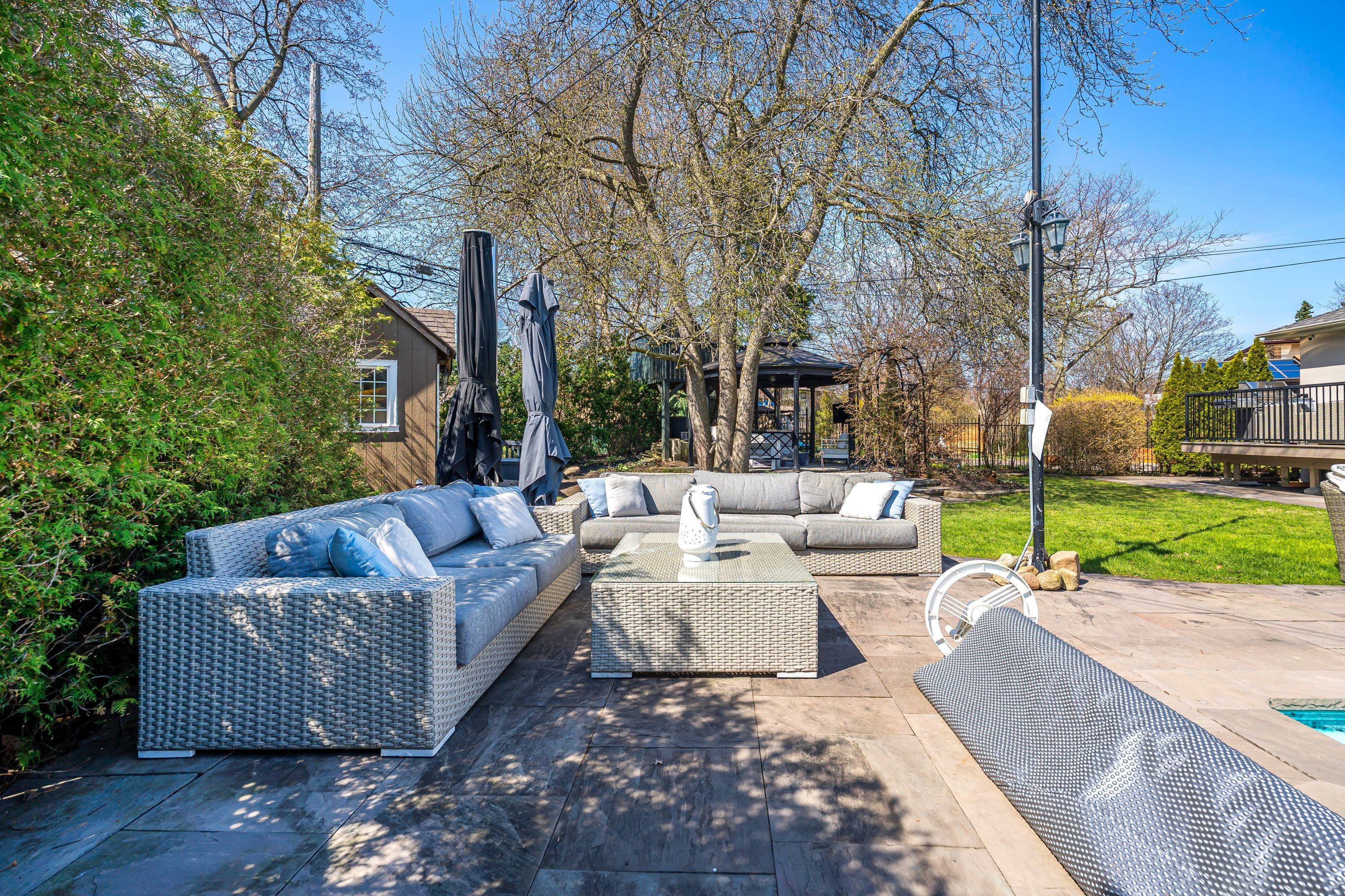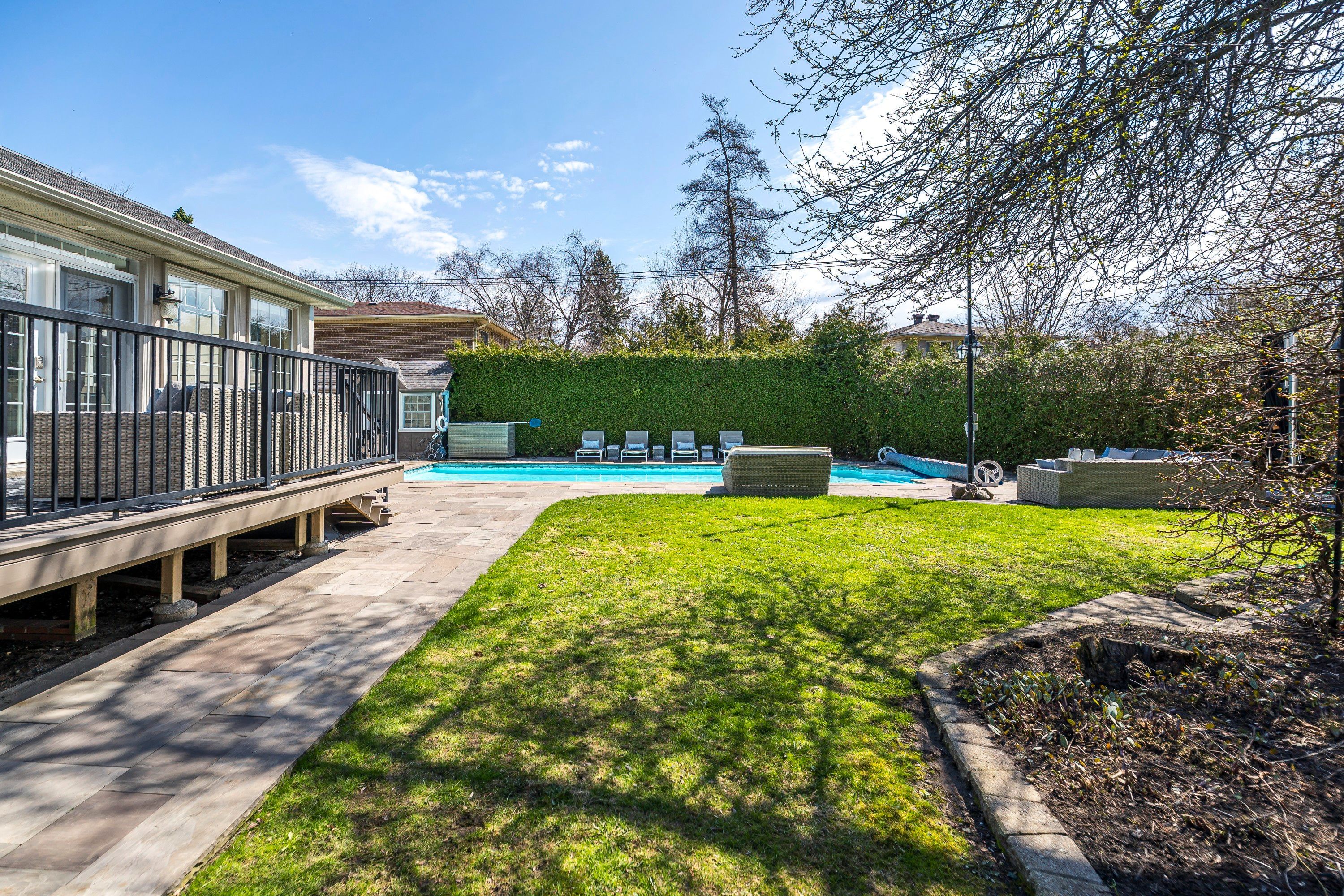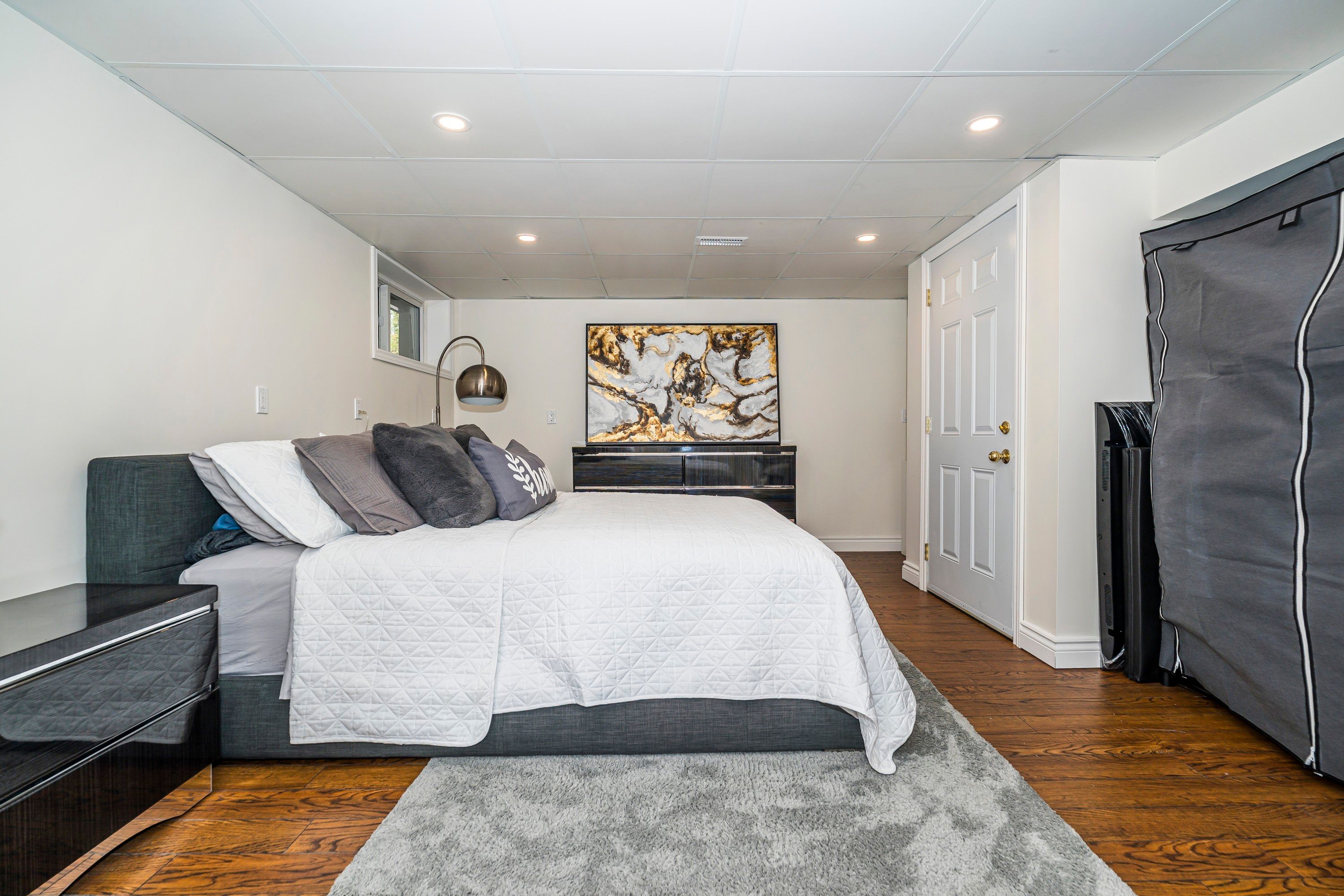Welcome to this beautiful 4+1 bedroom, 3-bathroom side-split home, offering an incredible 3,129 sq ft of total living space, comfort, and versatility in a prime location on a quiet cul-de-sac. With a double-car & deep garage, large interlock driveway & walkway and fantastic curb appeal, this property makes an immediate impression. Step inside to a bright, well lit entryway w/ direct garage access and an airy open-concept layout. Natural light pours in through numerous skylights and walls of windows, highlighting the rich hardwood floors throughout. The main level offers an inviting living area with a picture-perfect bay window, flowing seamlessly into the oversized kitchen, complete with upgraded stainless steel appliances, full size integrated wine fridge, coffee bar, granite countertops, gas cooktop w/pop up exhaust fan, breakfast bar, and open sightlines to the family room. The family room is the heart of the home, featuring vaulted ceilings with pot lights, gas fireplace, and a walk-out to the backyard deck & pool. Perfect for indoor-outdoor living and entertaining. A unique bonus: a main floor bedroom or sitting room with a private 2-piece(ez 3 pc) bath and direct walk-out to the rear yard, ideal for guests, a home office, or multi-generational living. Upstairs, you'll find three generous bedrooms, including a serene primary retreat with bay window seating and views of the backyard. The lower level boasts high ceilings, pot lights, a spacious rec room/secondary living area, reimagined potential kitchen plus a finished 5th bedroom with a separate side entrance and loft (ez office) making it a great candidate for an in-law suite. Step outside to your private backyard retreat featuring a gorgeous 16x38 ft in-ground pool, expansive stone patio, gazebo w/firetable, kids treehouse, cabana/change room, 2 pool sheds and lush green space with rear inground sprinklers! Thoughtfully designed & newly upgraded throughout, this home is waiting for you to make it yours!