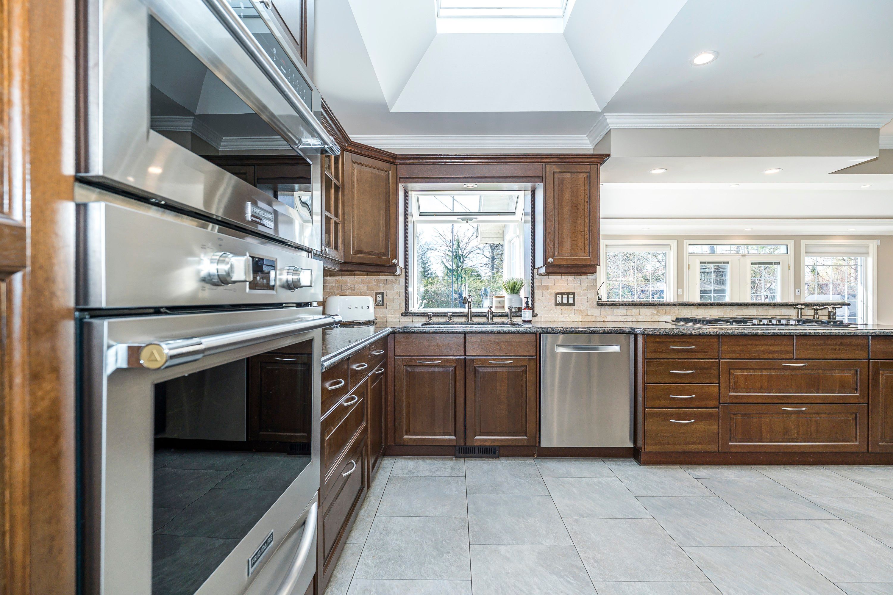 • Oversized kitchen equipped with modern appliances and breakfast bar.