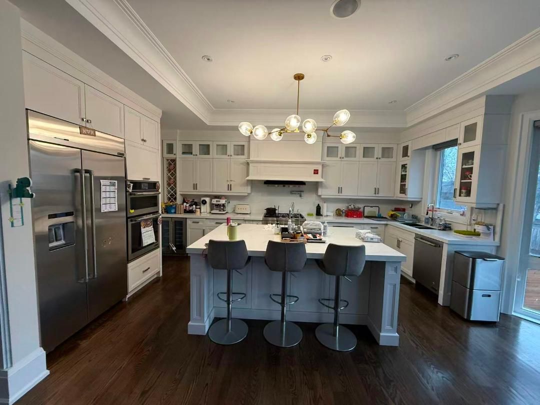 • Chef-inspired kitchen featuring premium appliances and a large center island.