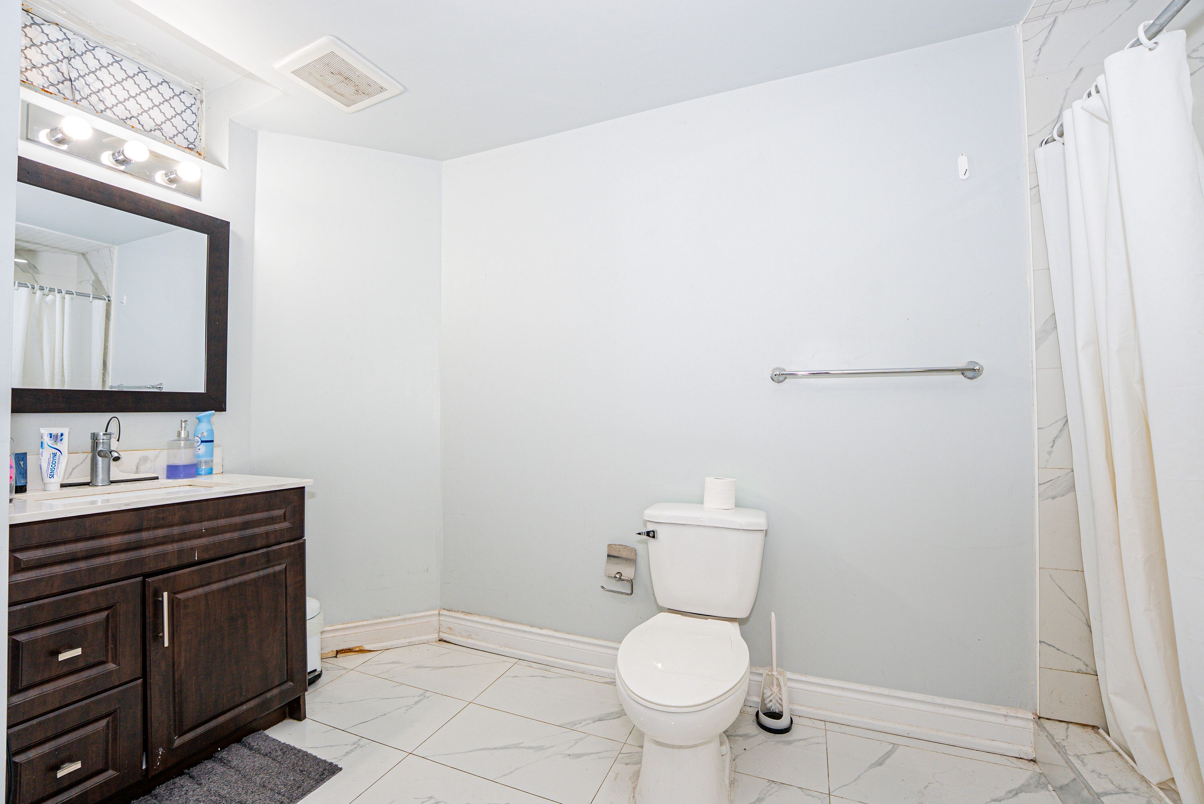 • Income potential from basement apartment currently rented at $1,800/month.