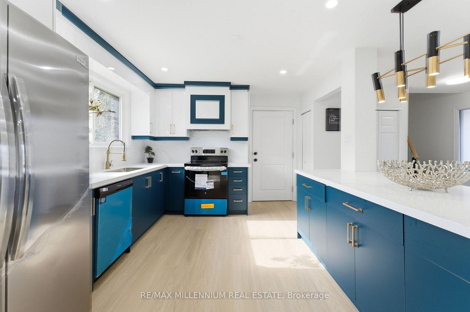 • Stunning chef's kitchen with quartz countertops and new stainless steel appliances.
